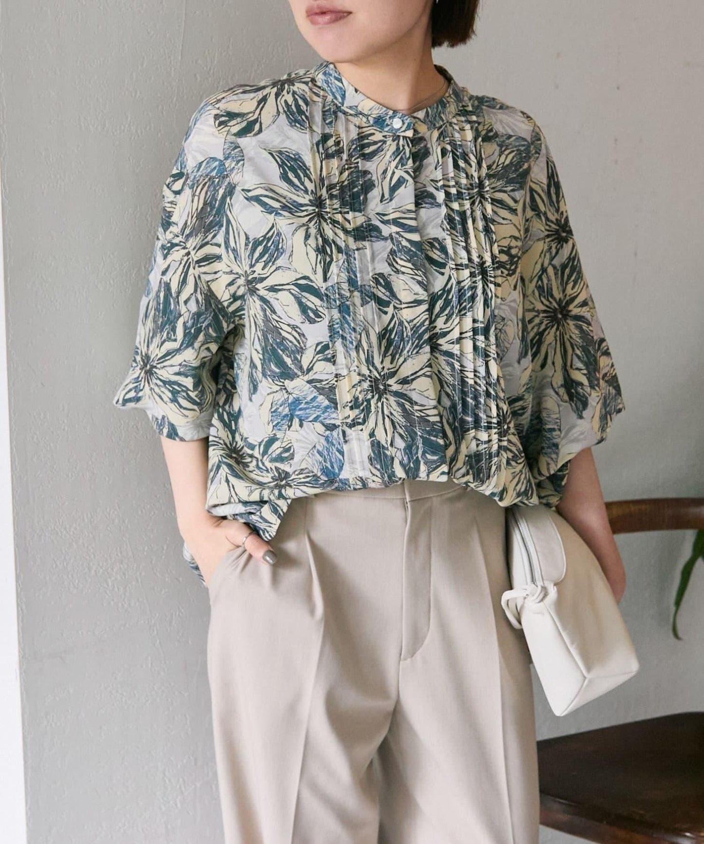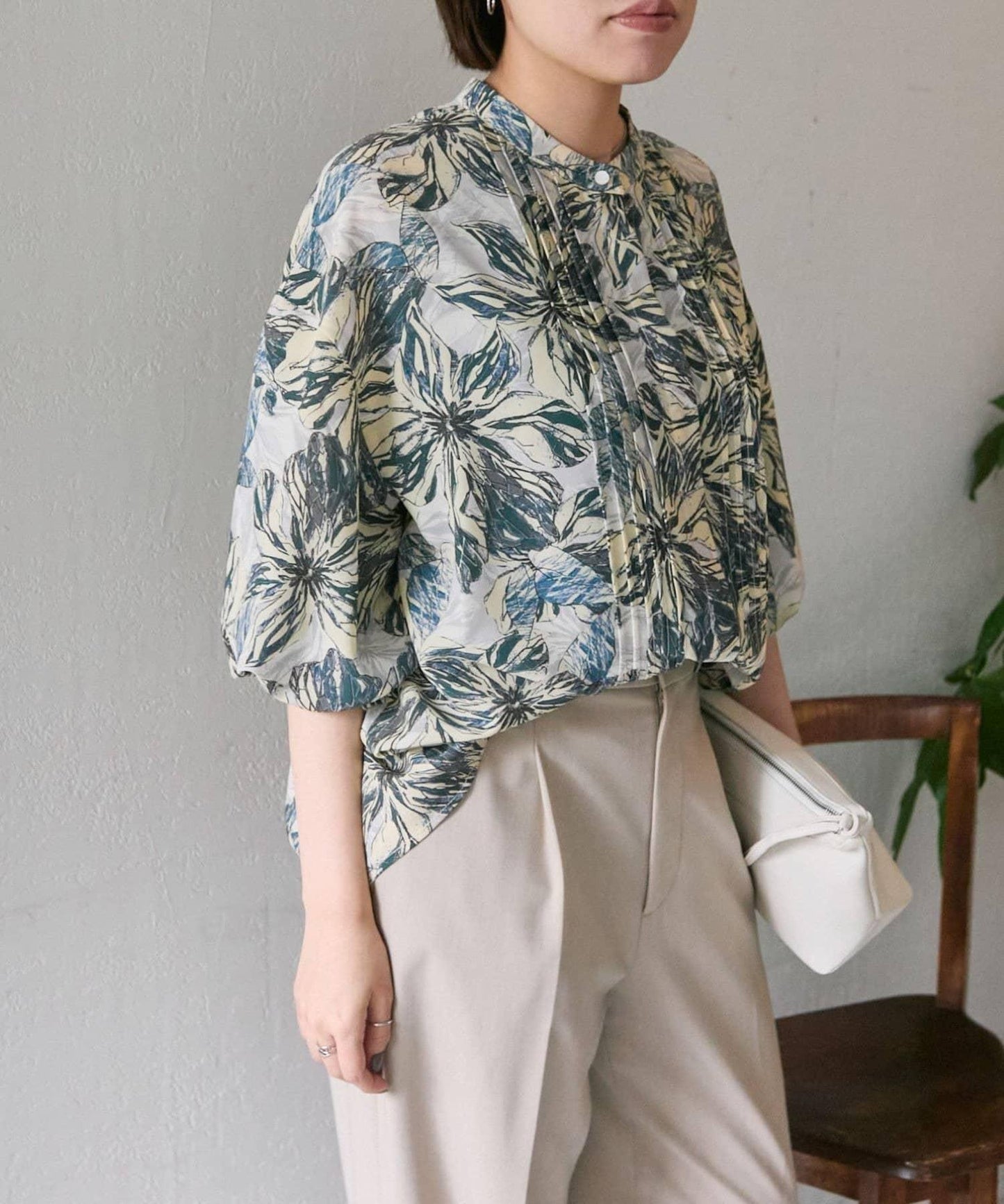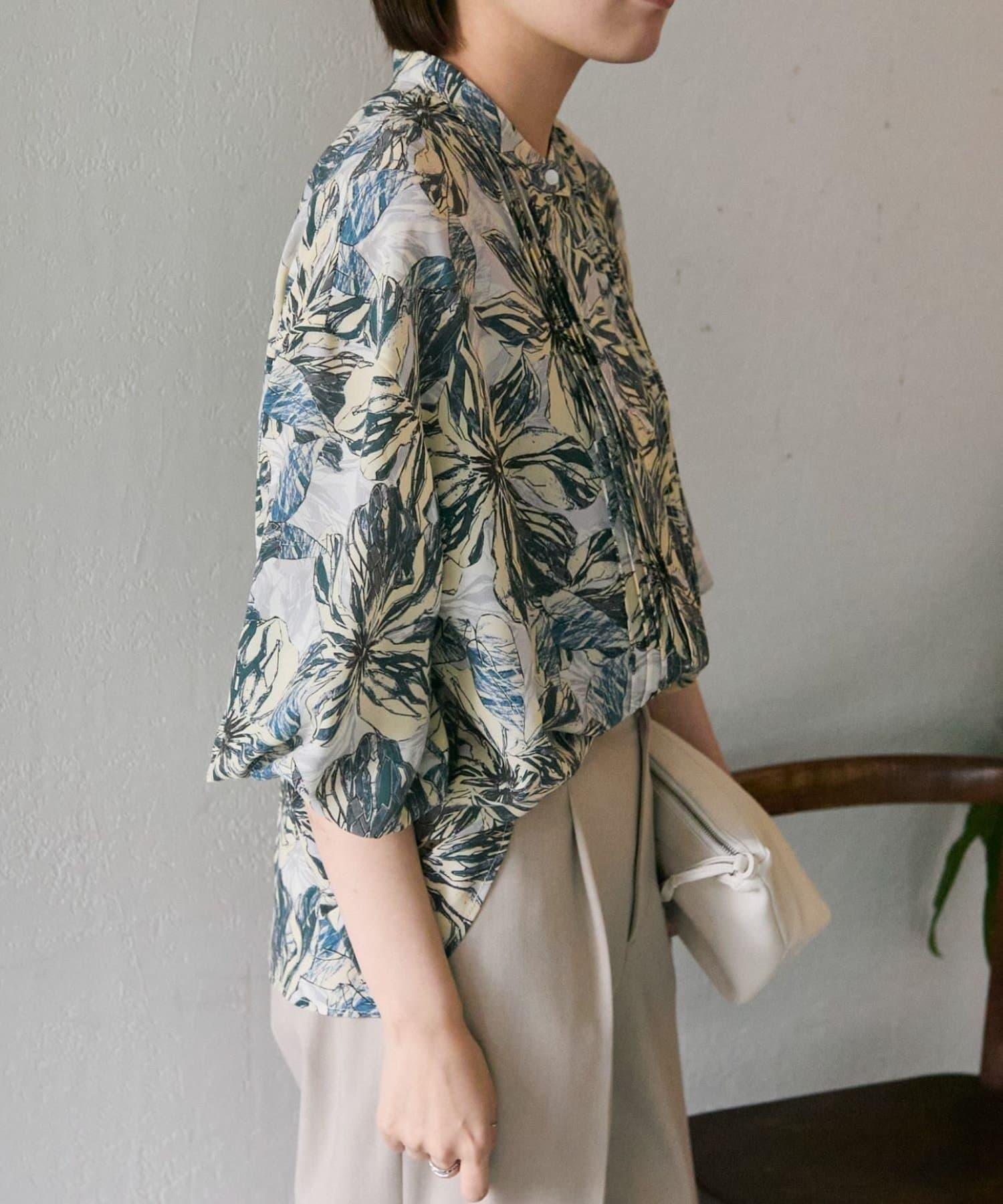 植物圖案/花卉圖案褶皺裝飾襯衫【SUM1 STYLE(スミスタイル)】