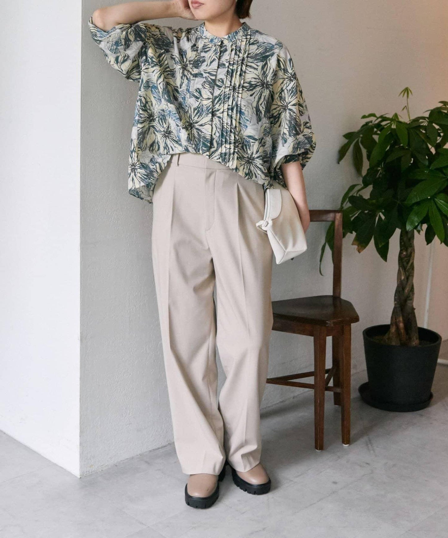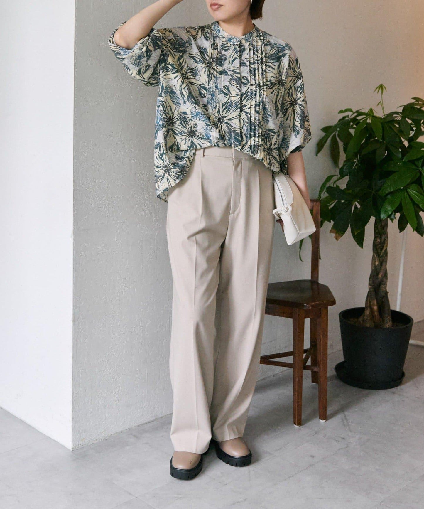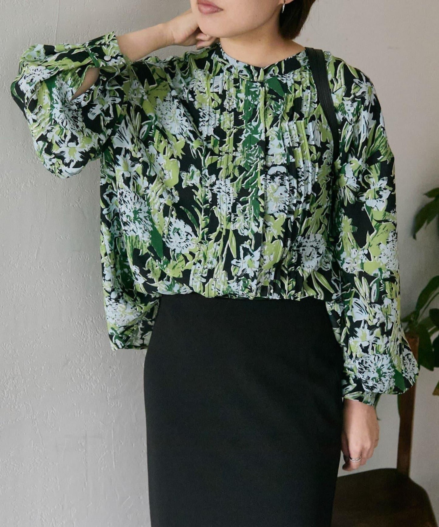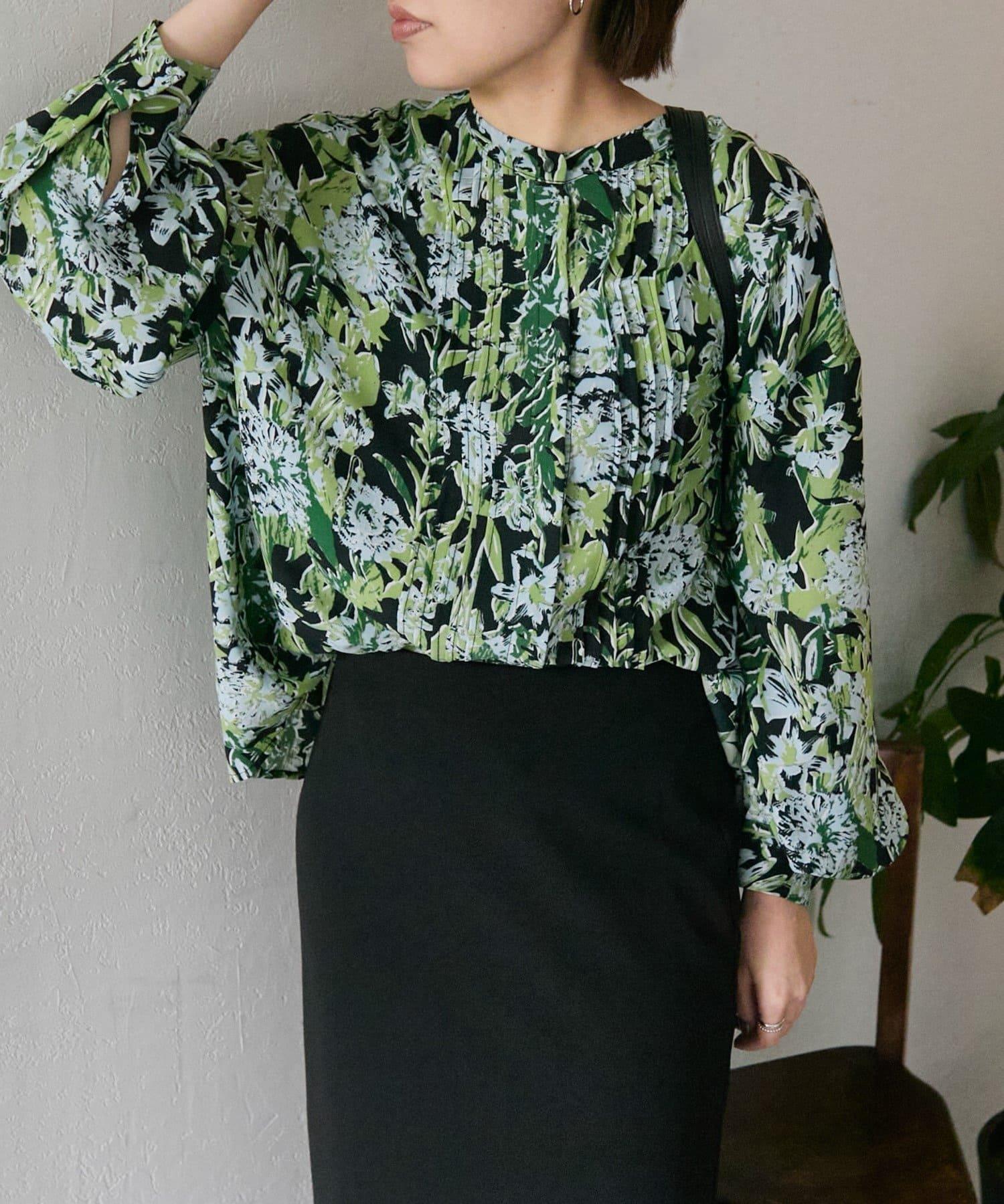 植物圖案/花卉圖案褶皺裝飾襯衫【SUM1 STYLE(スミスタイル)】