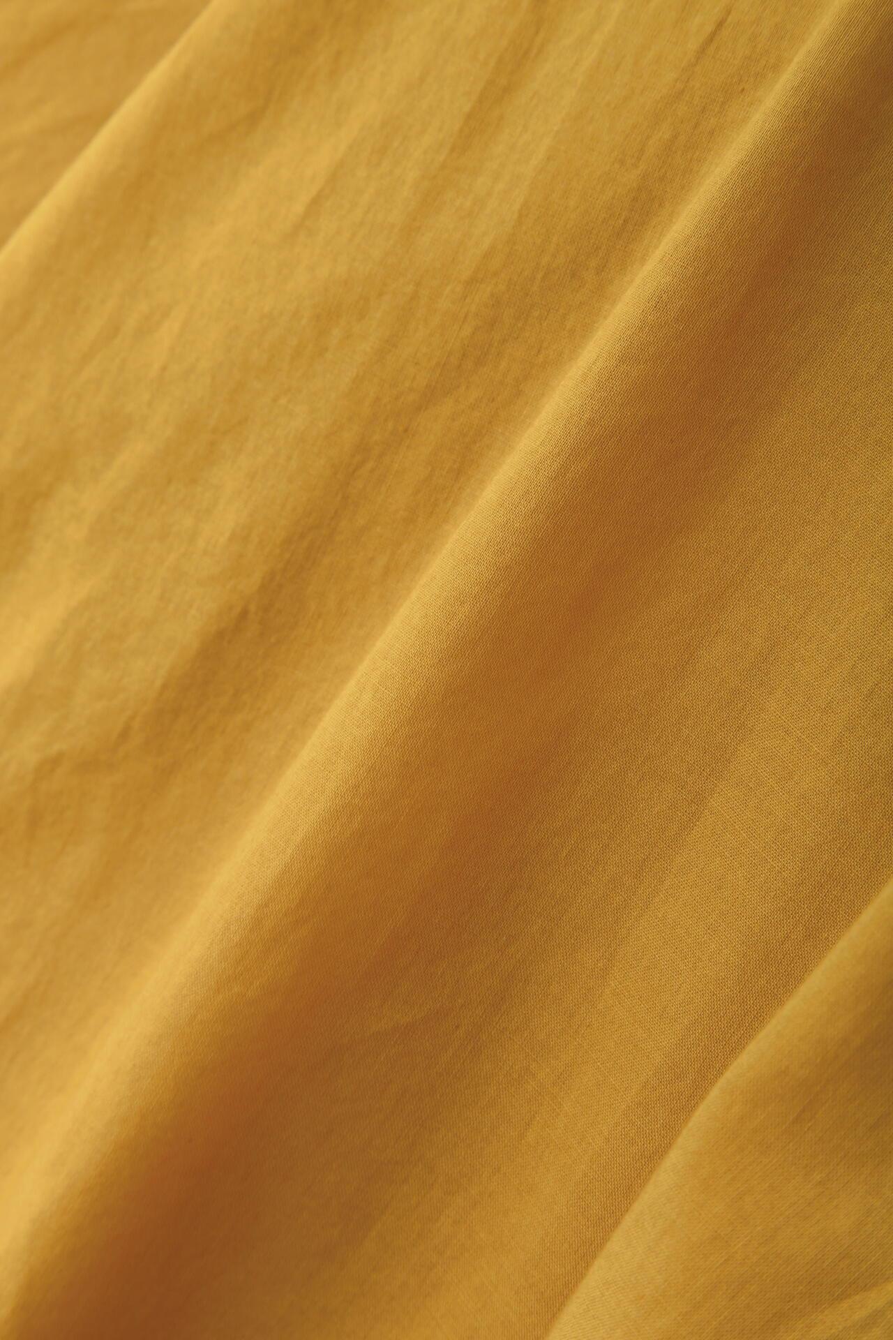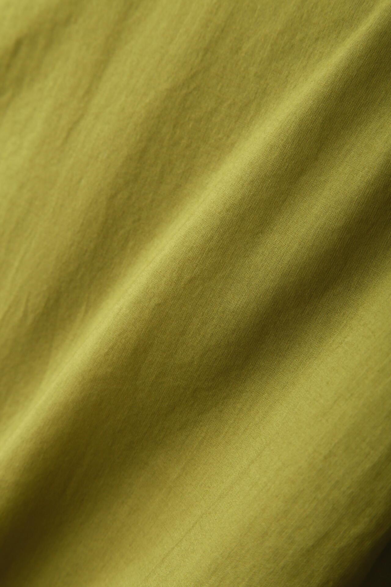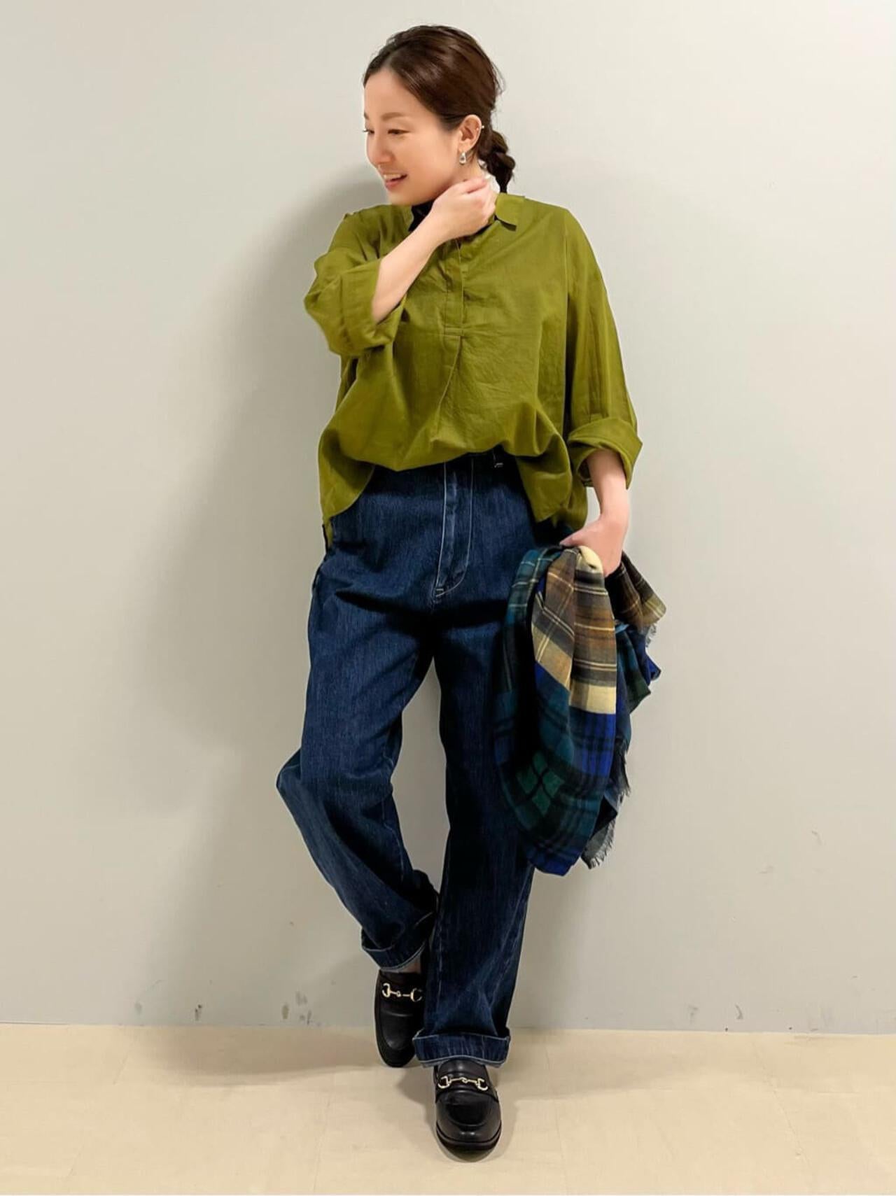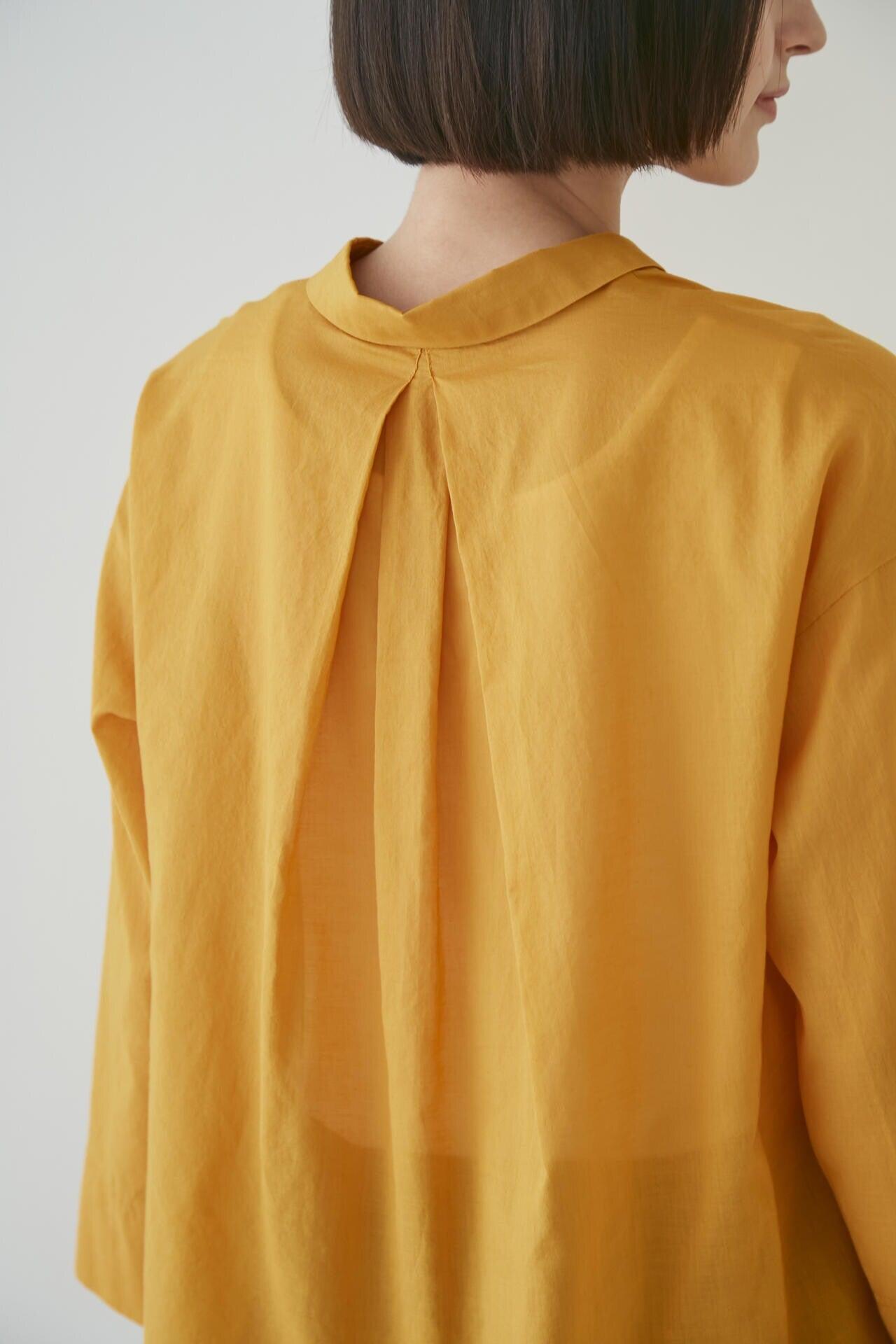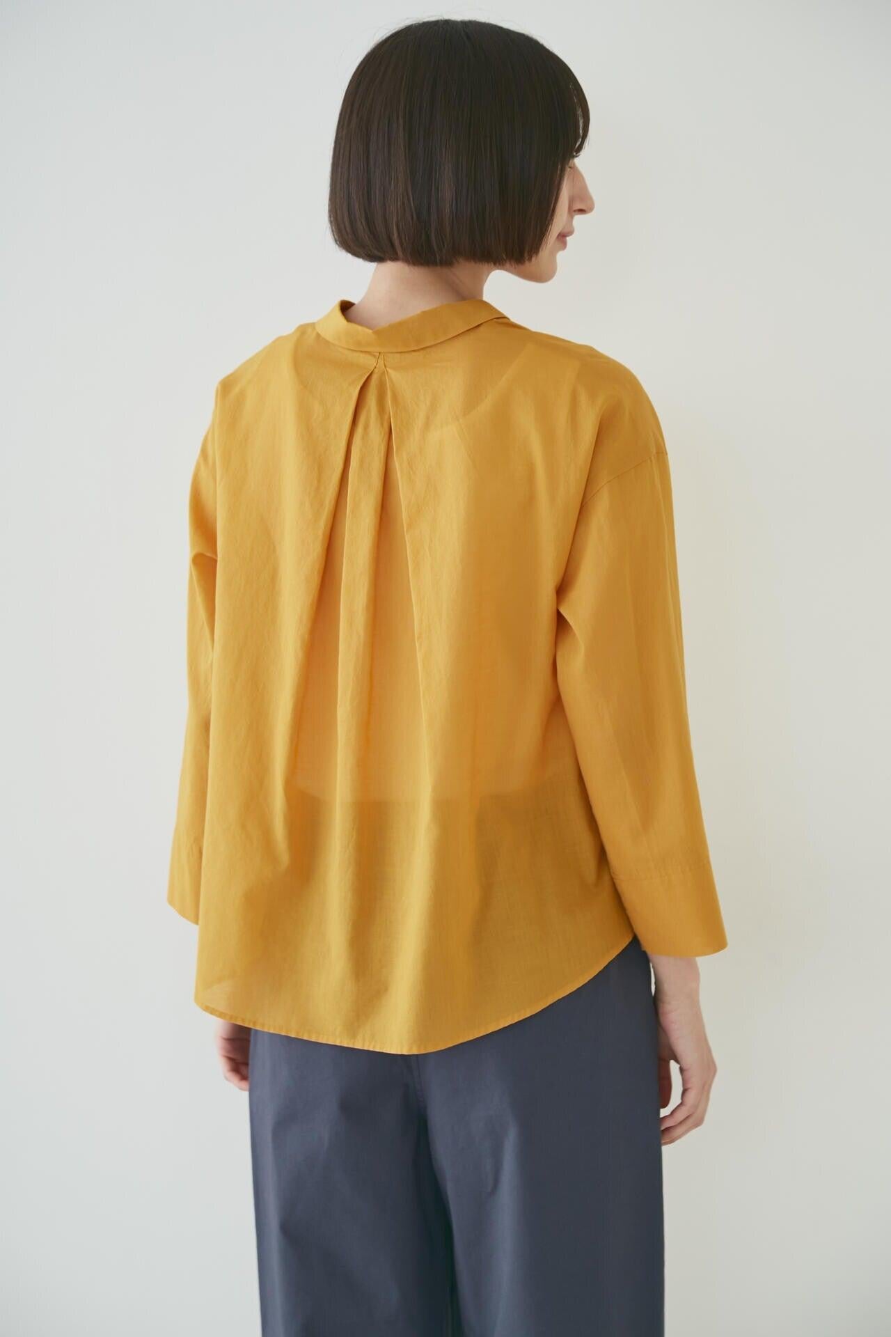植物色系 Skipper 上衣 [設計要點] 稍微寬鬆的衣領和寬鬆的輪廓是設計的重點。袖口採用深翻處理,即使將袖子翻回也有細微差別。面料採用優質棉紗 80 支紗織成,並使用從香川縣昭島橄欖葉中提取的染料進行染色。長度和設計使其易於與任何下裝搭配。上衣的顏色非常醒目,非常適合搭配基本色的下裝。
