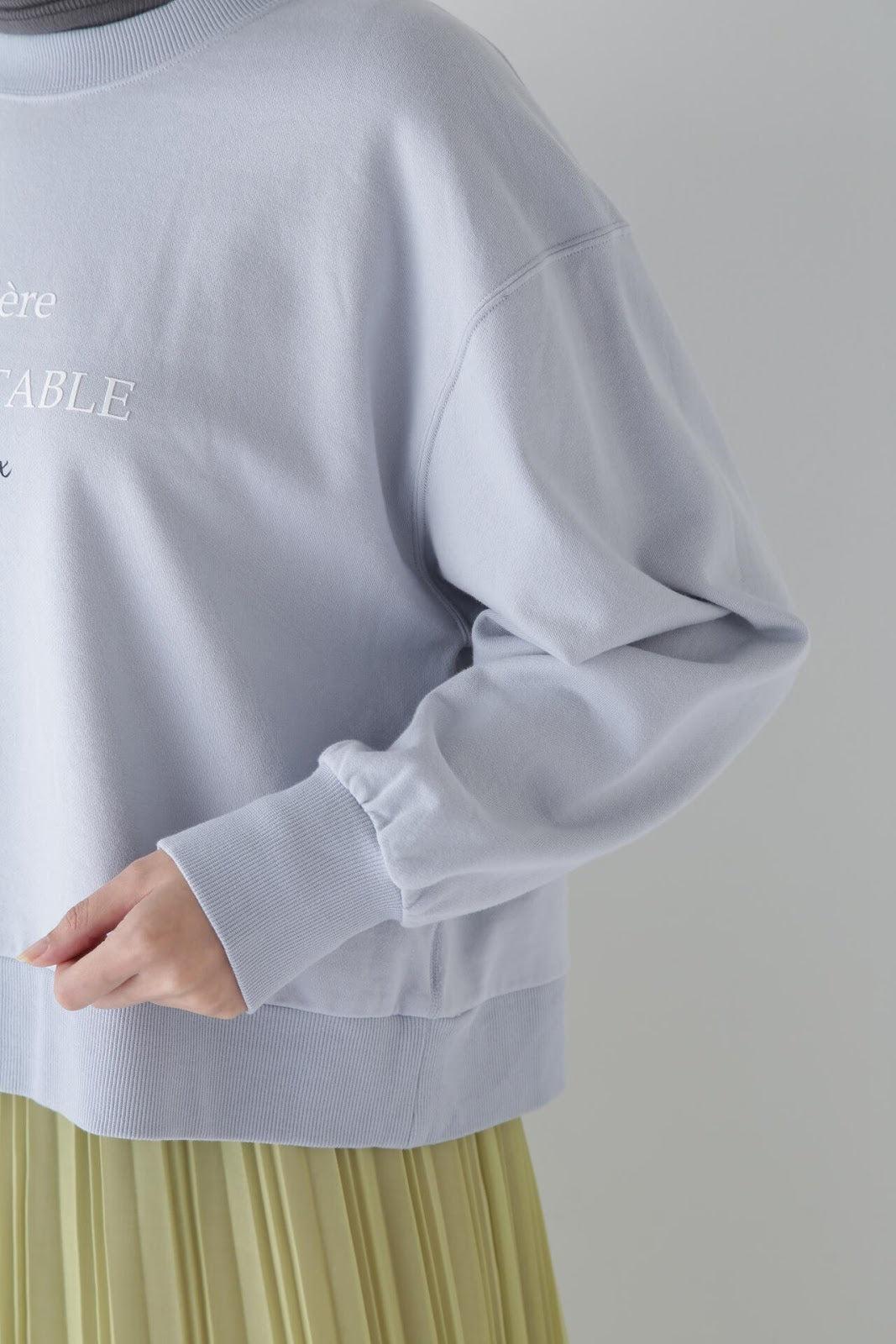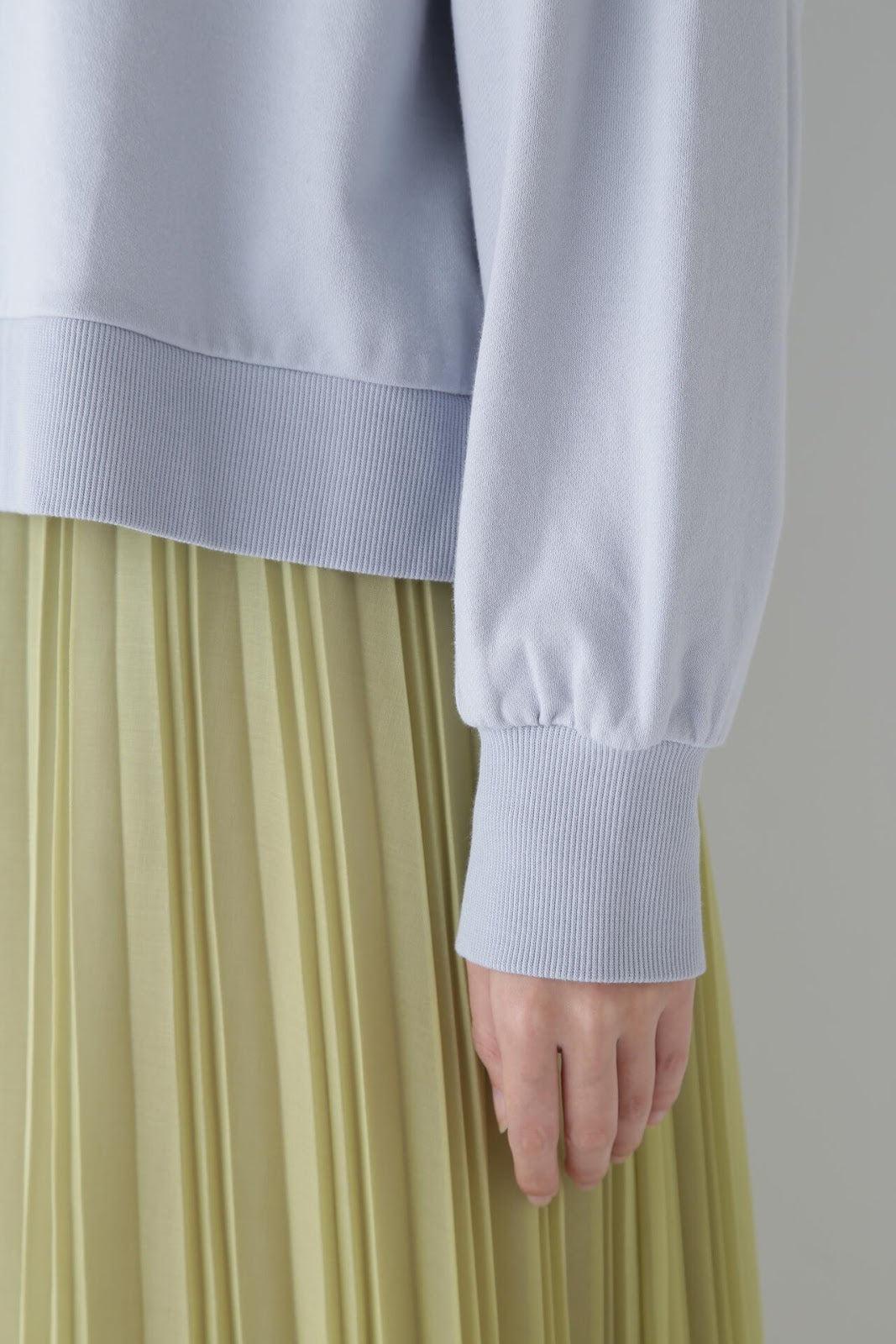 徽標運動衫,色彩柔和,便於日常穿著 [設計特色] 徽標印花運動鞋,長度小巧。法文的意思是 "輕柔、柔軟"。這款質地柔軟、薄如蟬翼的迷你運動衫,面料非常輕盈。運動鞋的長度不算太長,因此可以搭配從長褲到短裙的任何下裝。尺寸做得很寬鬆,便於疊穿。