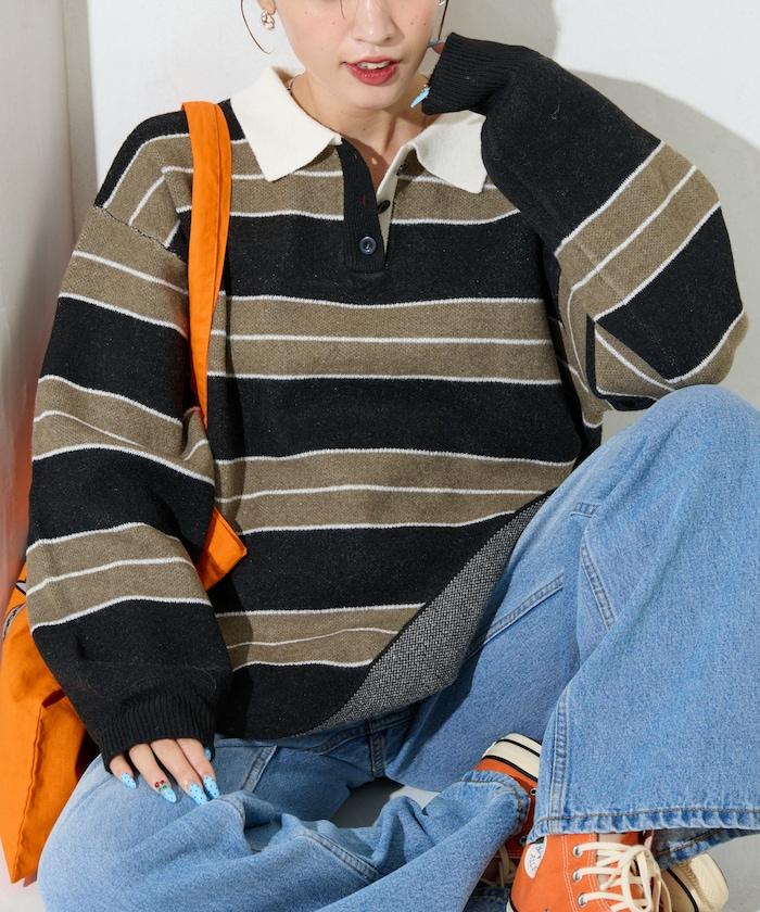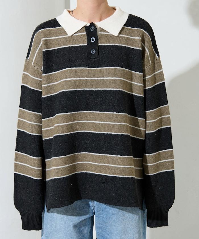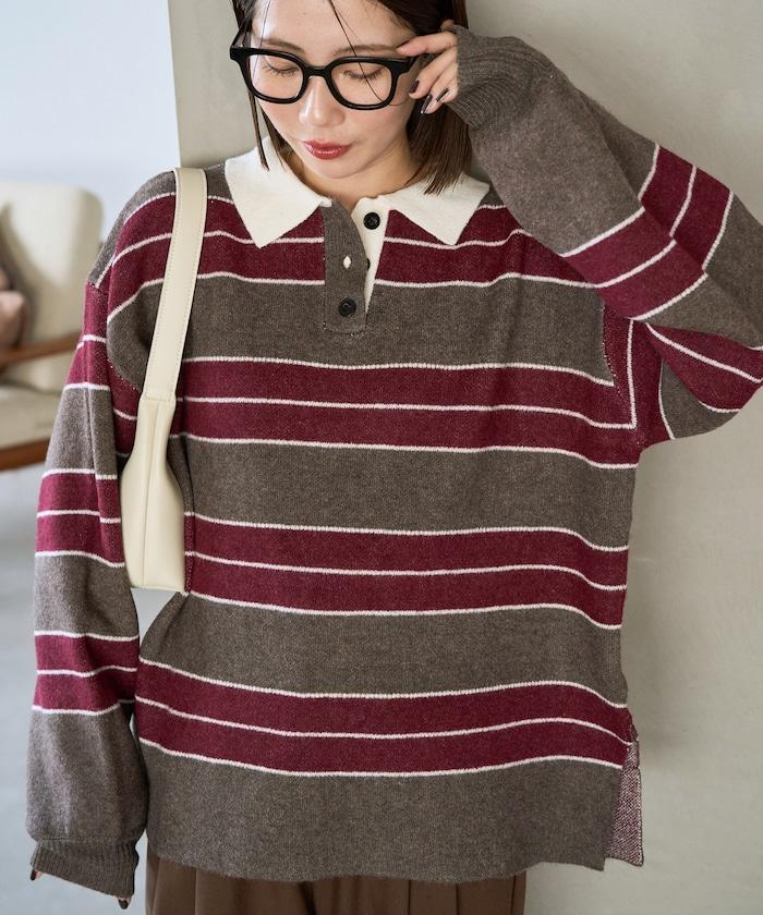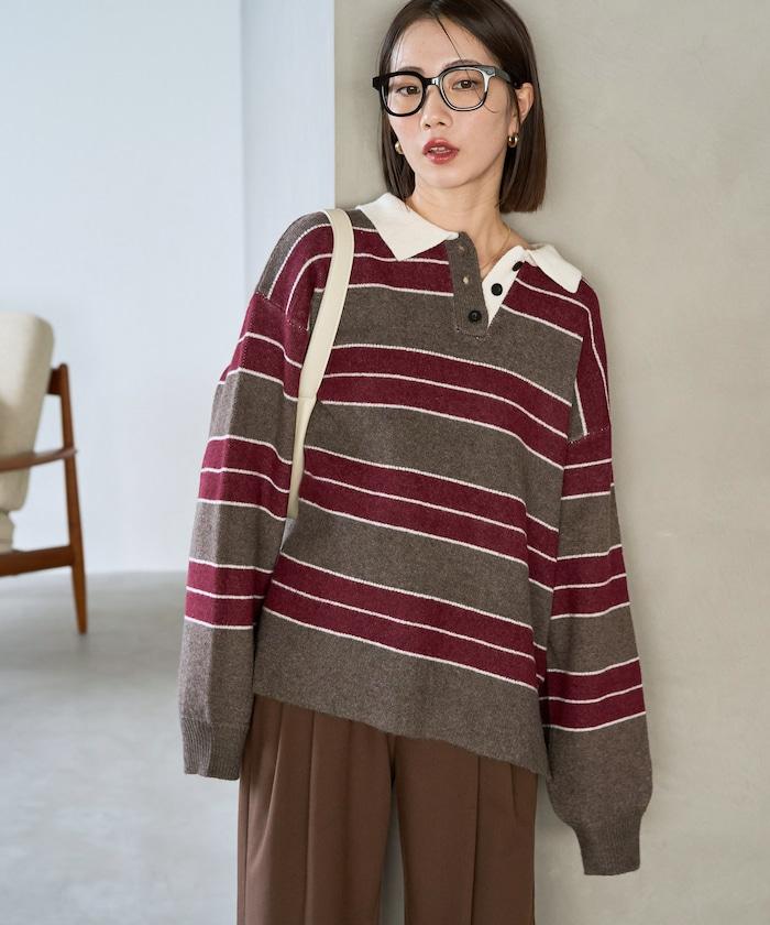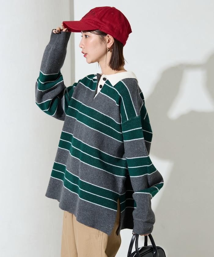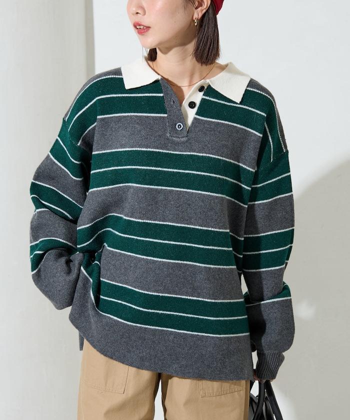 Rugger 條紋和 polo 領針織衫,打造休閒的成人造型。