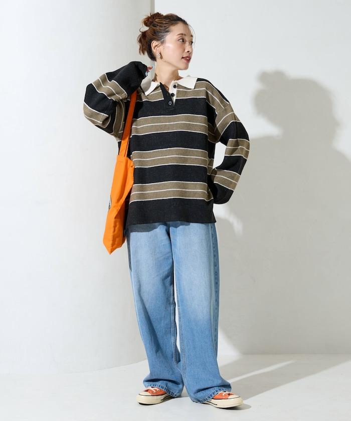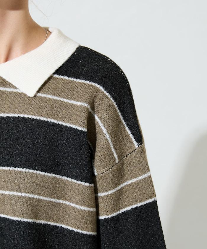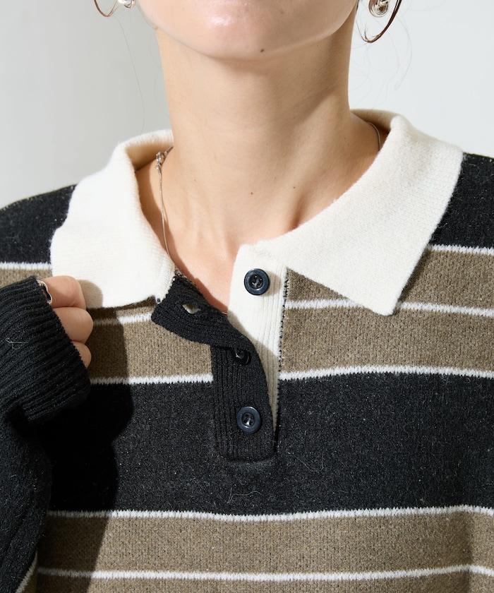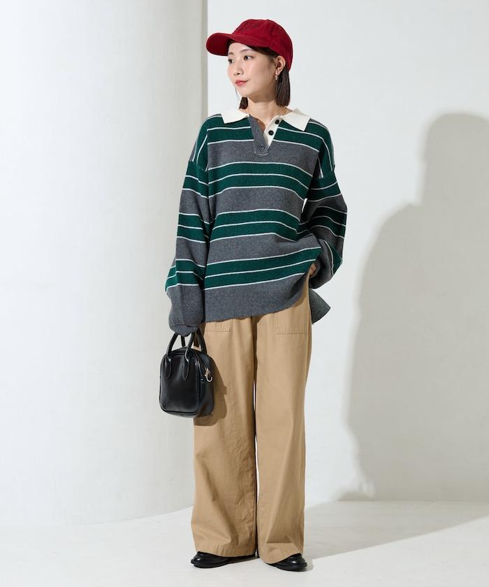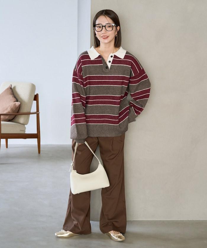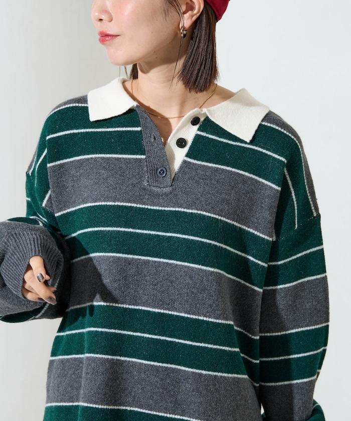 Rugger 條紋和 polo 領針織衫,打造休閒的成人造型。