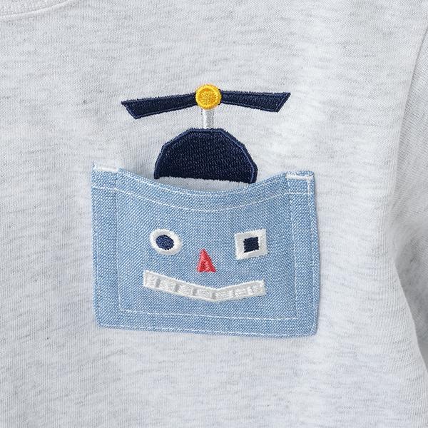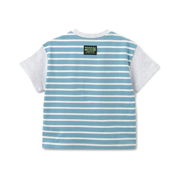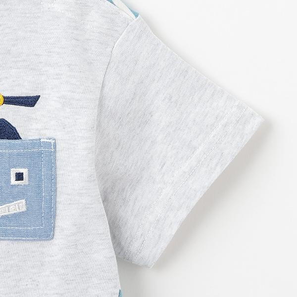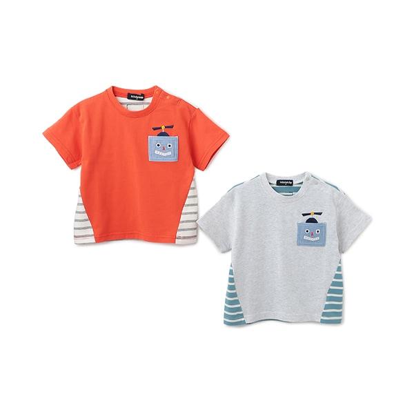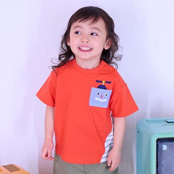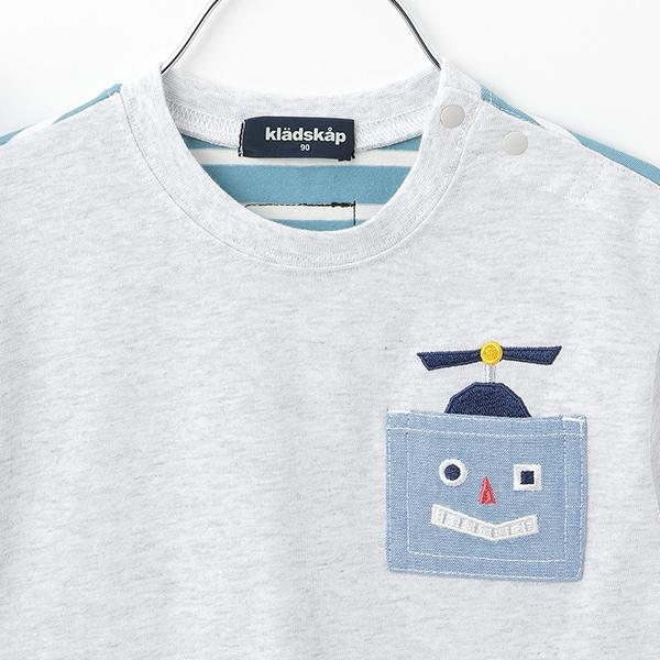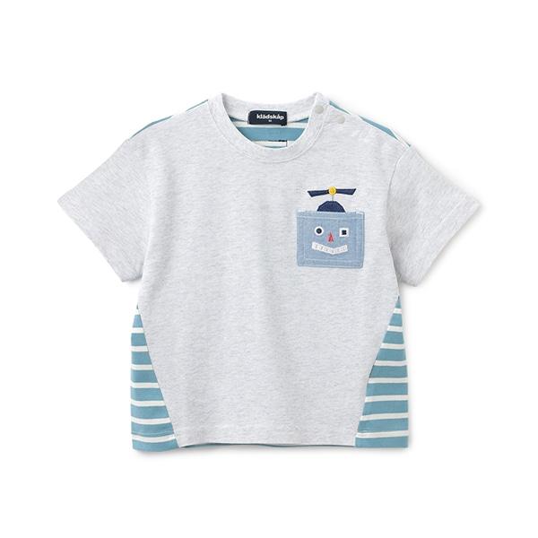 機器人口袋拼接條紋短袖T恤