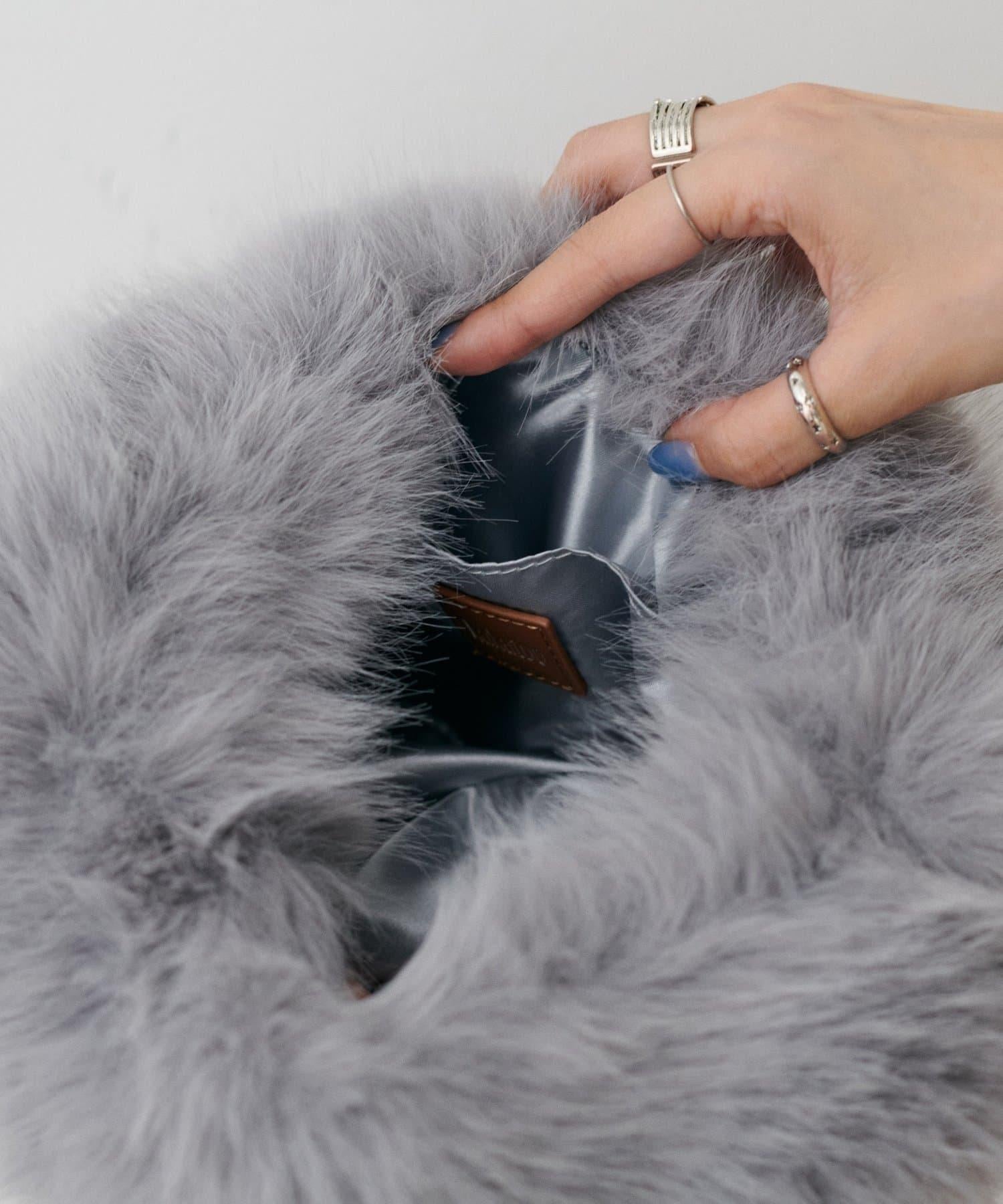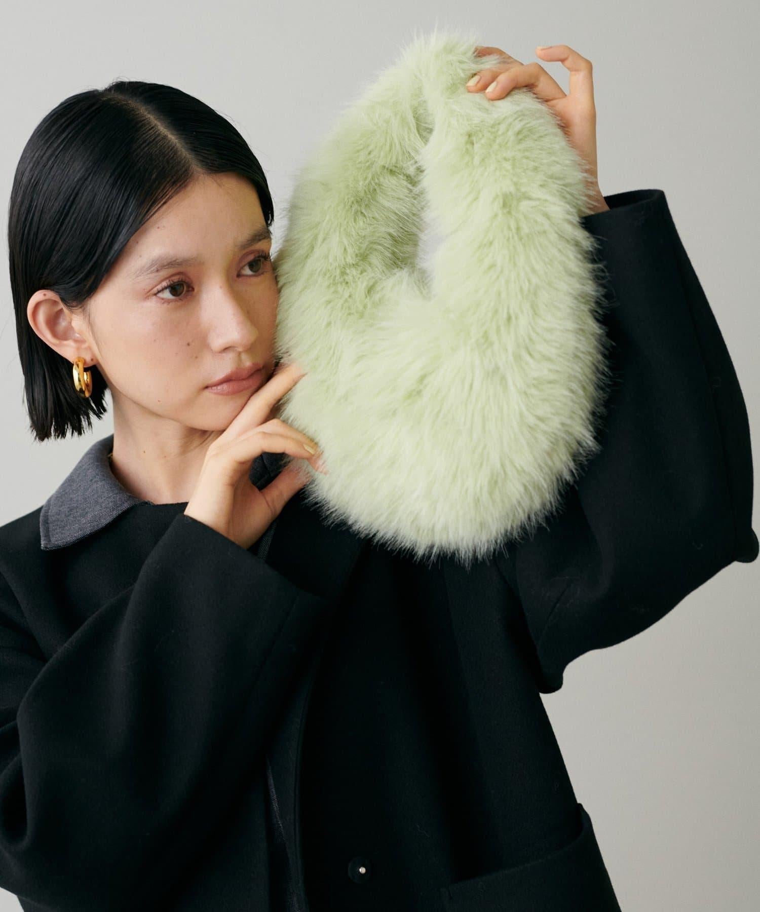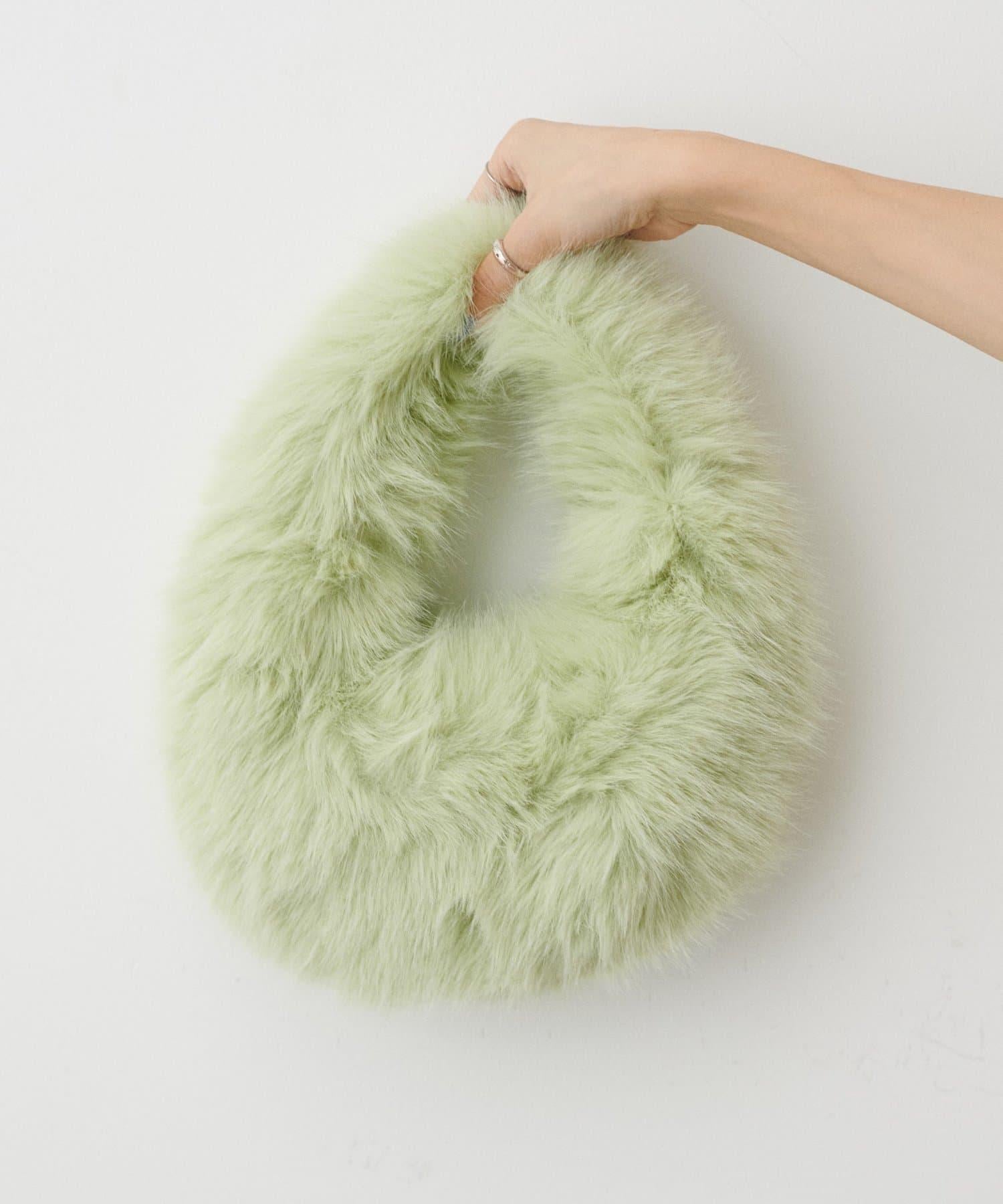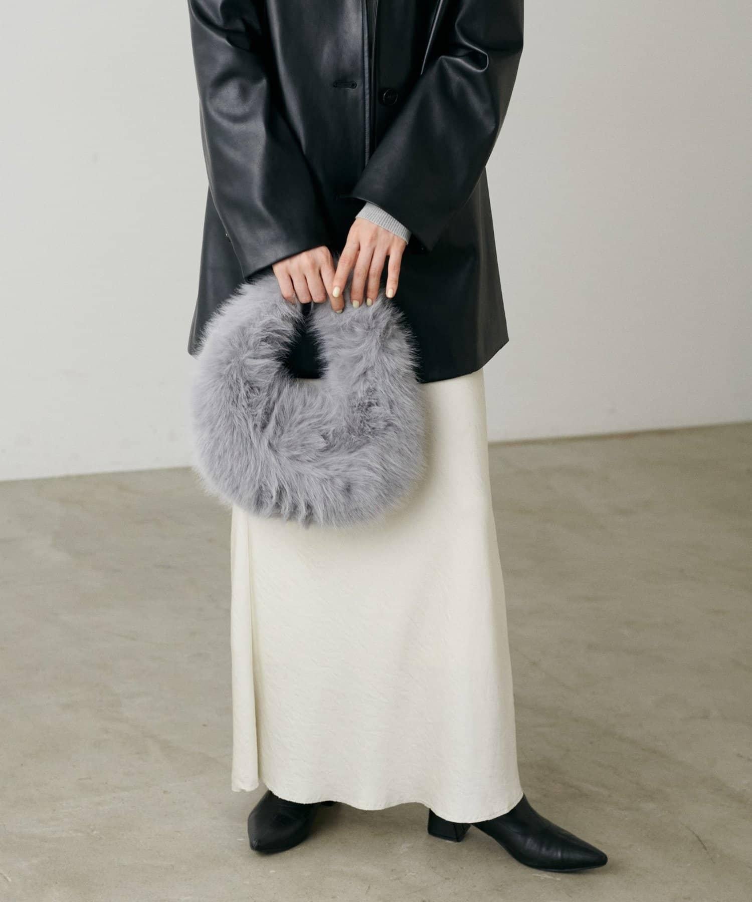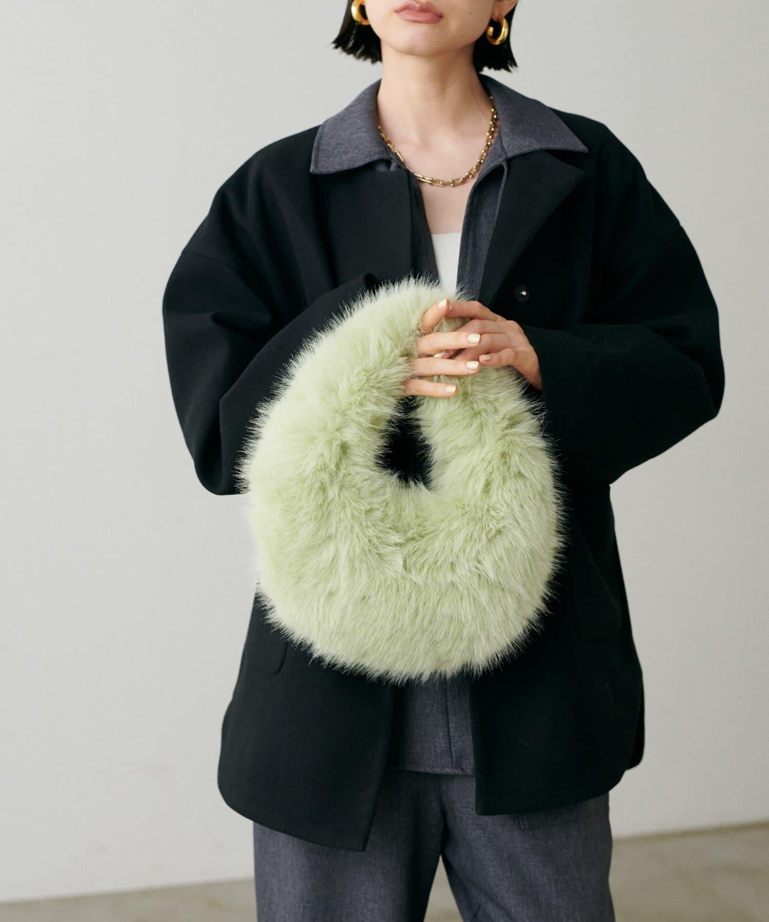 季節性的橢圓形手袋完全由柔軟的人造皮草製成。
