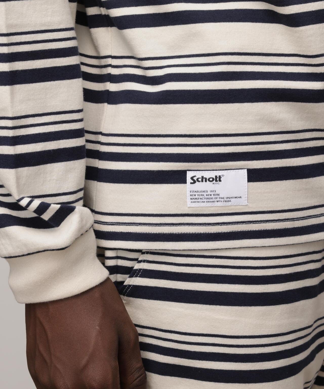 "7盎司重磅開口紗線帶來蓬鬆、豐滿的感覺,而乾爽、清脆、堅硬的質地則給人一種美國品牌的感覺。去年流行的長袖版隨意鑲邊 T 恤。這一季,標準的黑白配和清新的白海軍藍也讓人耳目一新。肖特] 肖特(Schott)是騎手夾克的代名詞,其歷史始於 1913 年,由歐文-肖特(Irving Schott)和傑克-肖特(Jack Schott)兄弟在紐約創立。他們👍初是一家雨衣工廠,1928 年推出了 "Perfecto "系列騎手夾克,這是世界上👍款使用前拉鍊的夾克。在當時只有紐扣式夾克的時代,這是一幅