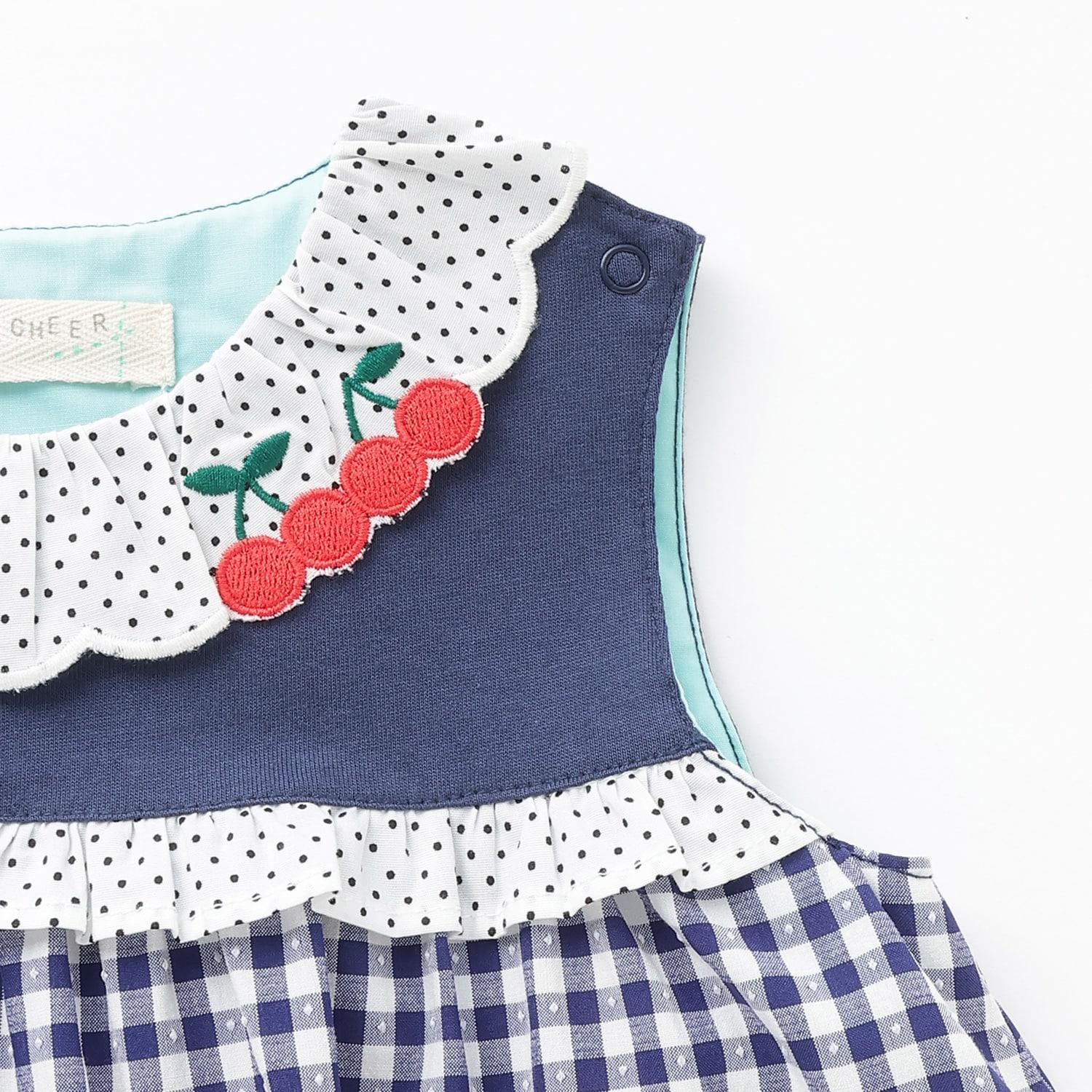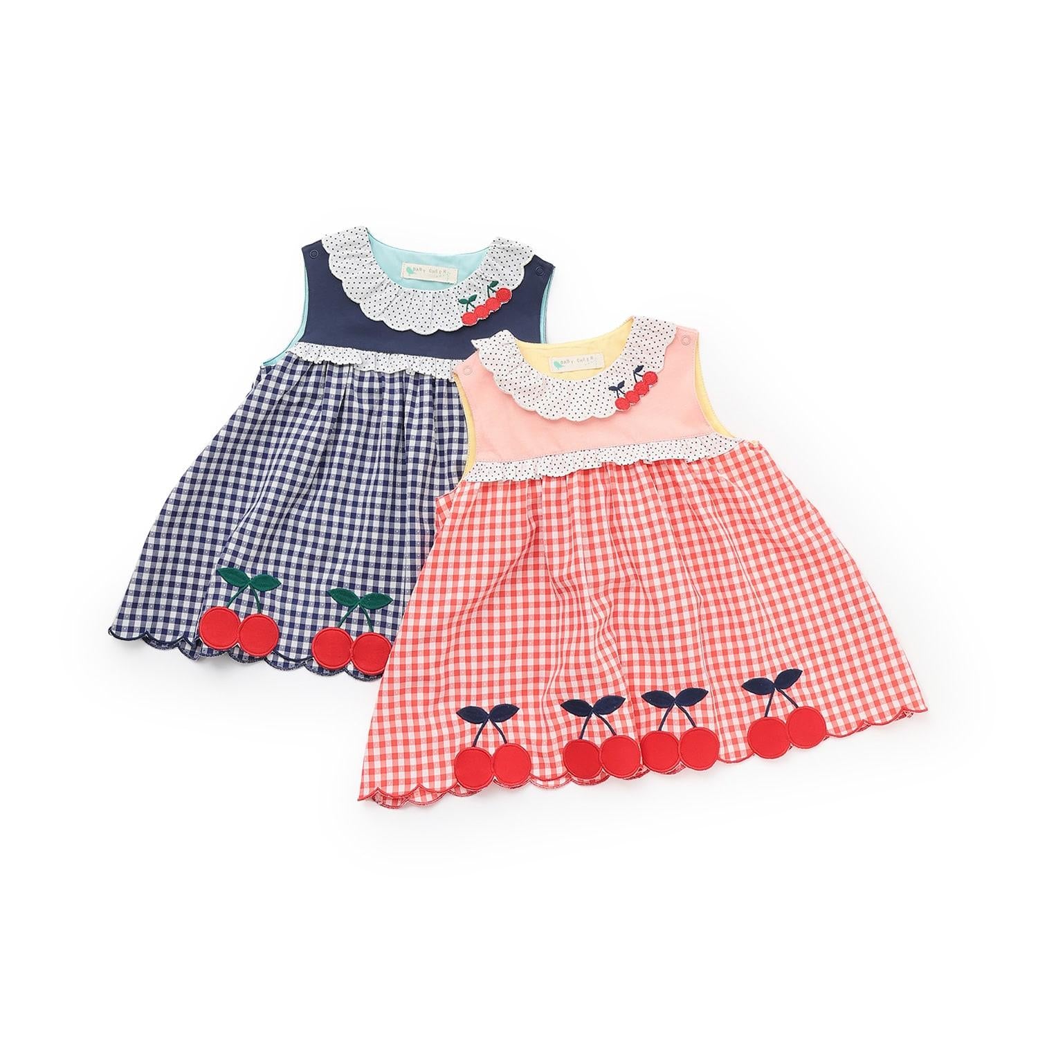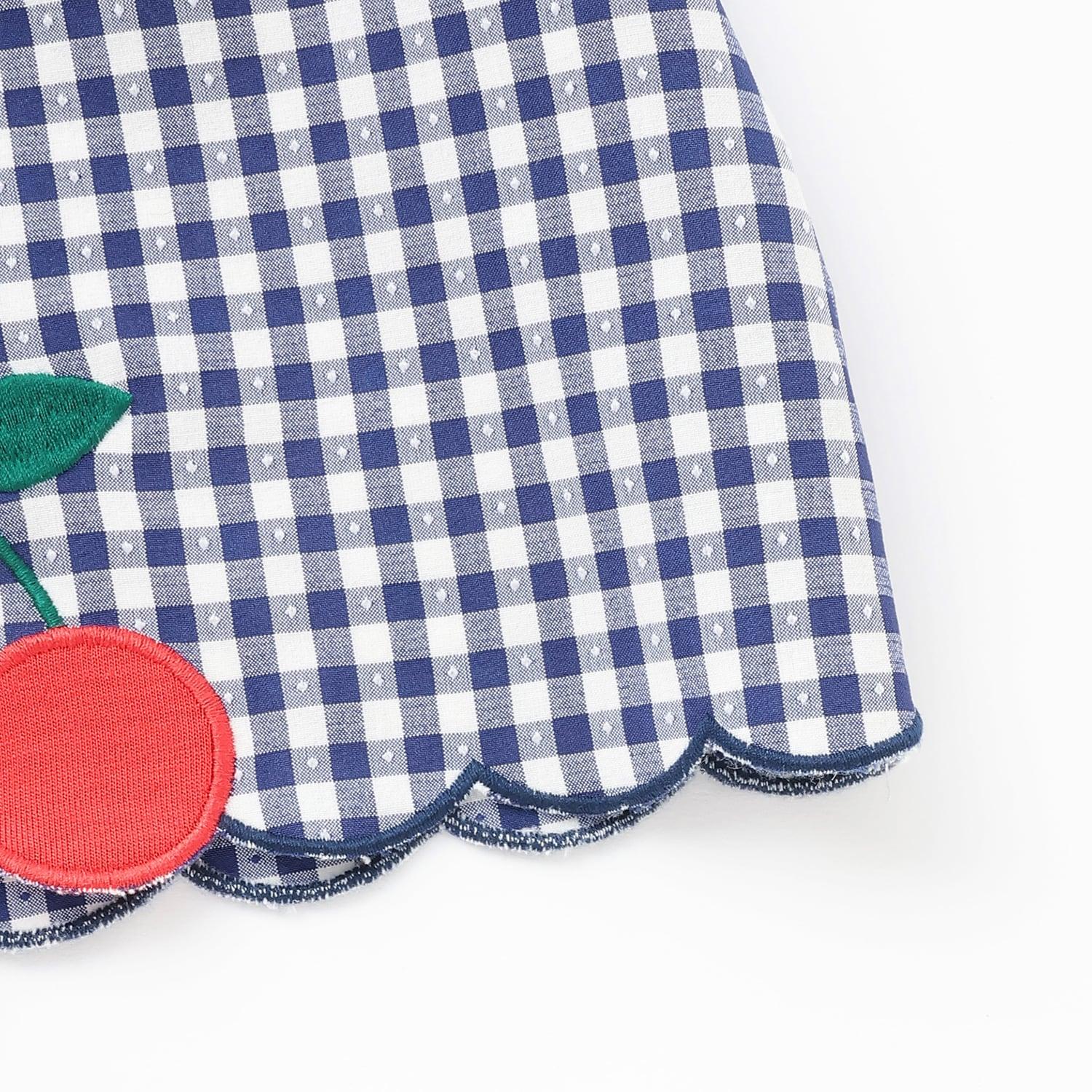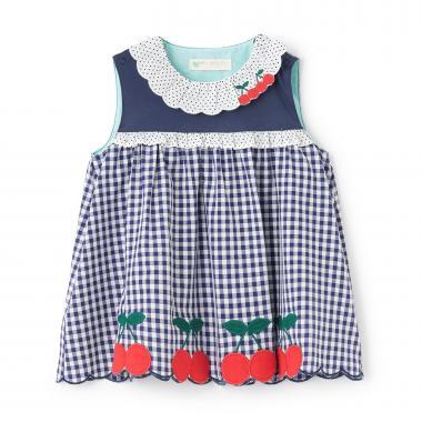 櫻桃刺繡與領口和下襬的扇貝相得益彰。