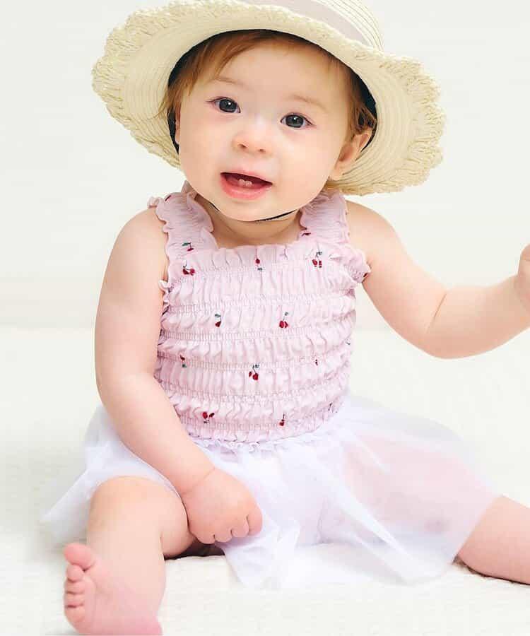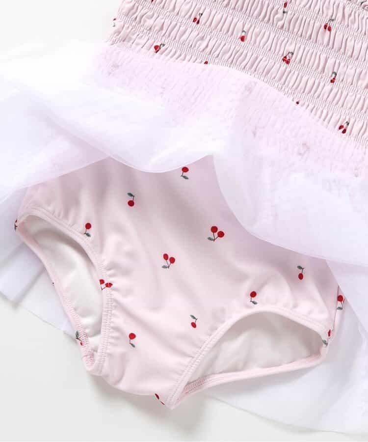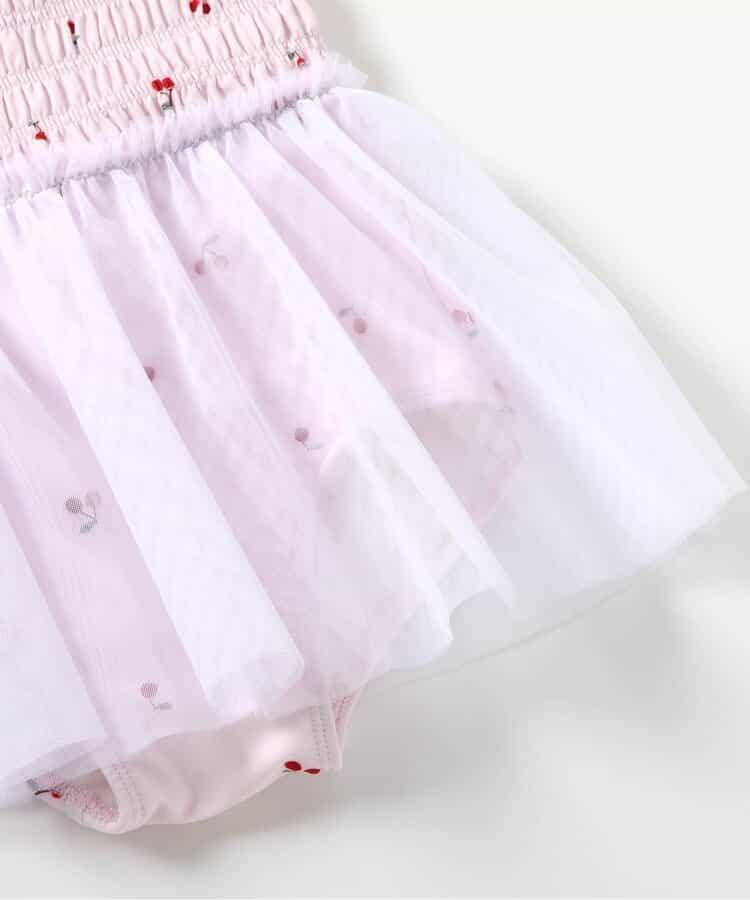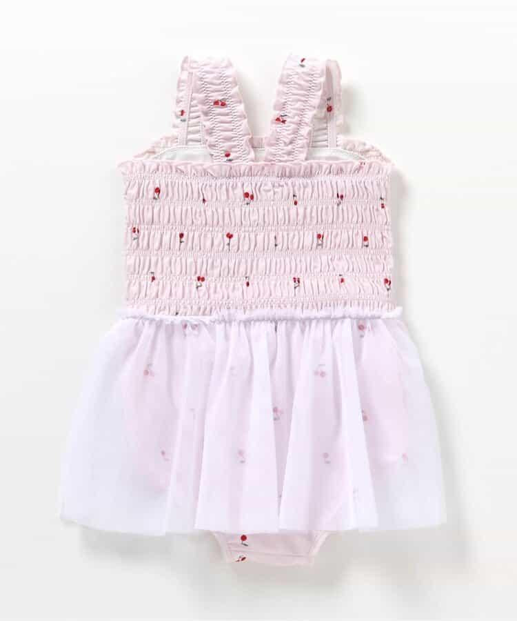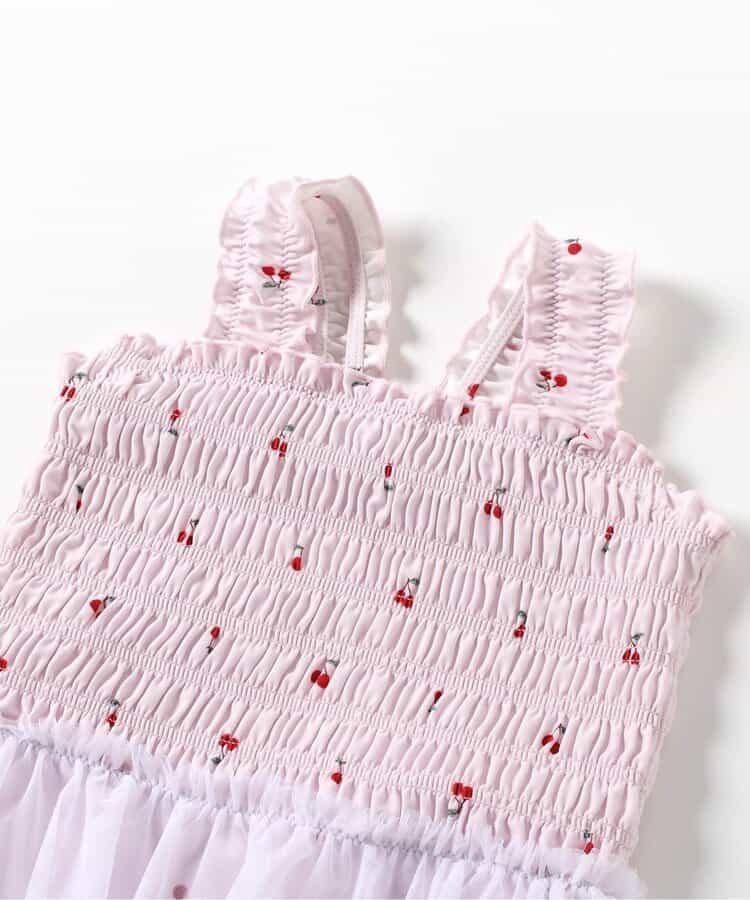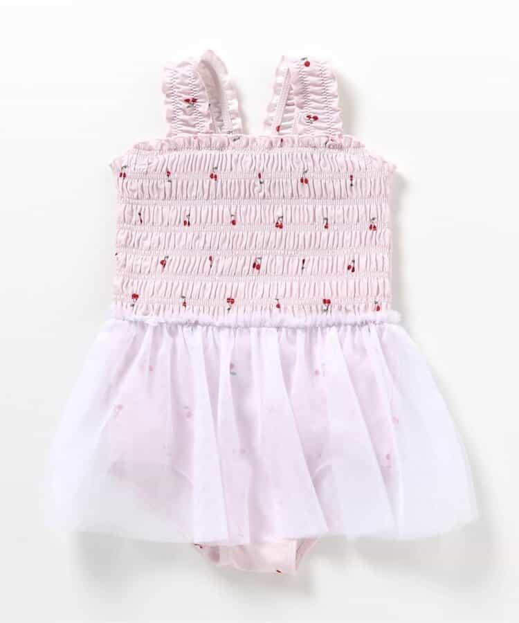 櫻桃花朵圖案蕾絲連衣裙嬰兒泳裝