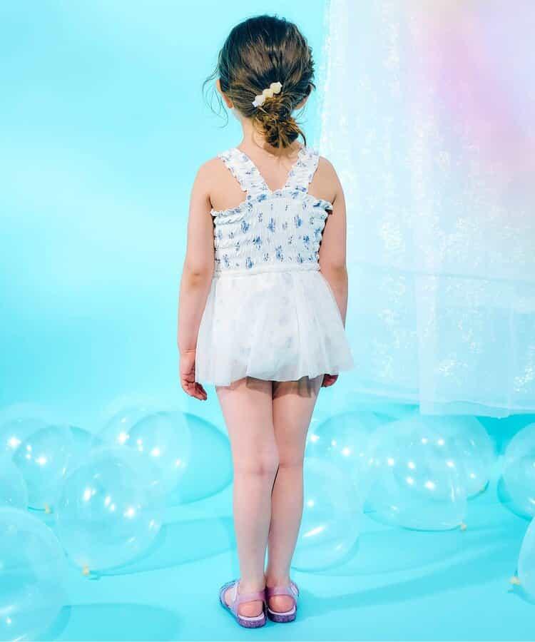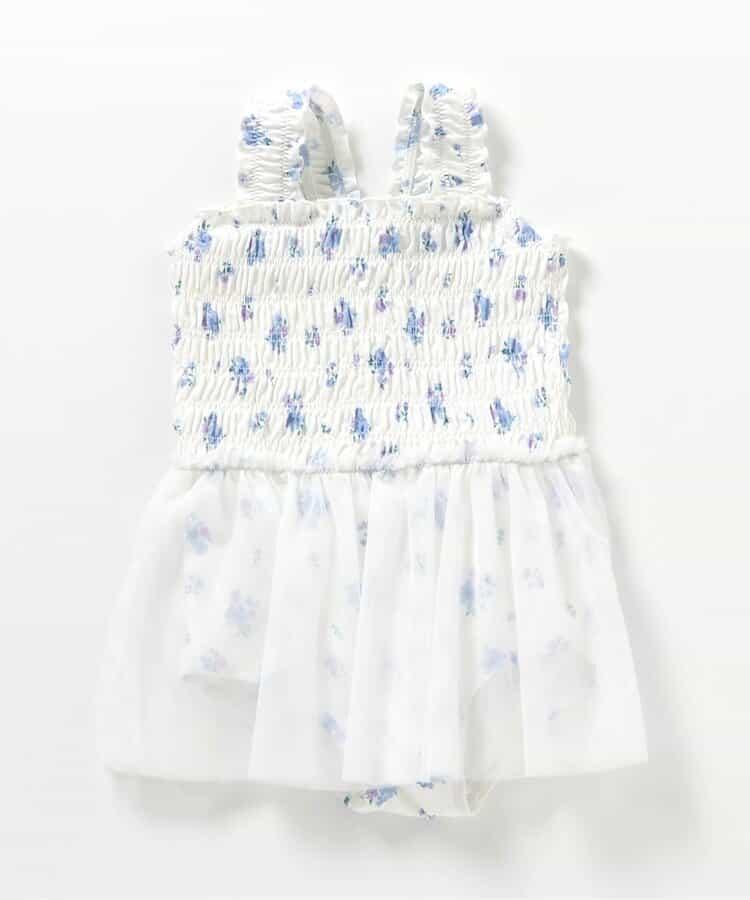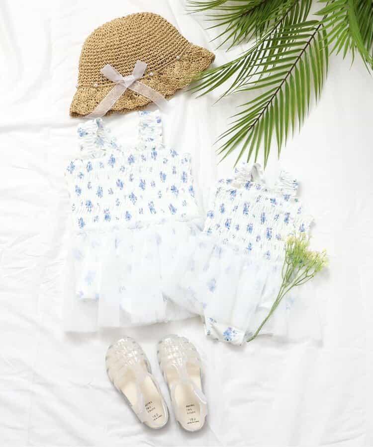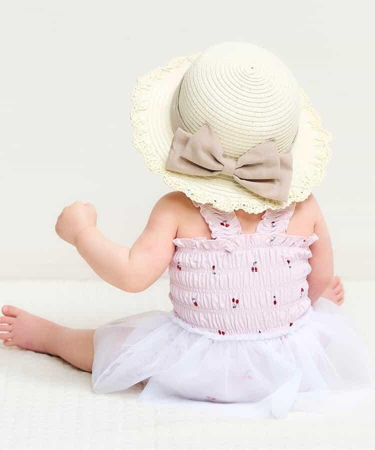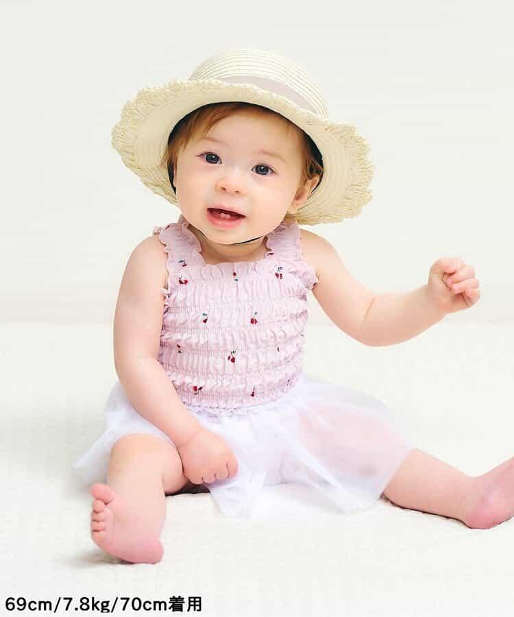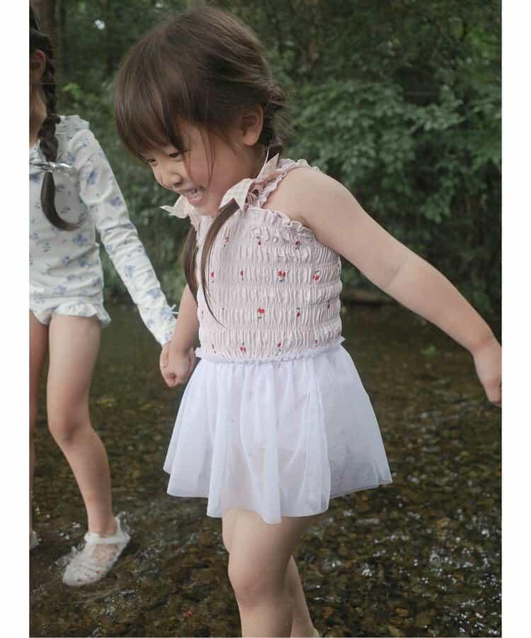 櫻桃花朵圖案蕾絲連衣裙嬰兒泳裝