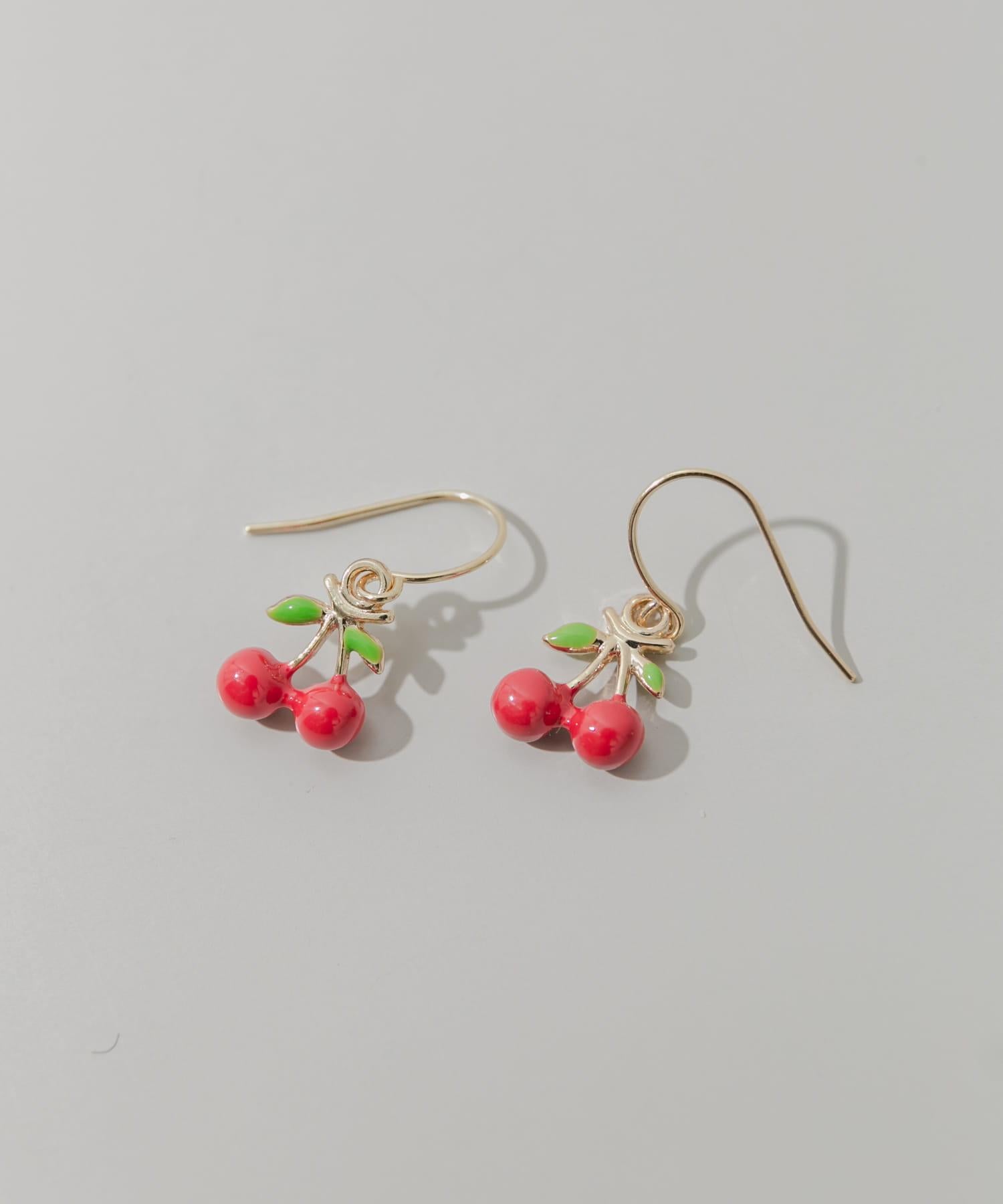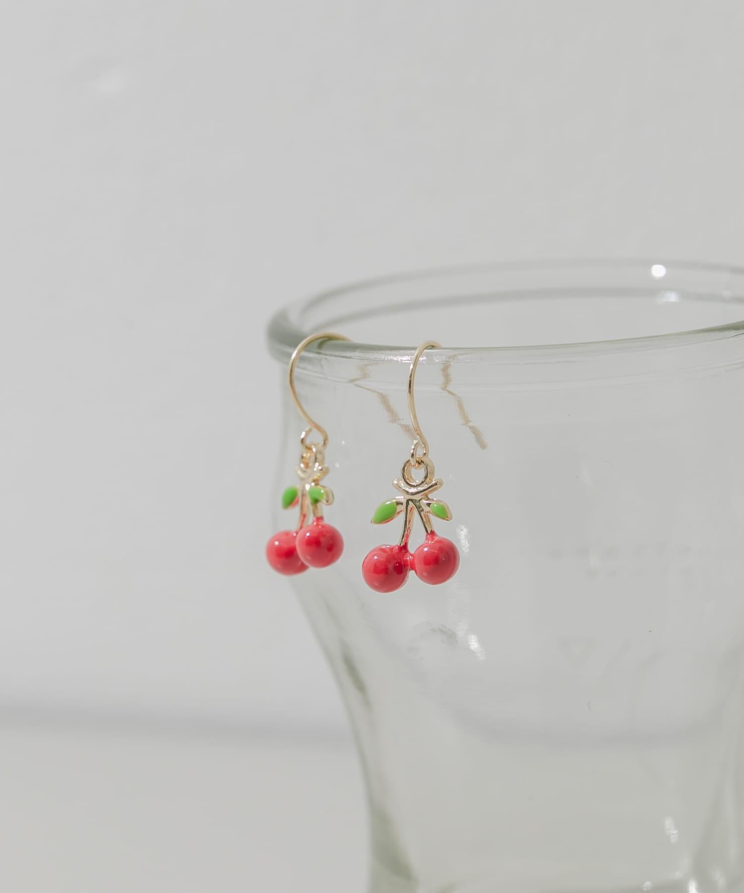 這款可愛的耳環上有一個閃亮的鮮紅色櫻桃圖案,在耳邊搖擺。