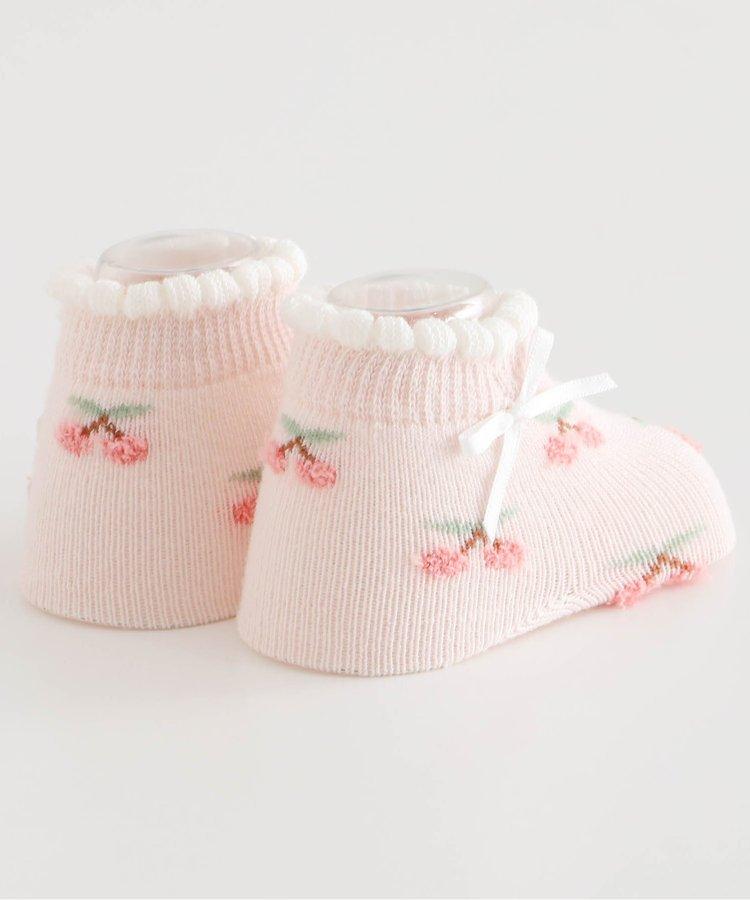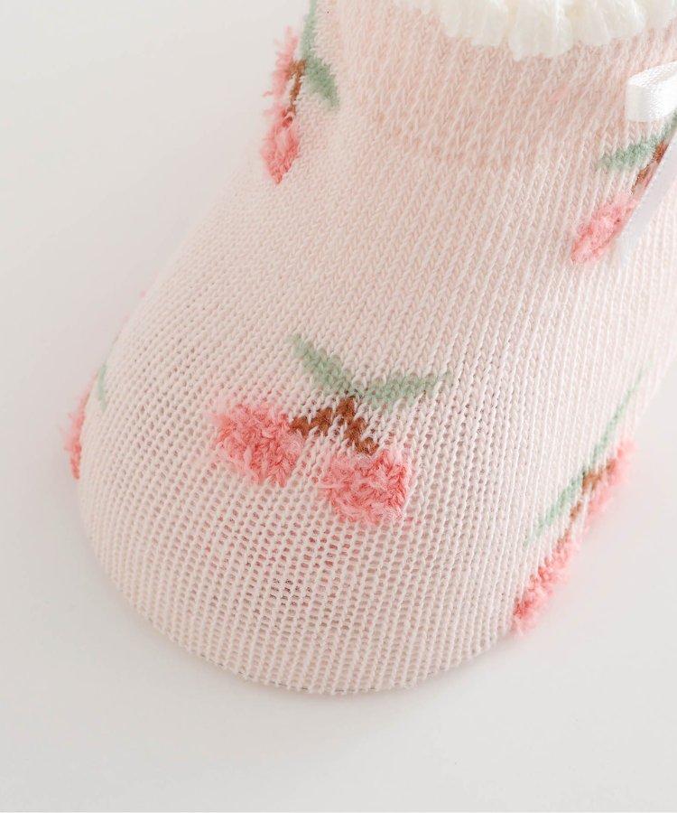 apres les cours 緊身衣和襪子 "櫻桃和花朵圖案嬰兒襪 "的設計從腳部開始就很時尚。請盡情搭配溜溜球吧。