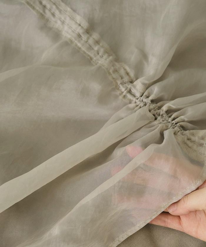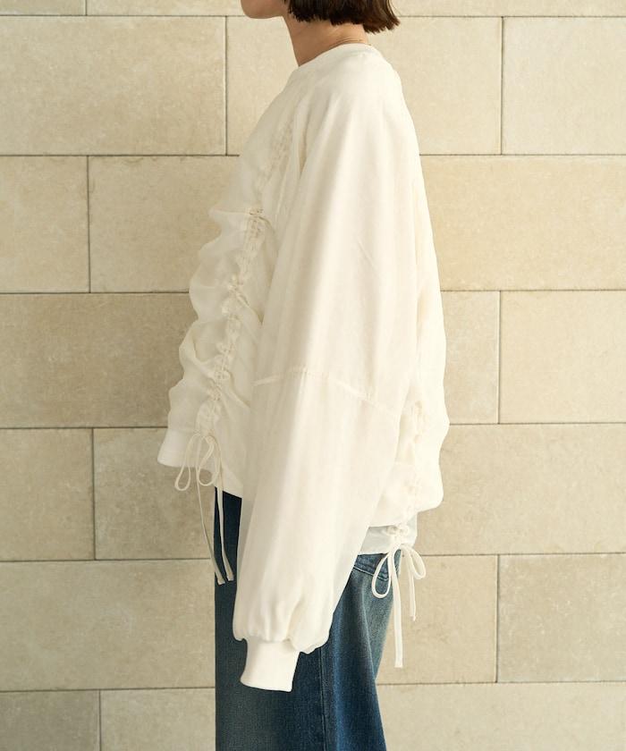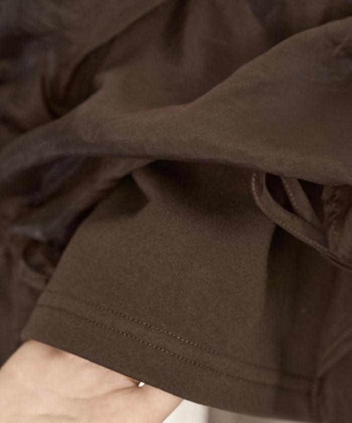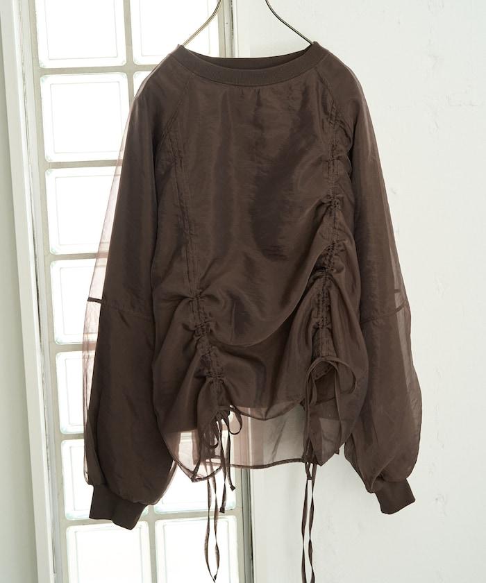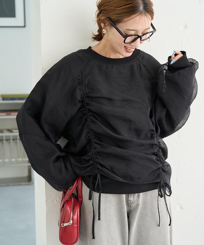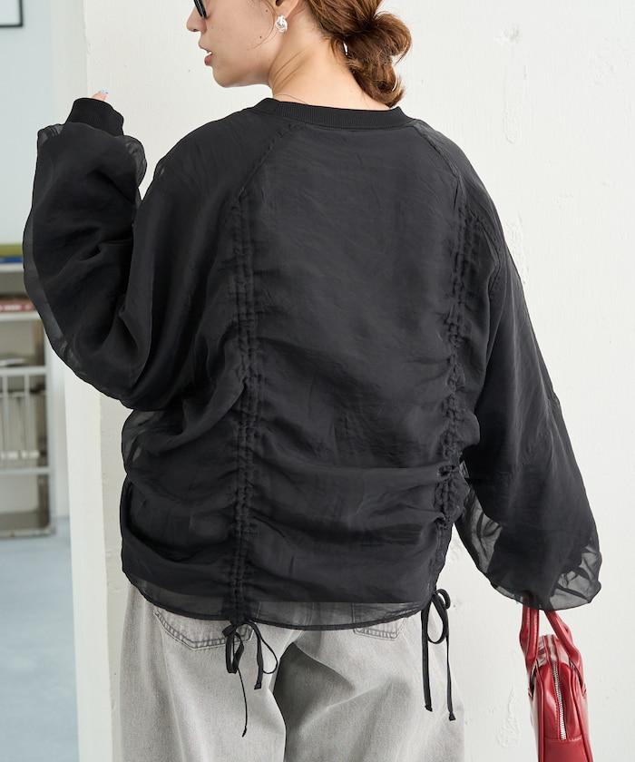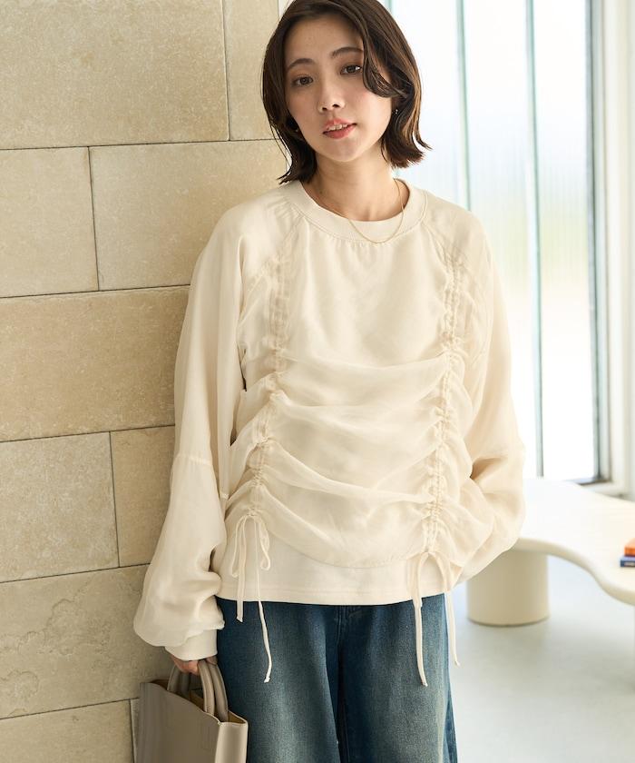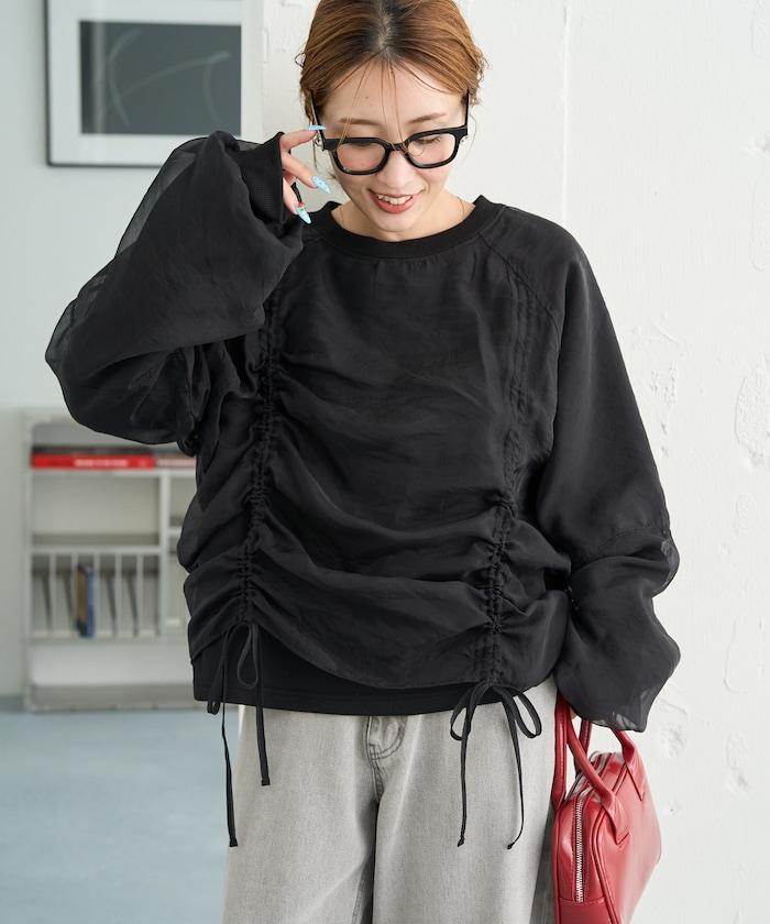 這款套頭衫採用透明歐根紗層疊設計,皺褶的褶皺賦予其立體感,單穿也很好看!