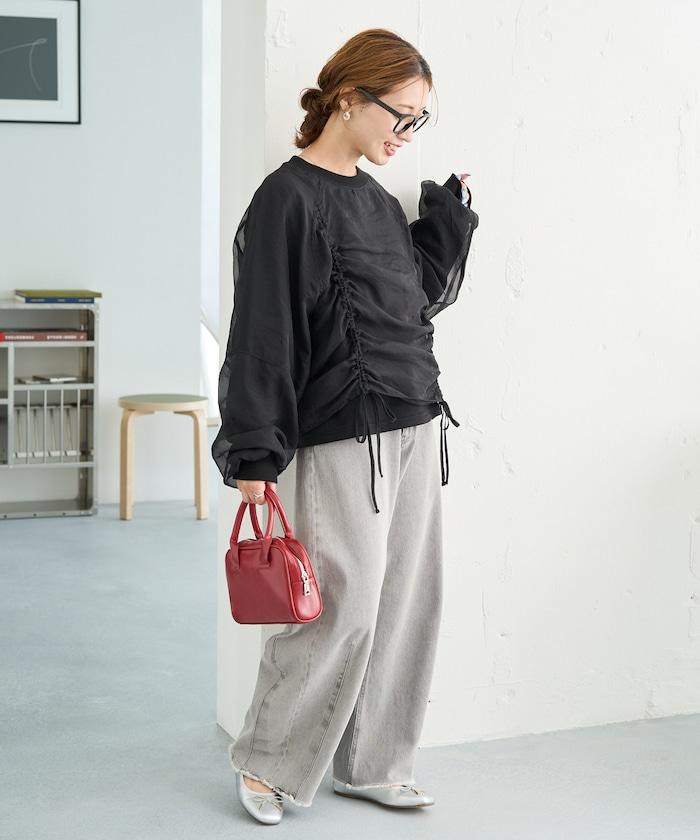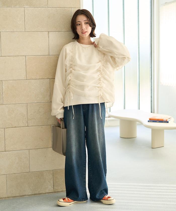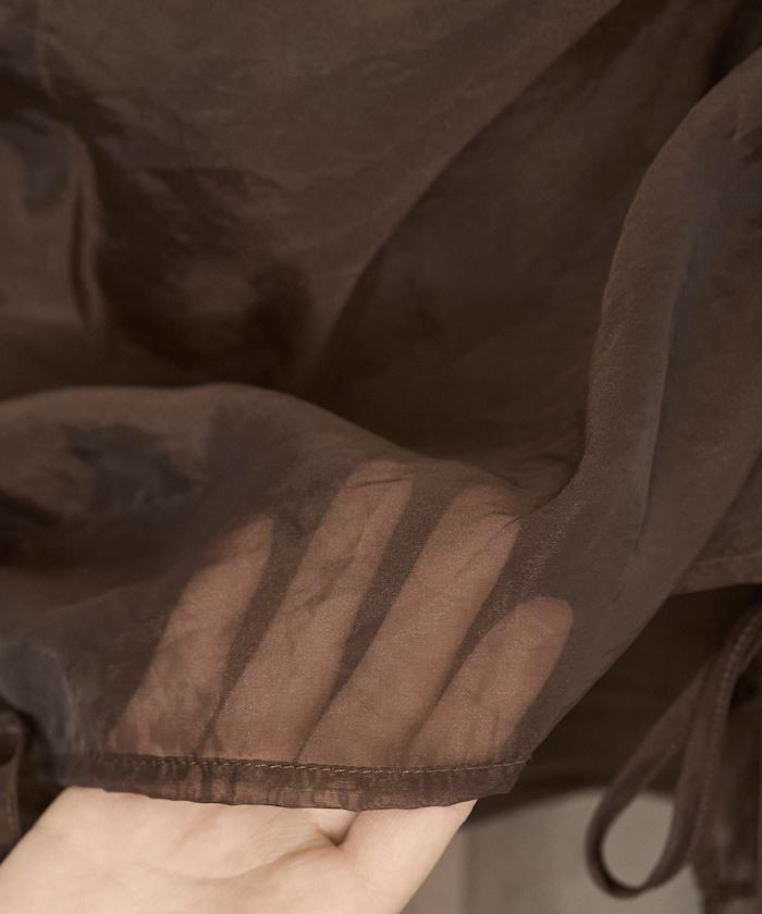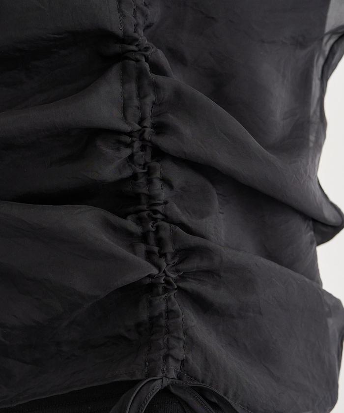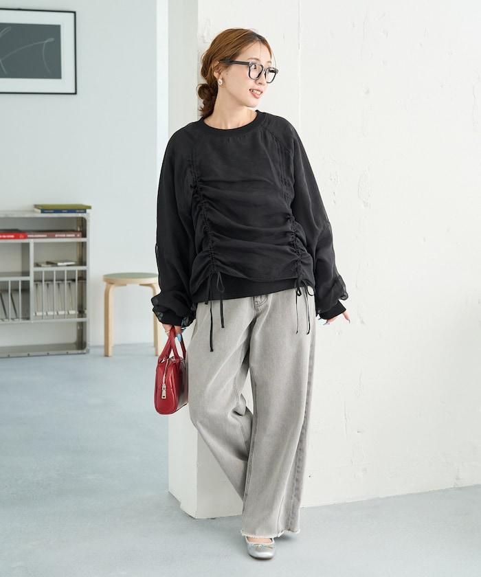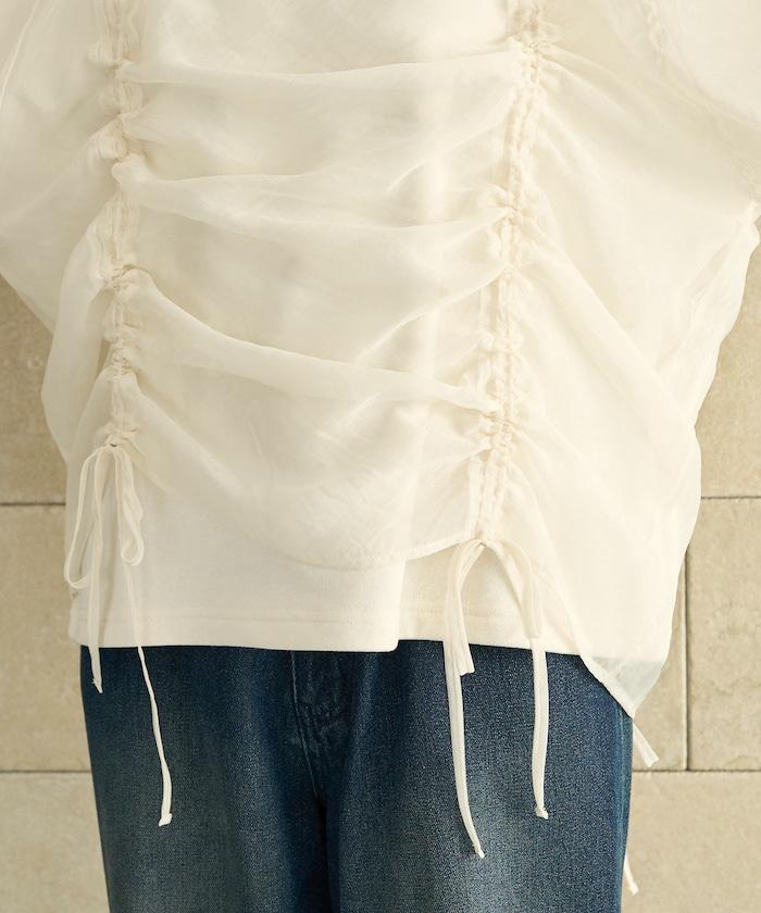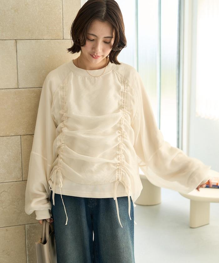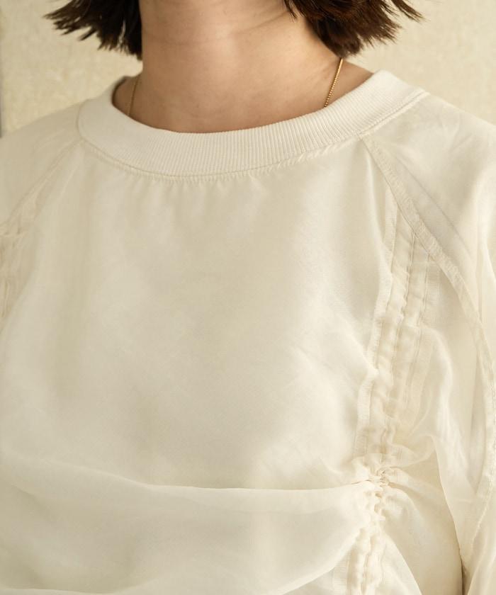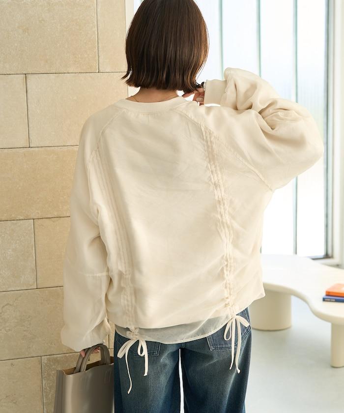 這款套頭衫採用透明歐根紗層疊設計,皺褶的褶皺賦予其立體感,單穿也很好看!