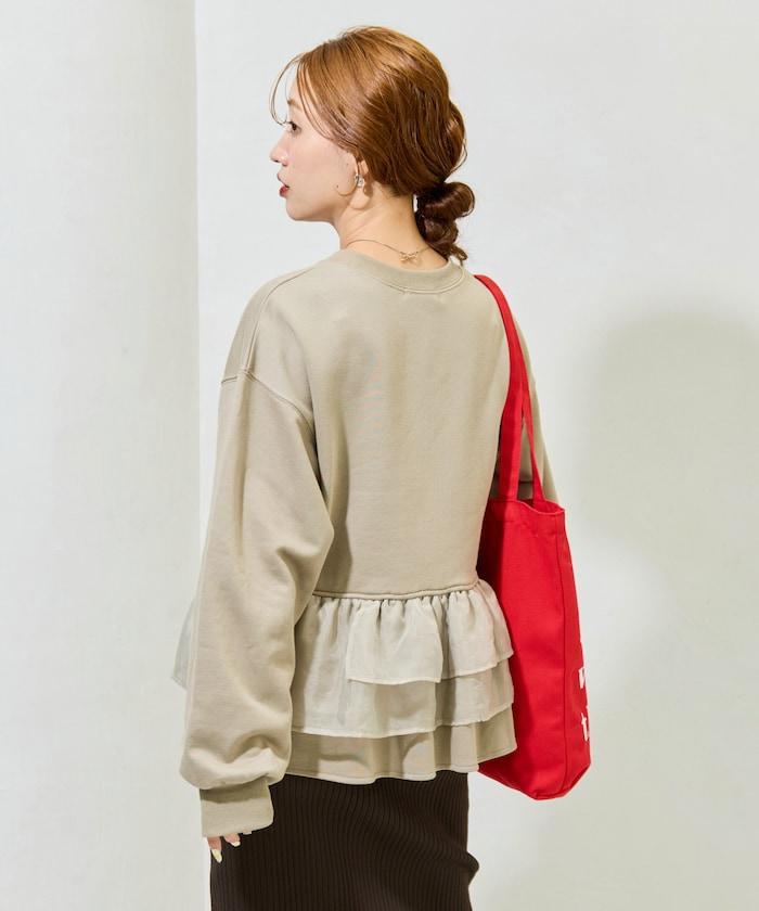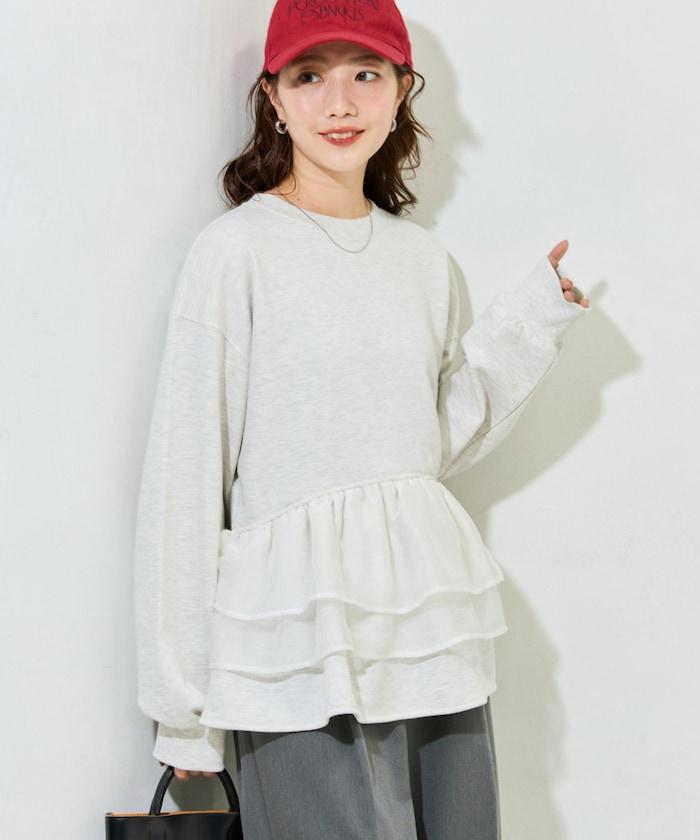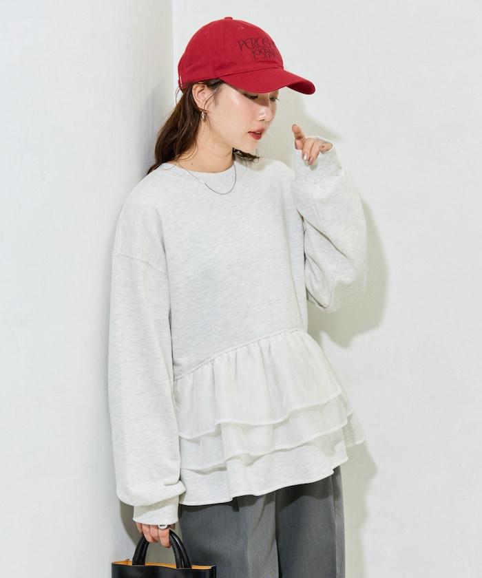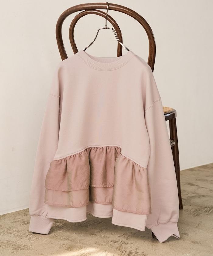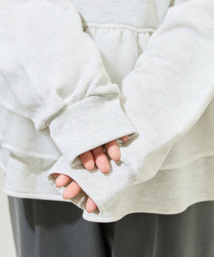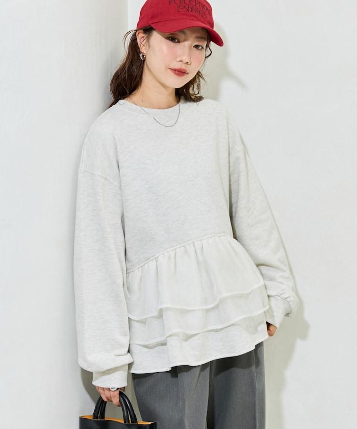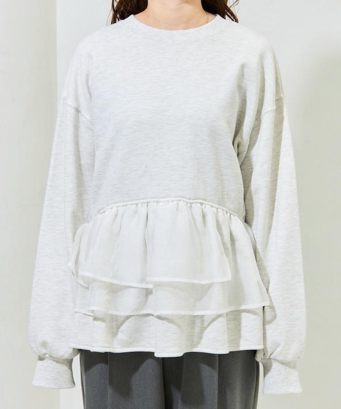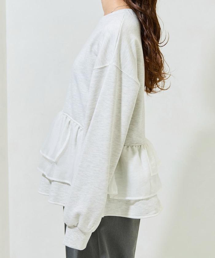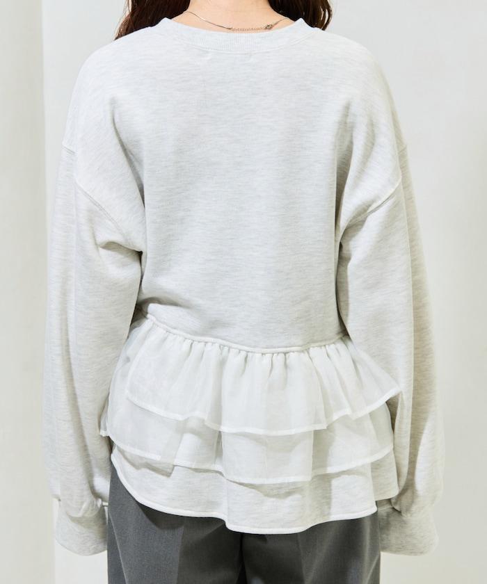 歐根紗荷葉邊拼接衛衣套頭衫