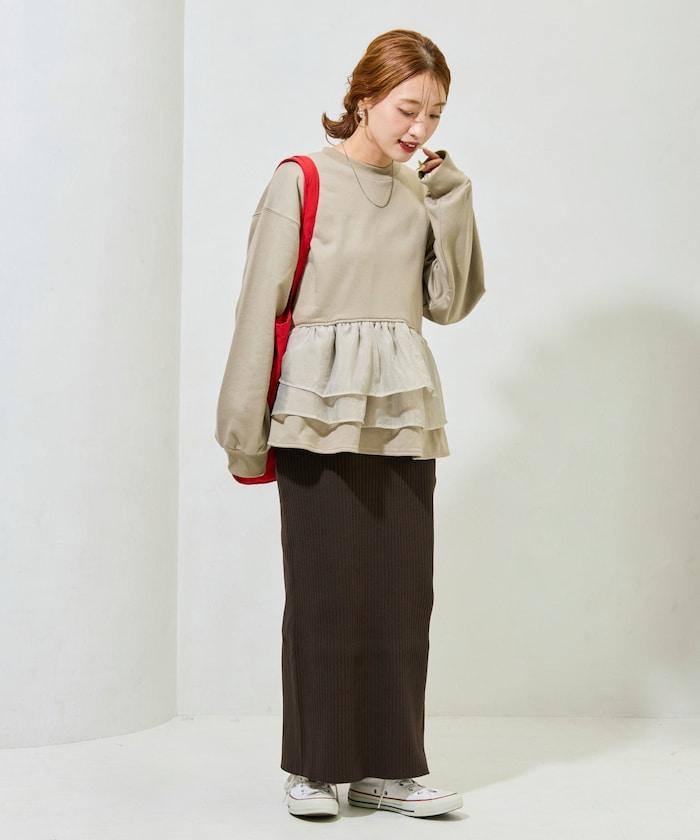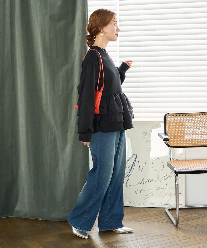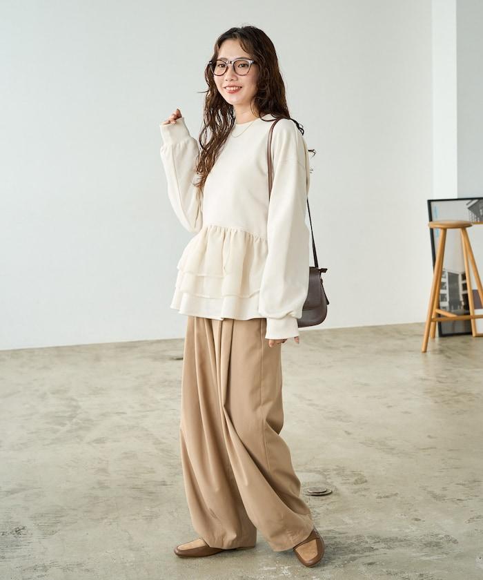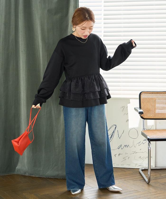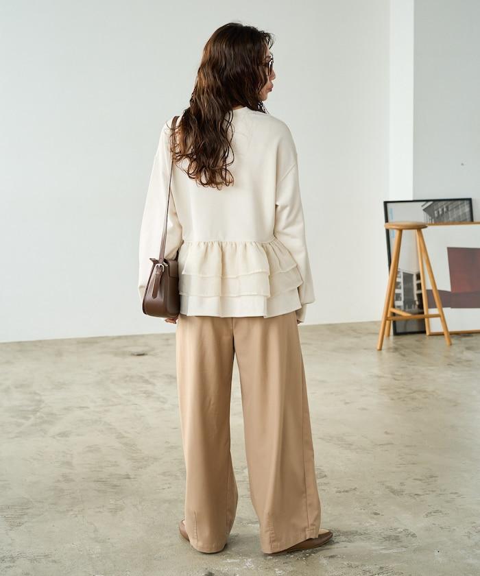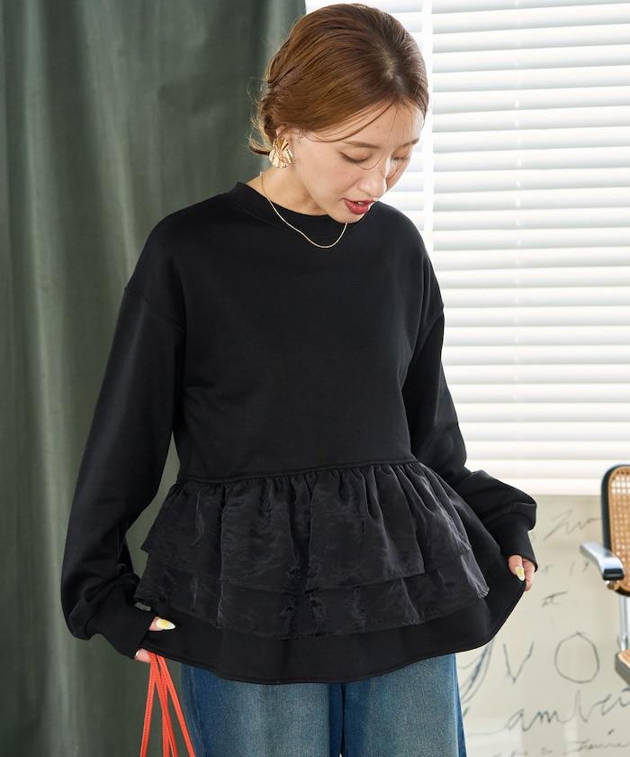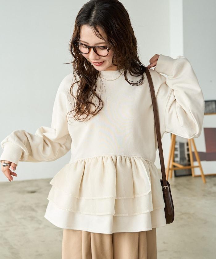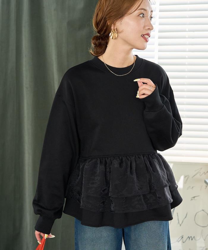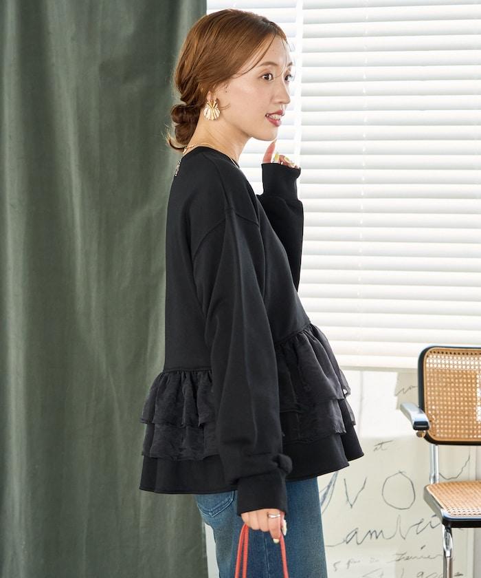 歐根紗荷葉邊拼接衛衣套頭衫