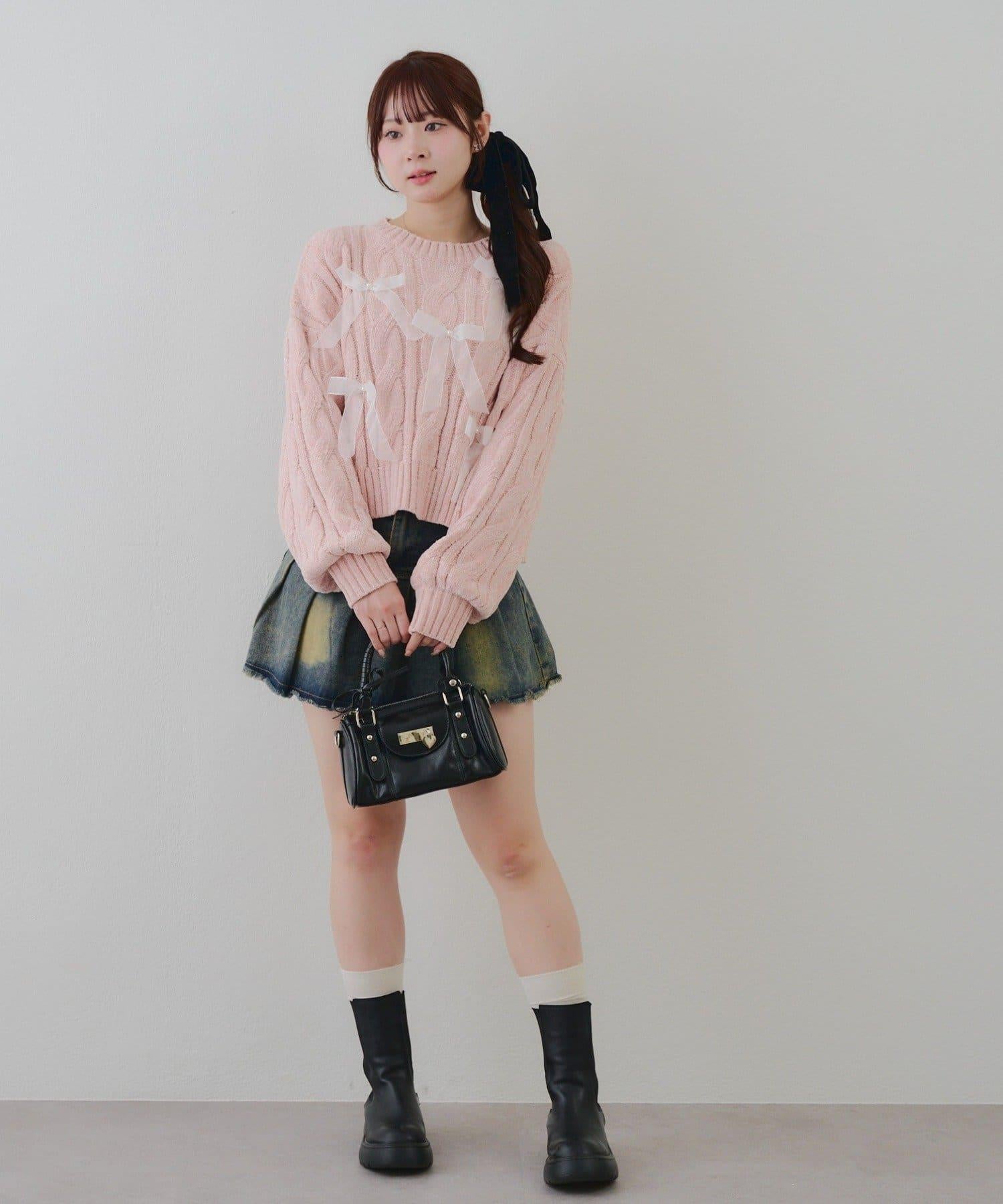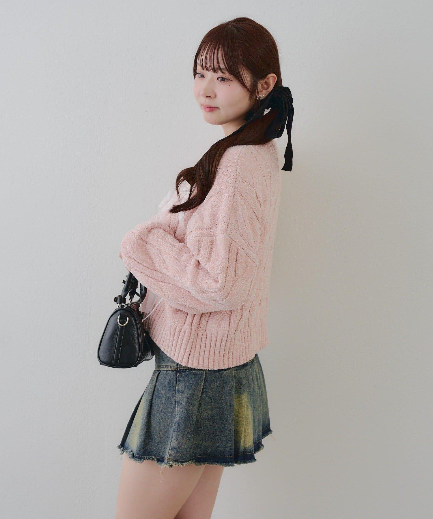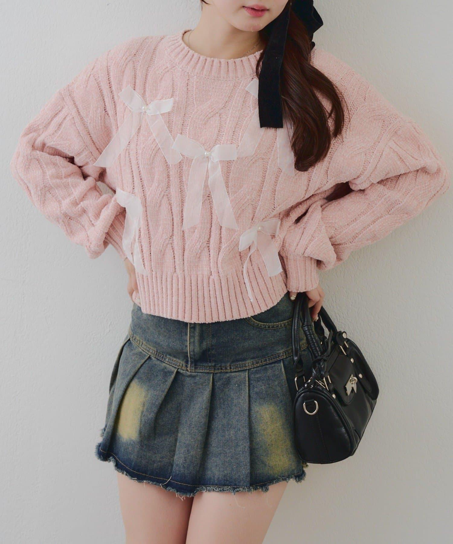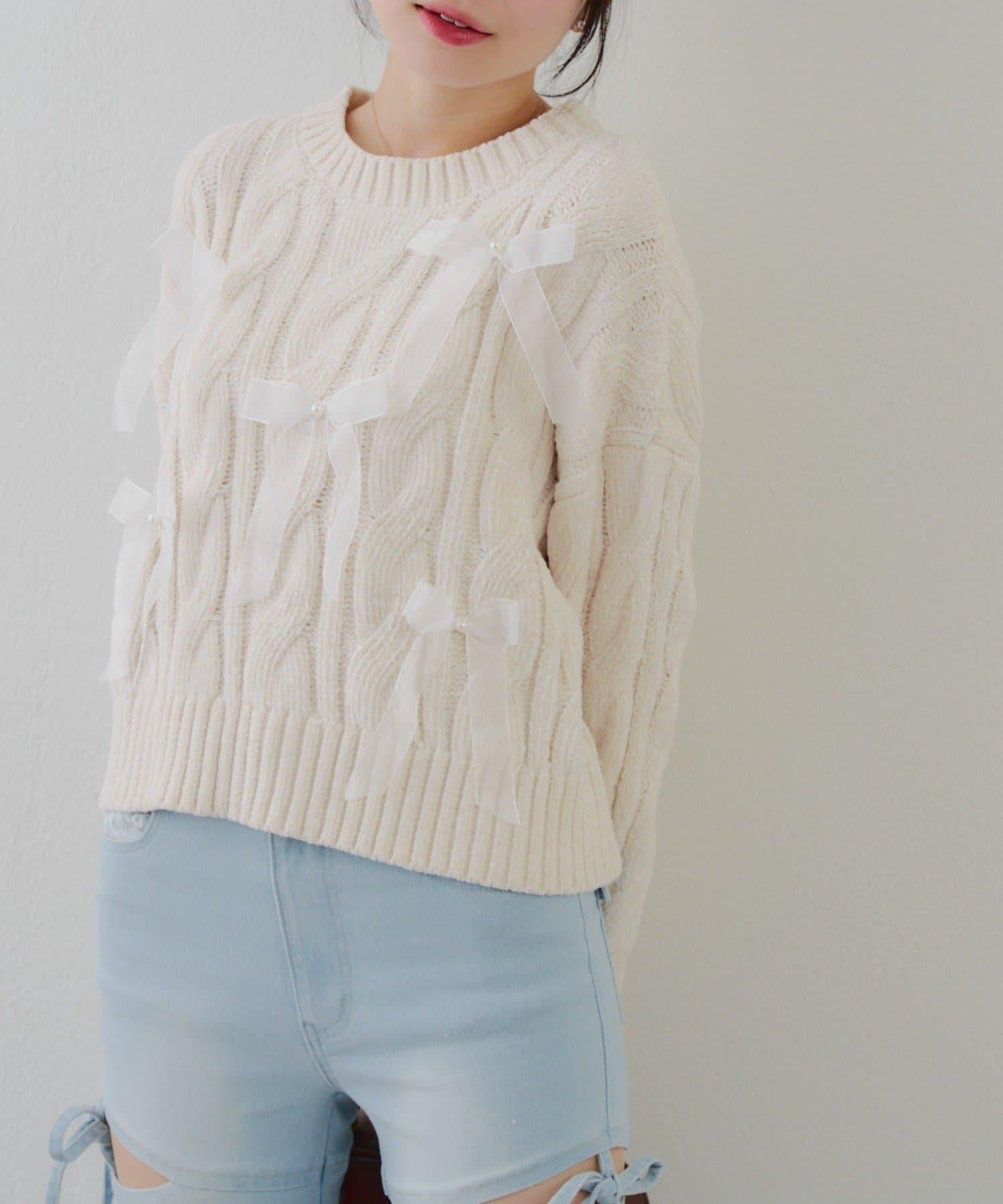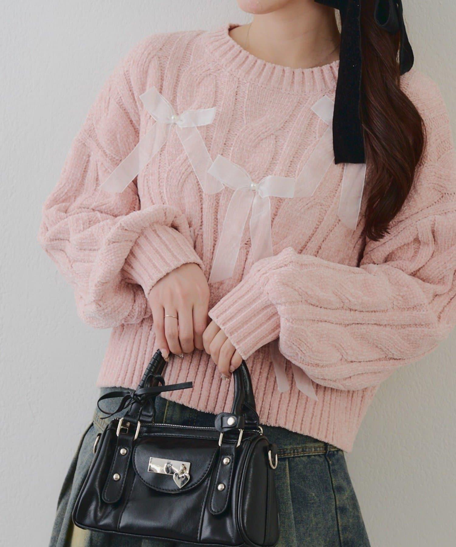 歐根紗蝴蝶結毛線針織衫