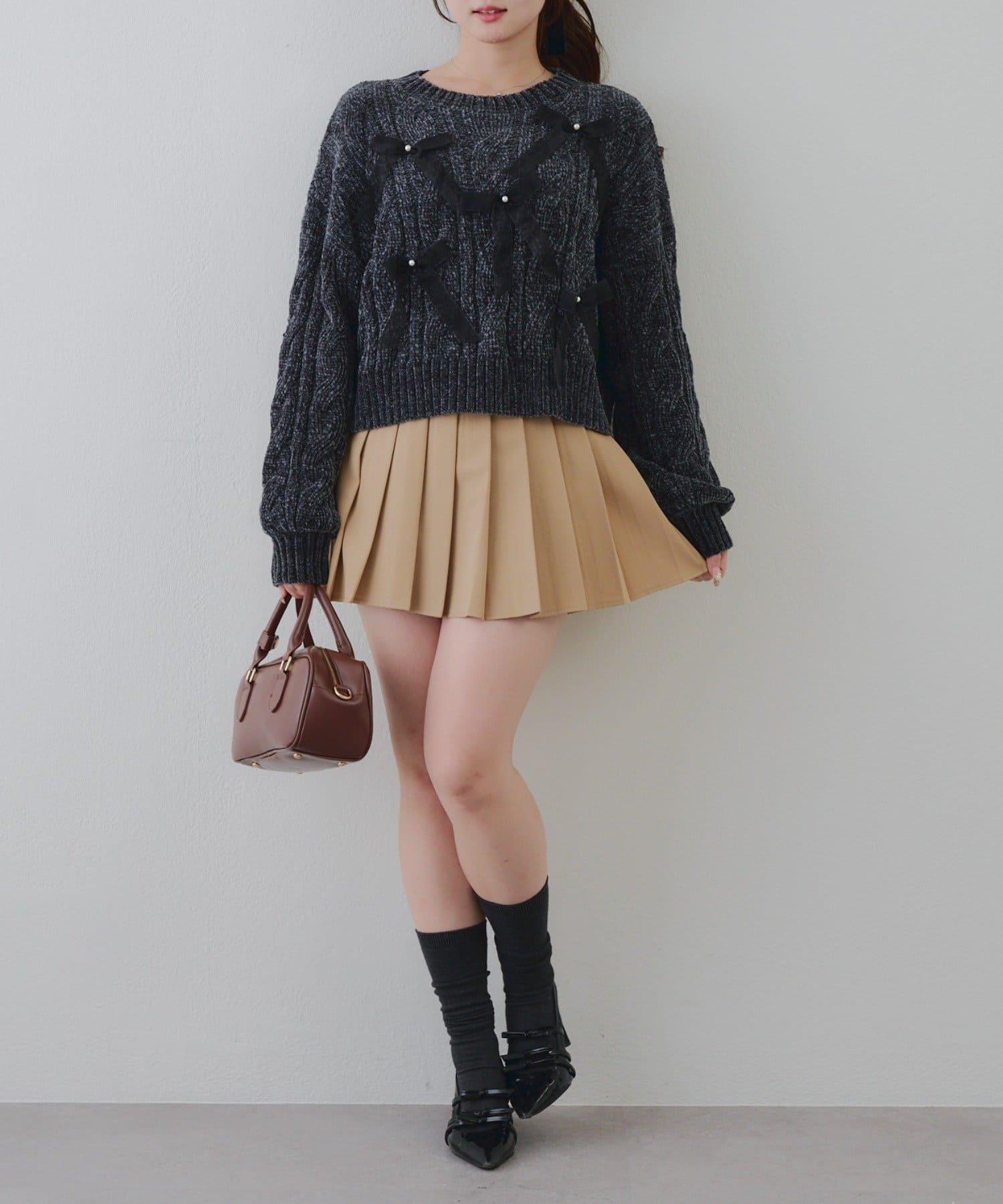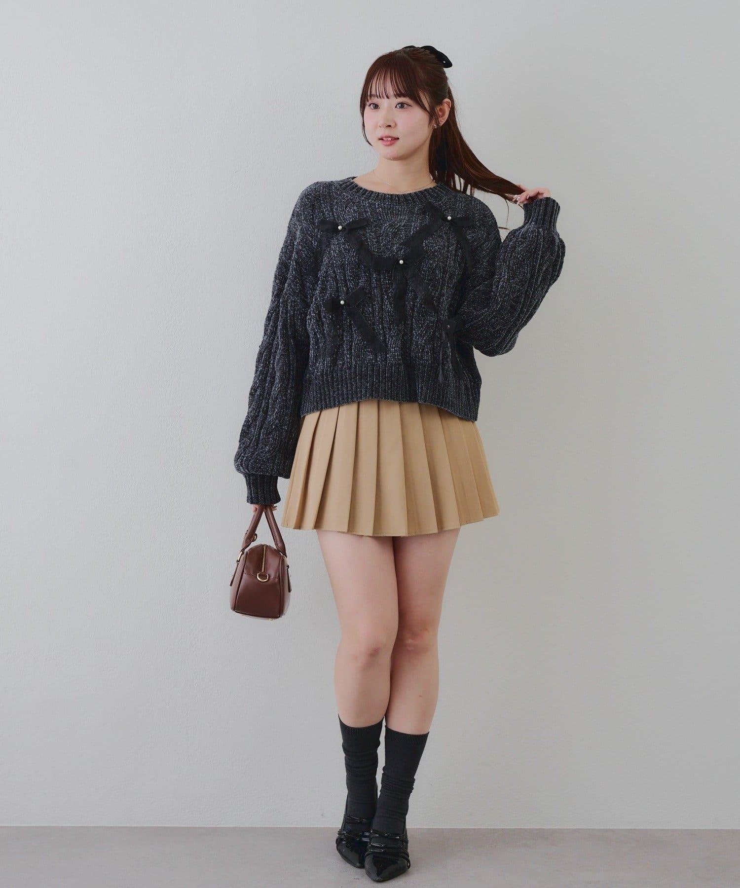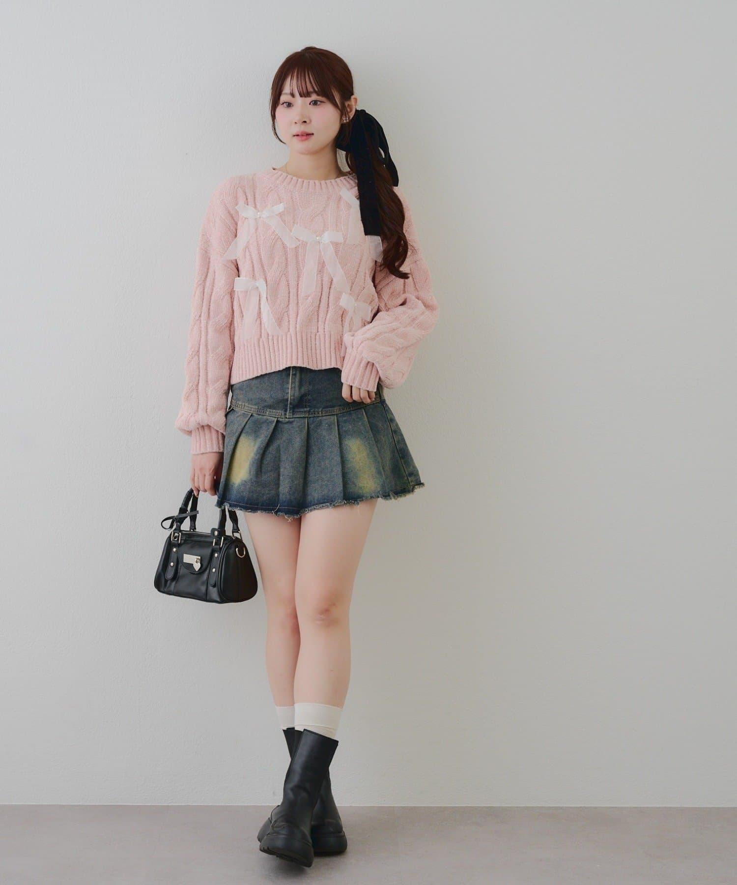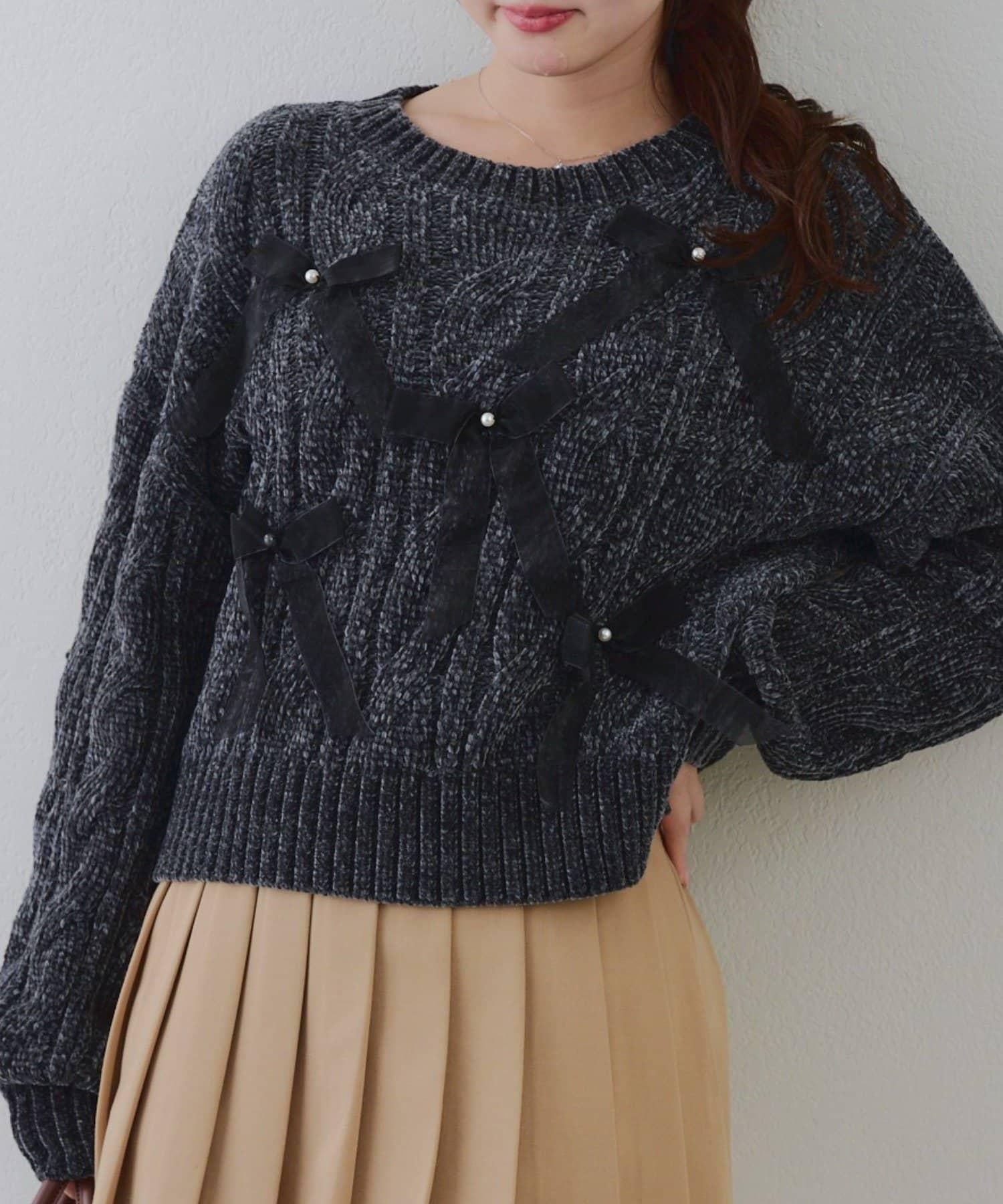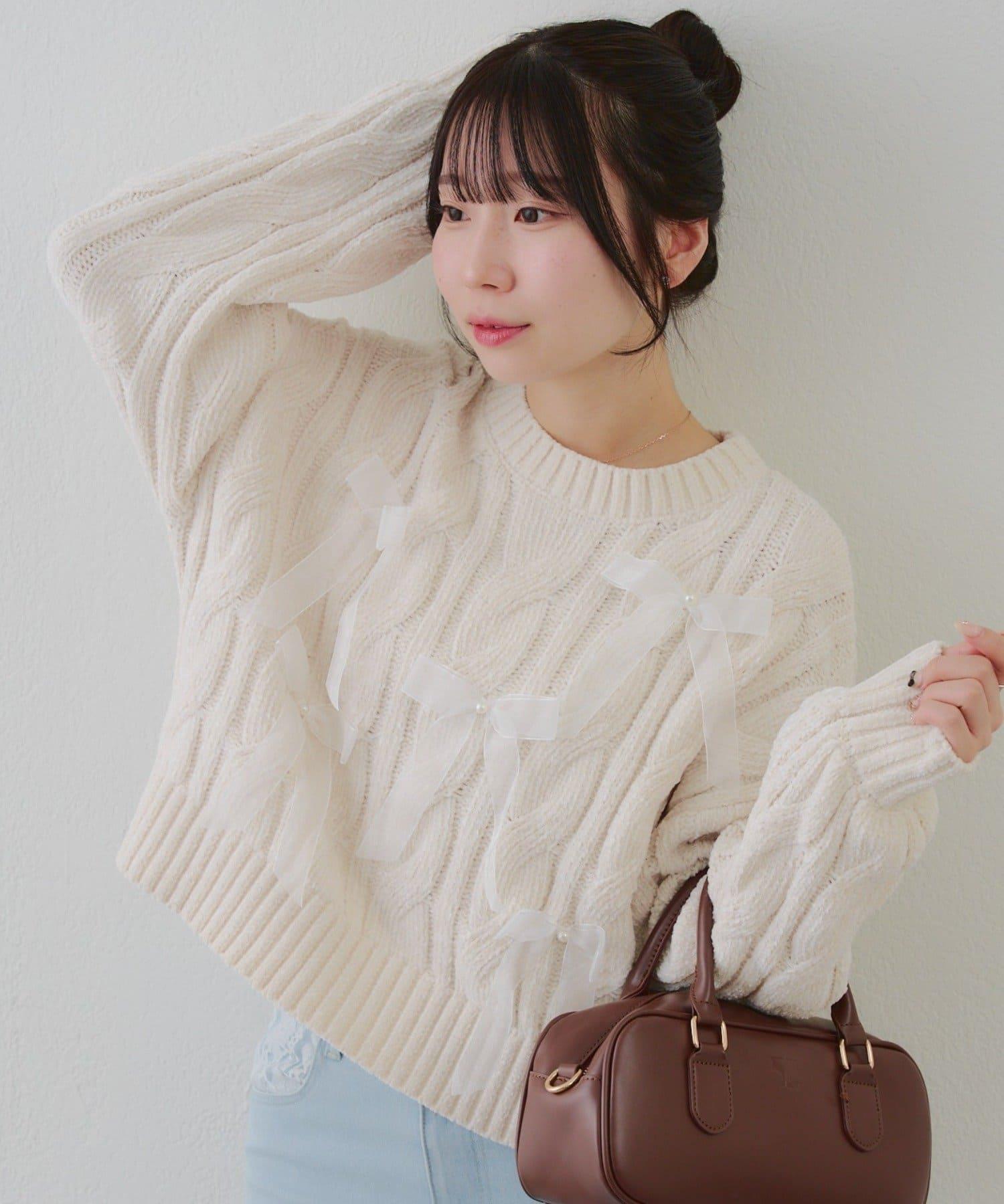 歐根紗蝴蝶結毛線針織衫