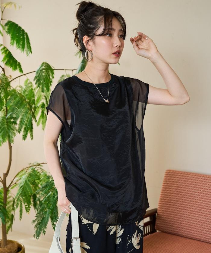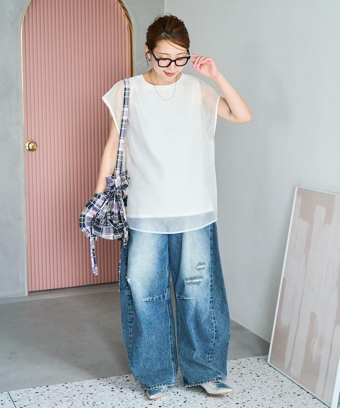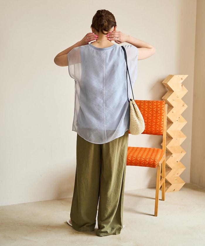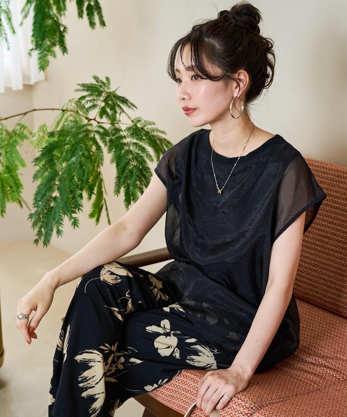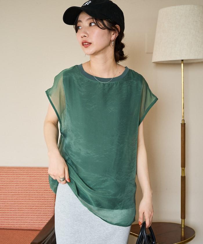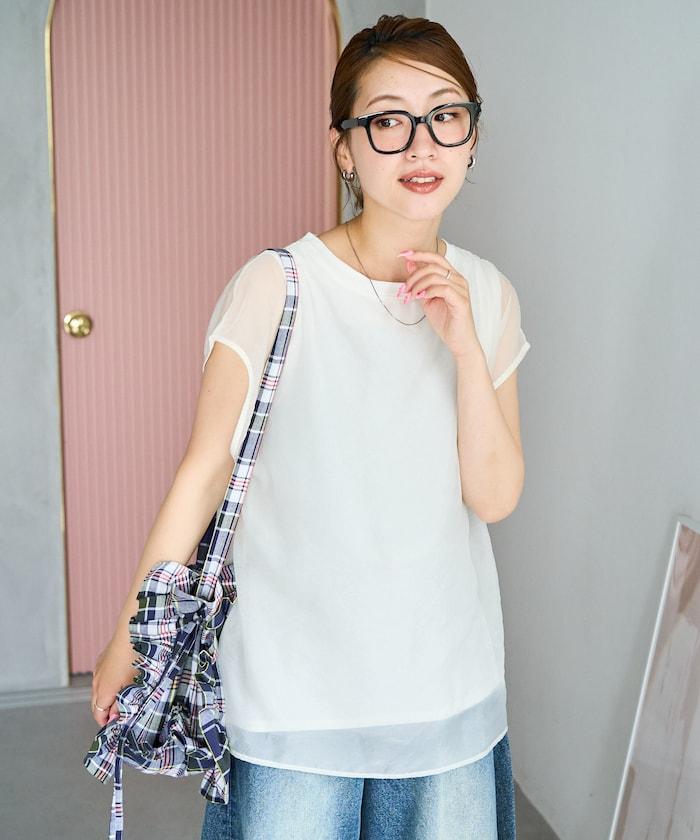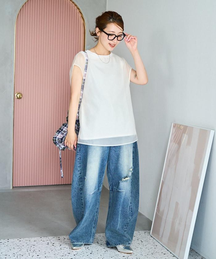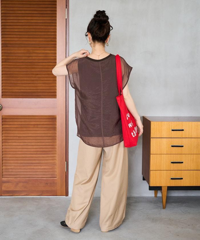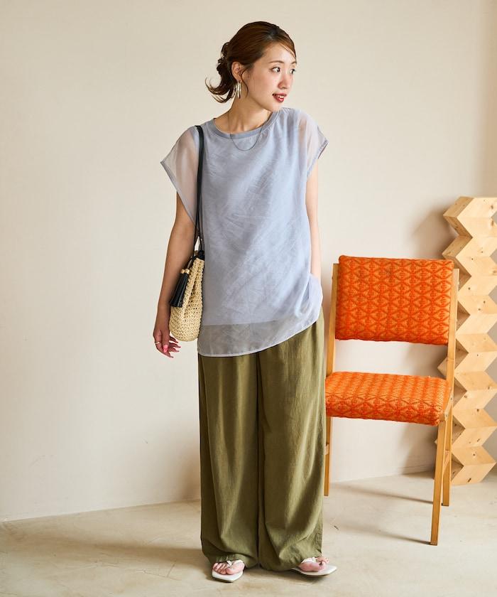 歐根紗的透明感使 T 恤看起來適度優雅,即使搭配休閒褲也不會過於粗糙。