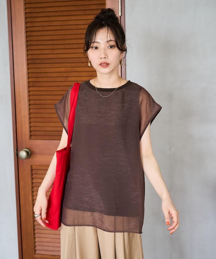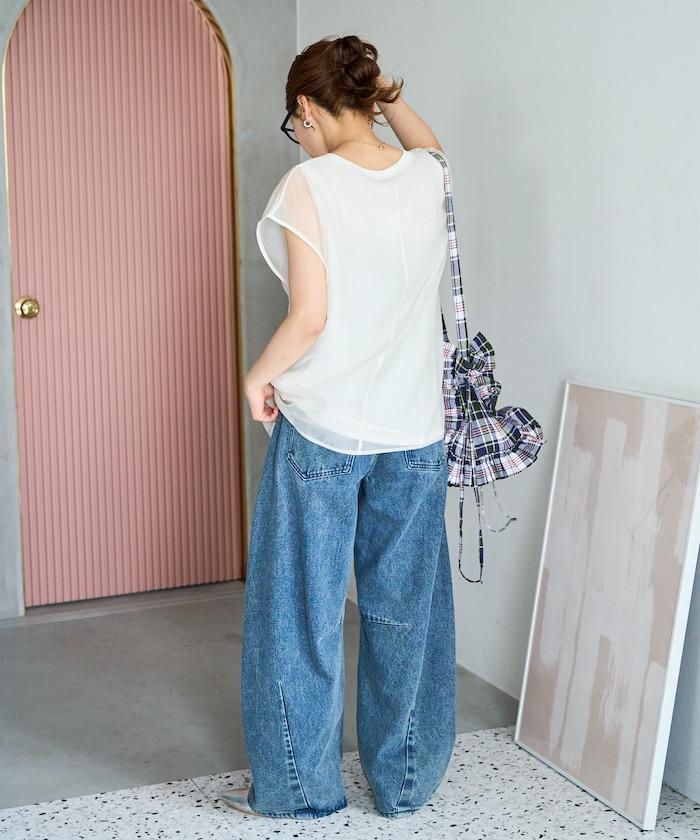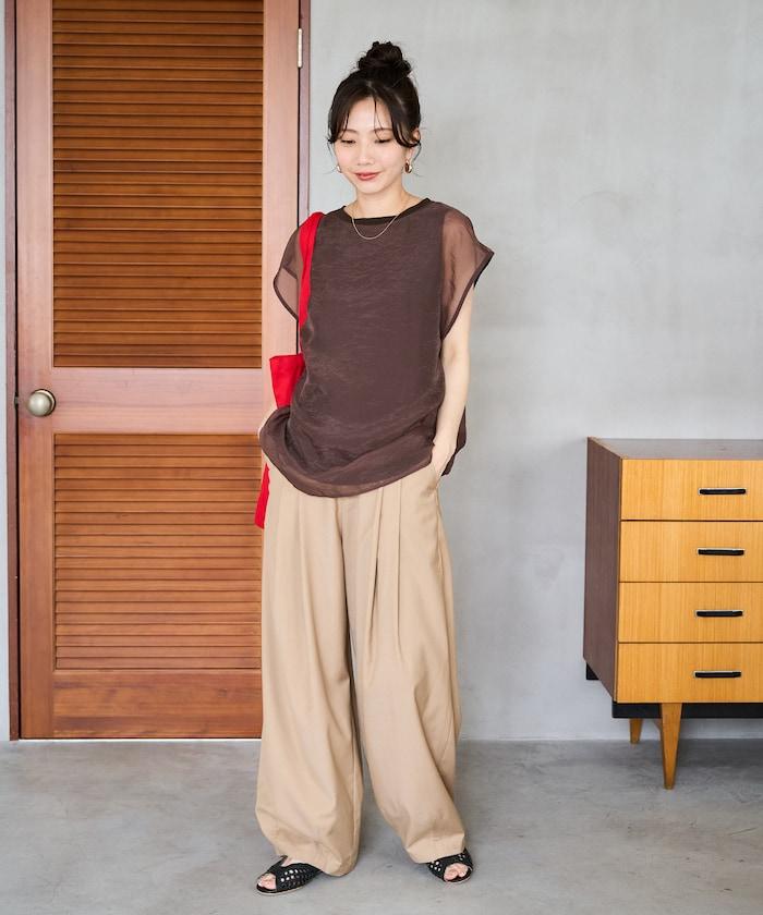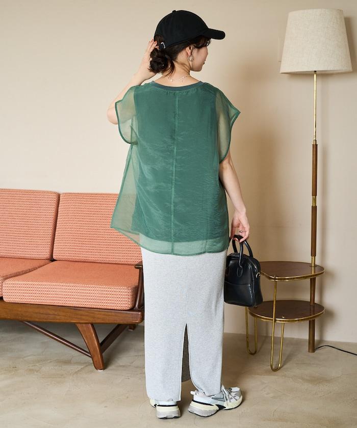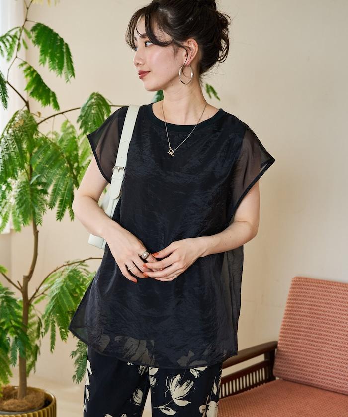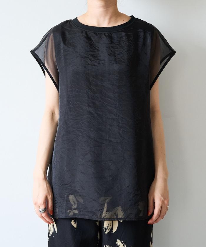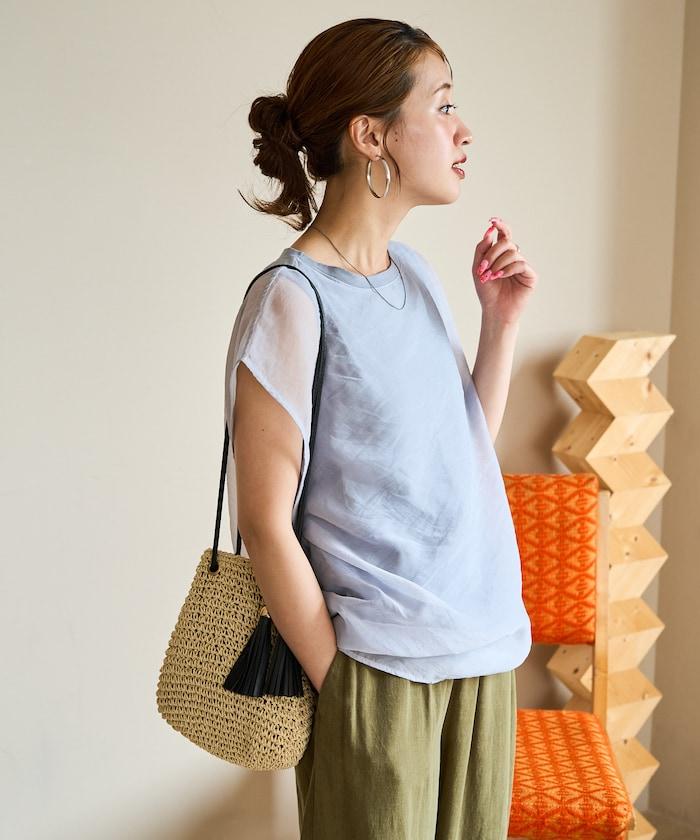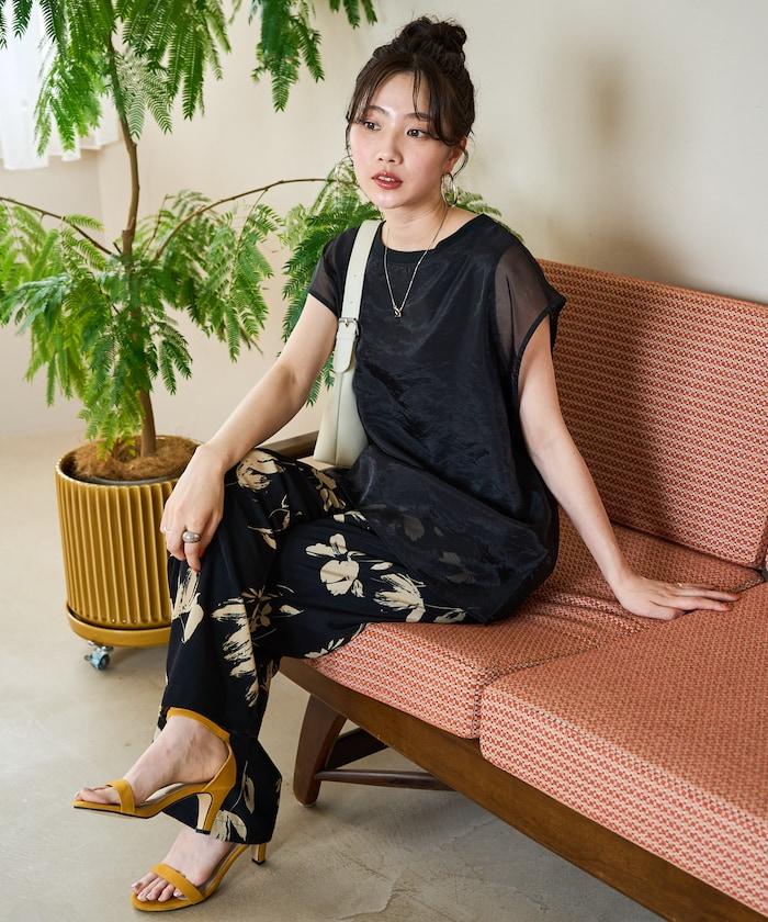 歐根紗的透明感使 T 恤看起來適度優雅,即使搭配休閒褲也不會過於粗糙。