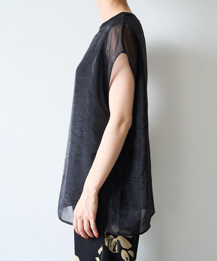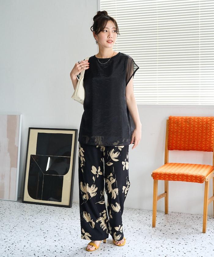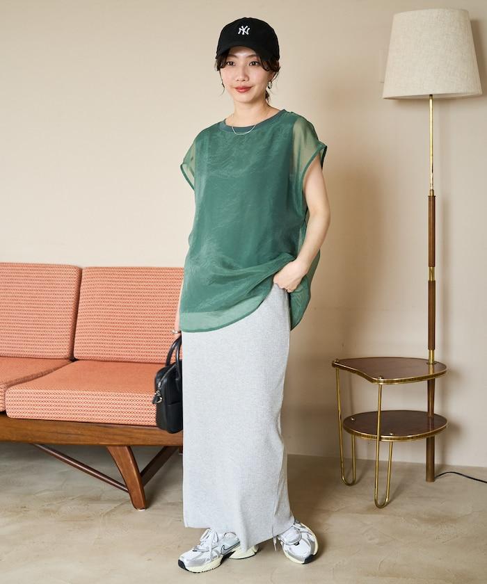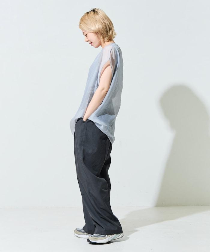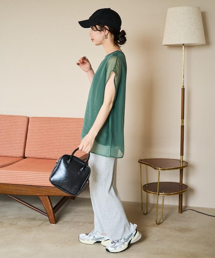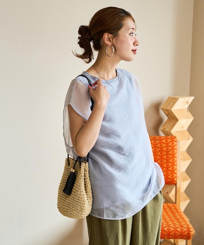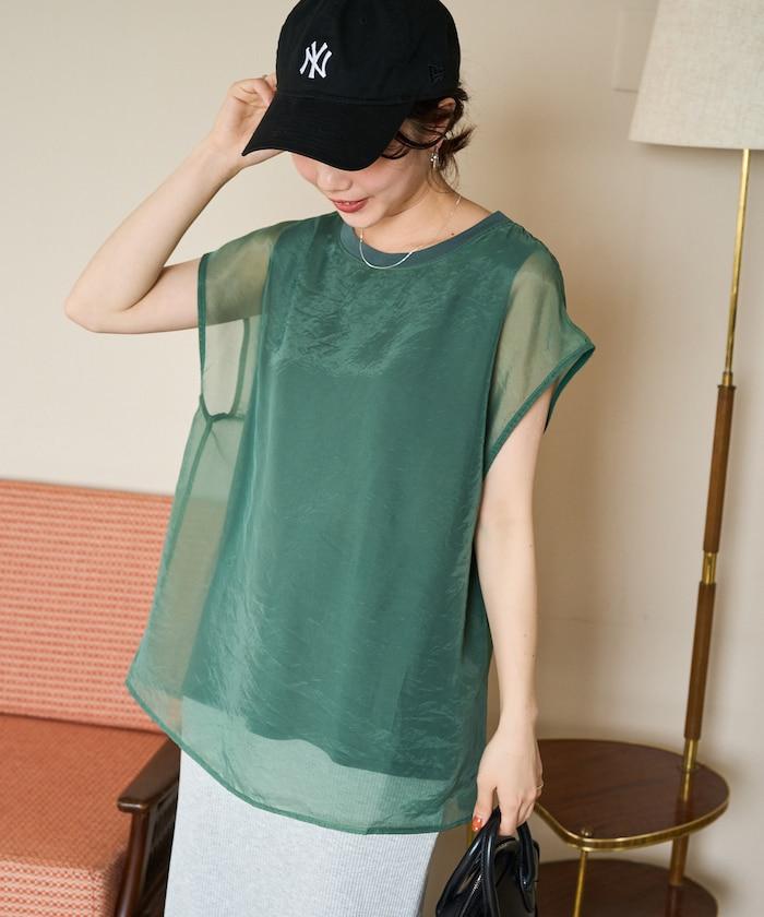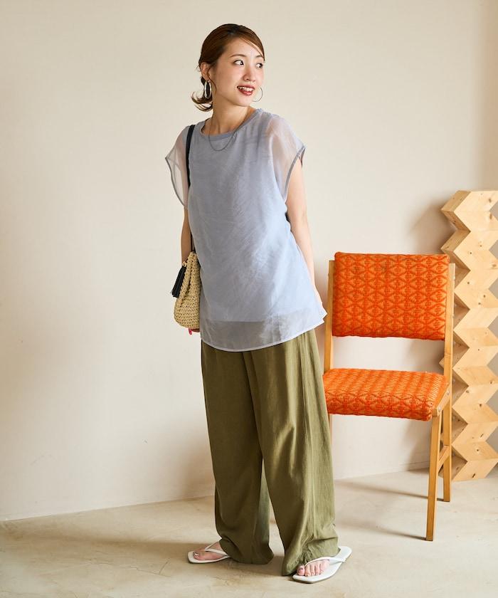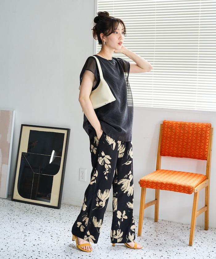 歐根紗的透明感使 T 恤看起來適度優雅,即使搭配休閒褲也不會過於粗糙。