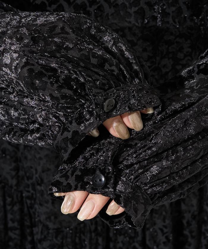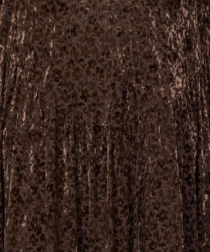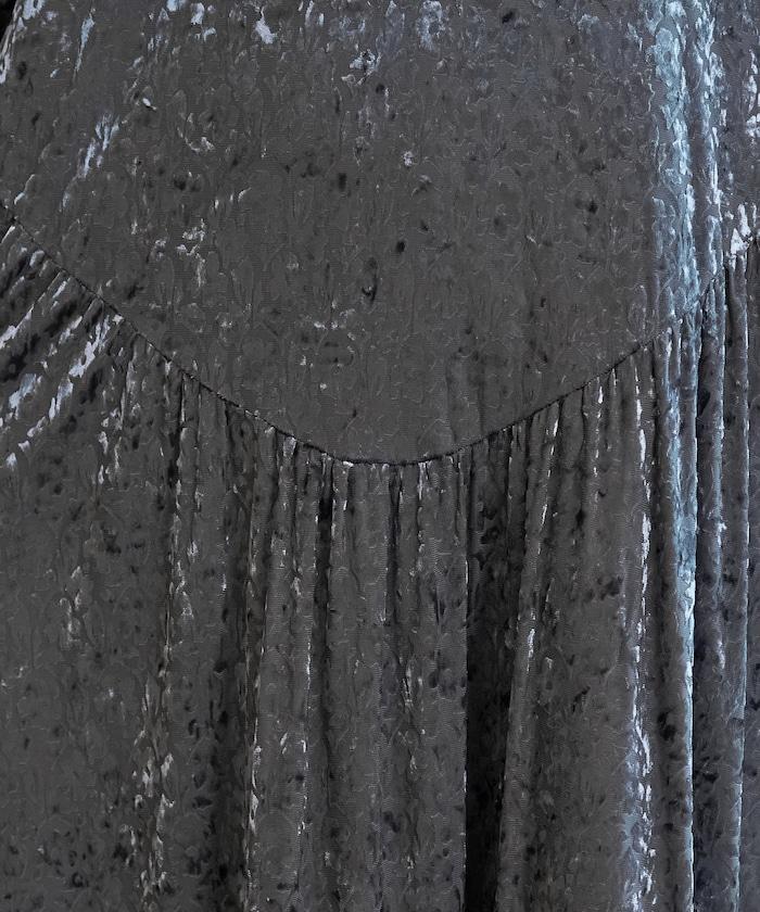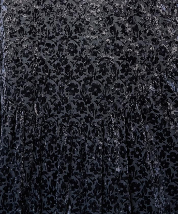 天鵝絨蛋白石面料上的花朵圖案營造出迷人的外觀,高透視度的連衣裙在您移動時熠熠生輝。