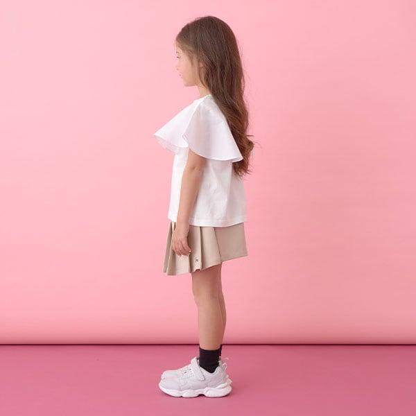 簡潔的 A 字形 T 恤,柔美的喇叭袖設計,營造出少女般的輪廓。