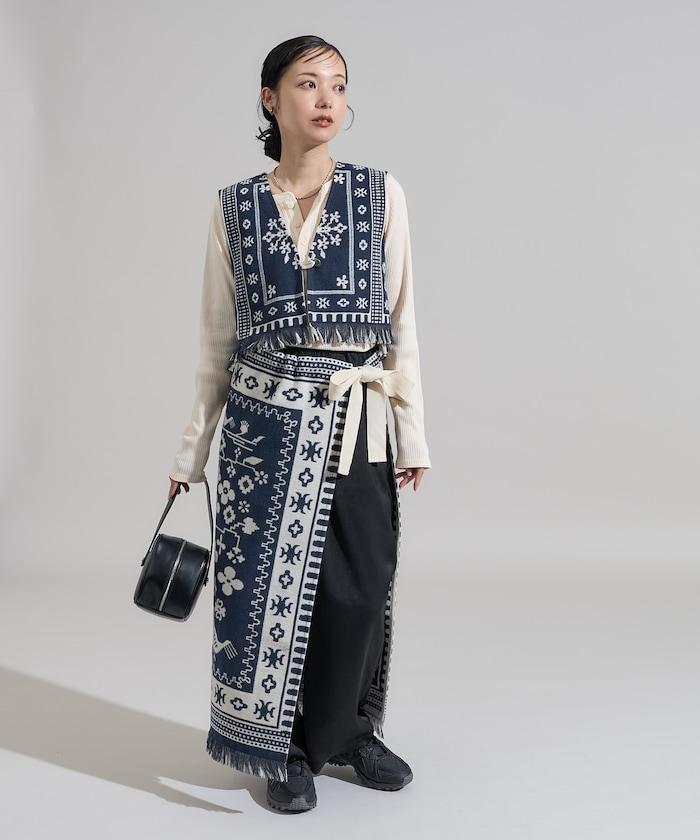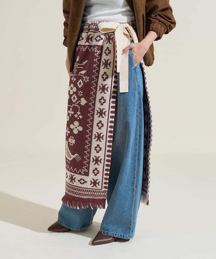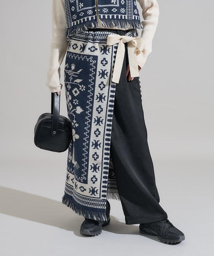 毛毯改造風格裹身半身裙<可搭配套裝>