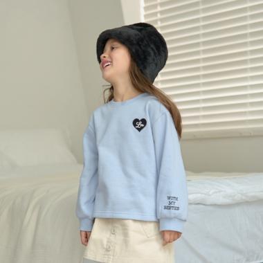 【毛玉バイバイ裡起毛裡毛】愛心刺繡泡泡袖加絨衛衣