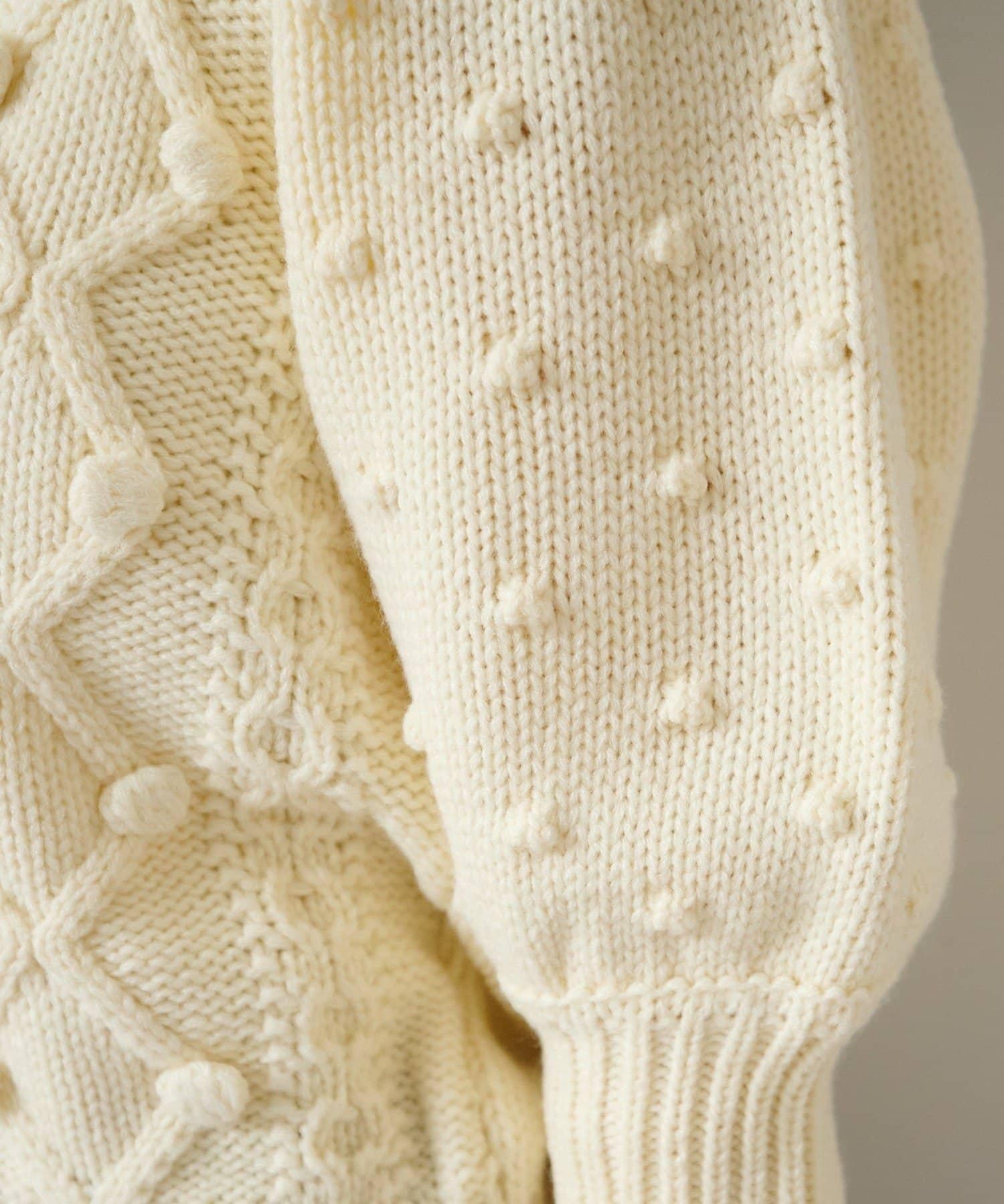立體的絨球裝飾與優雅的針織圖案相結合,打造出一件極具存在感的單品。