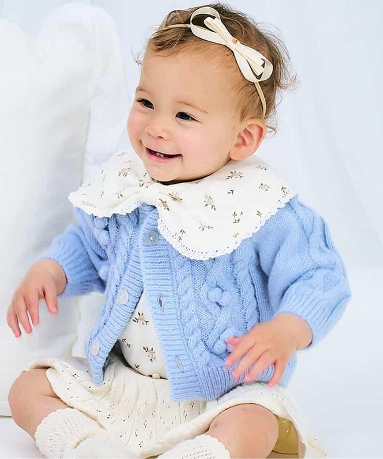 apres les cours "Pom-Pom Knit Baby Cardigan "是一款方便的單品,在寒冷時可快速穿上。可與內衣*疊穿。