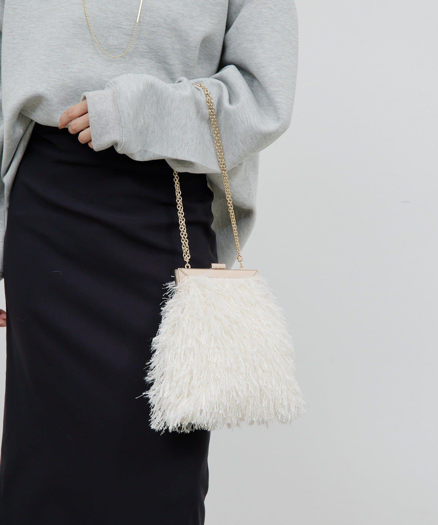 鏈條肩絨毛包,拿在手上就能讓人眼前一亮。