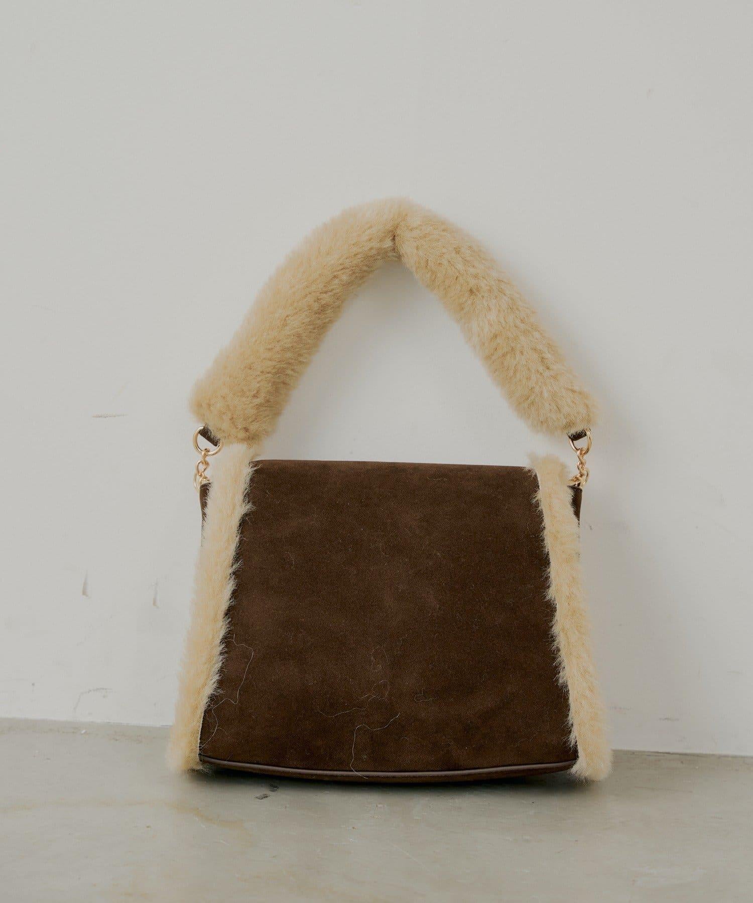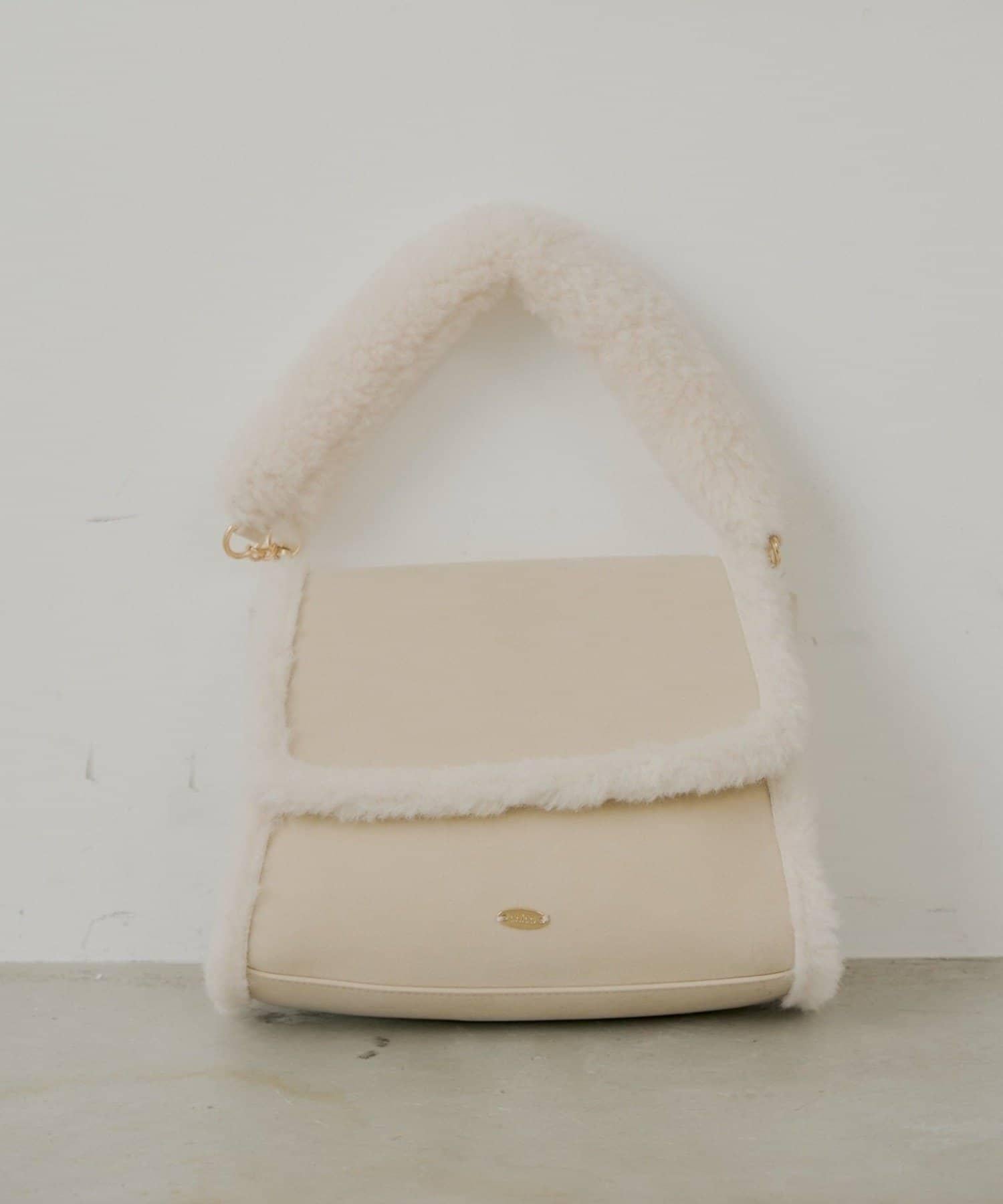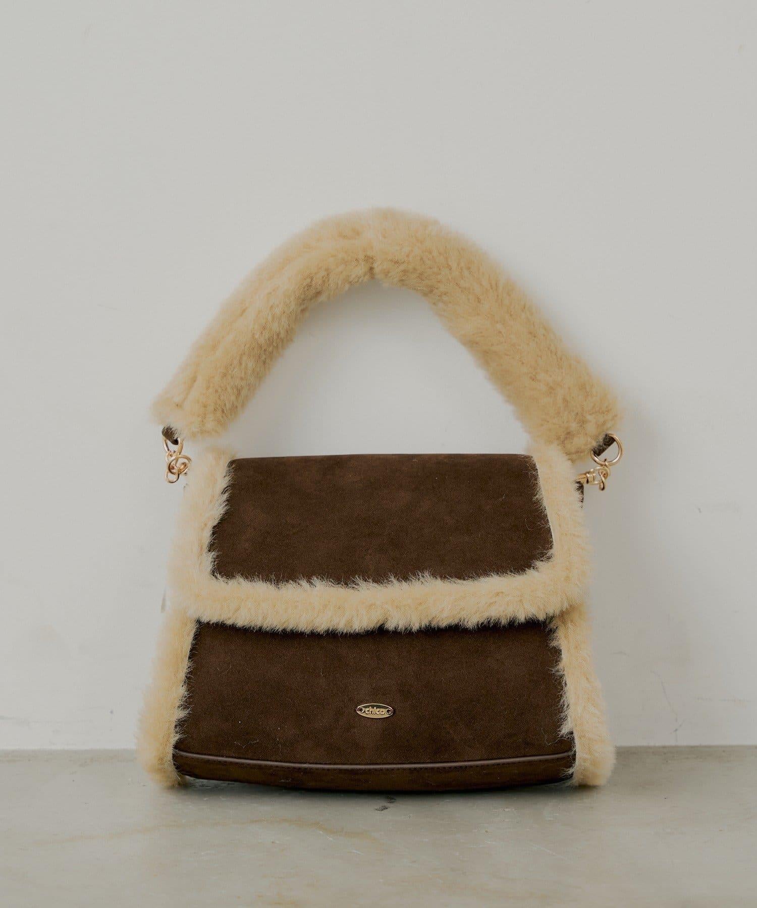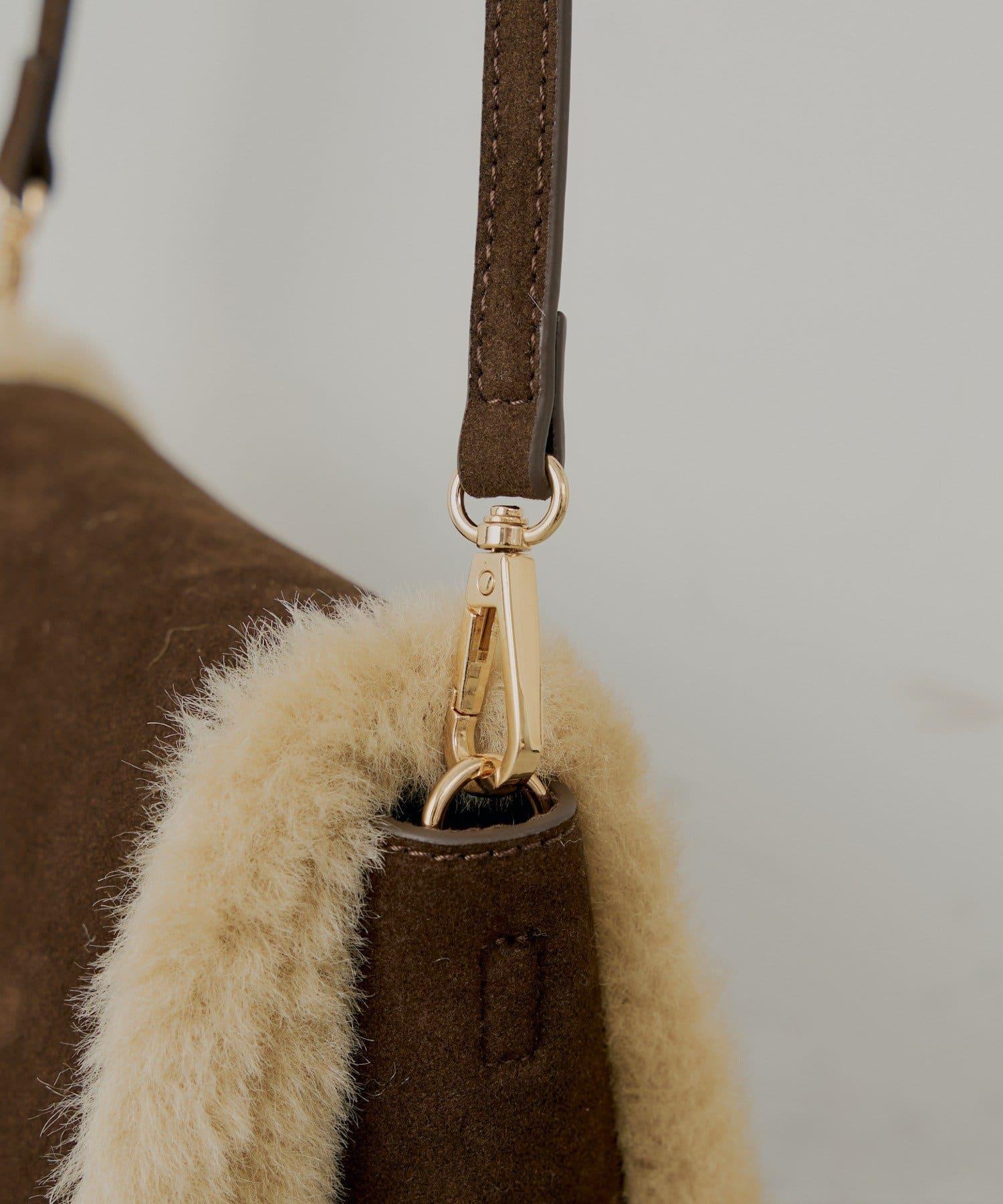 蓬鬆的毛皮手柄和翻蓋為這款手袋增添了協調的亮點。