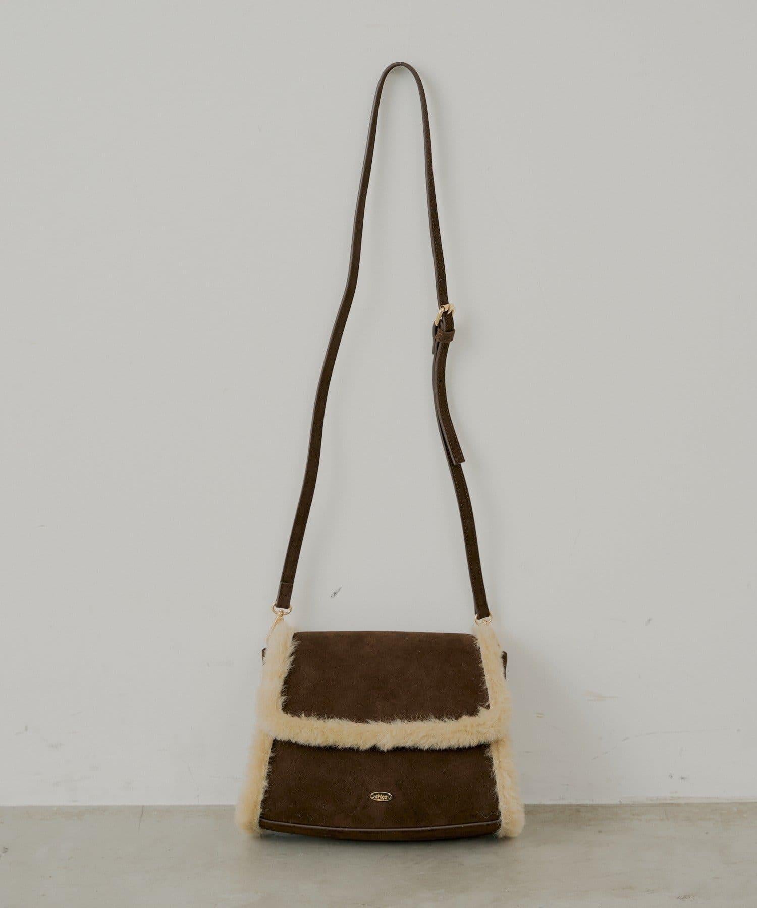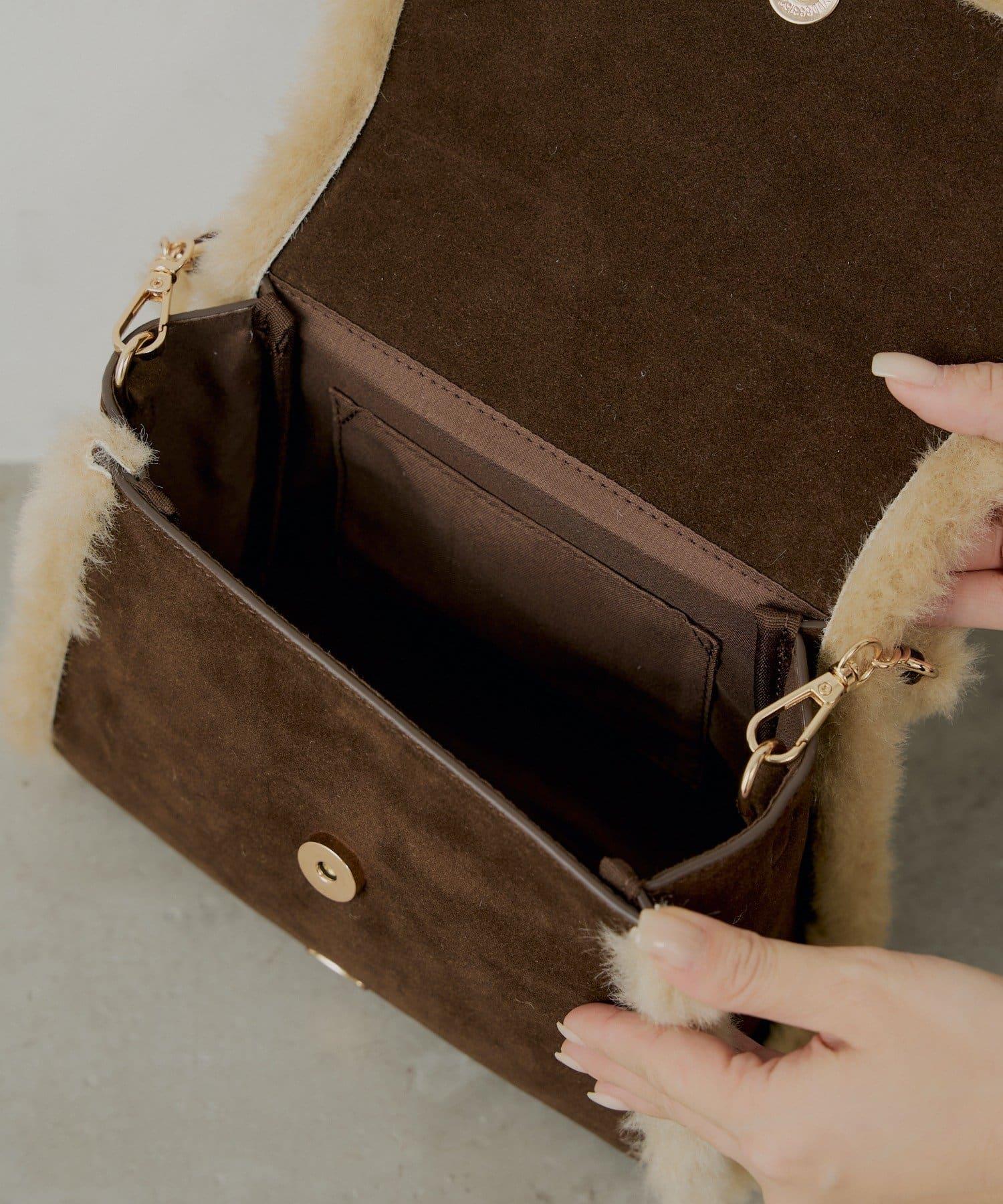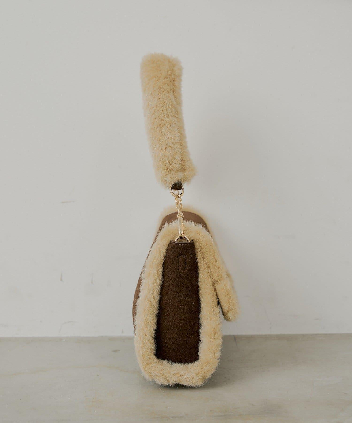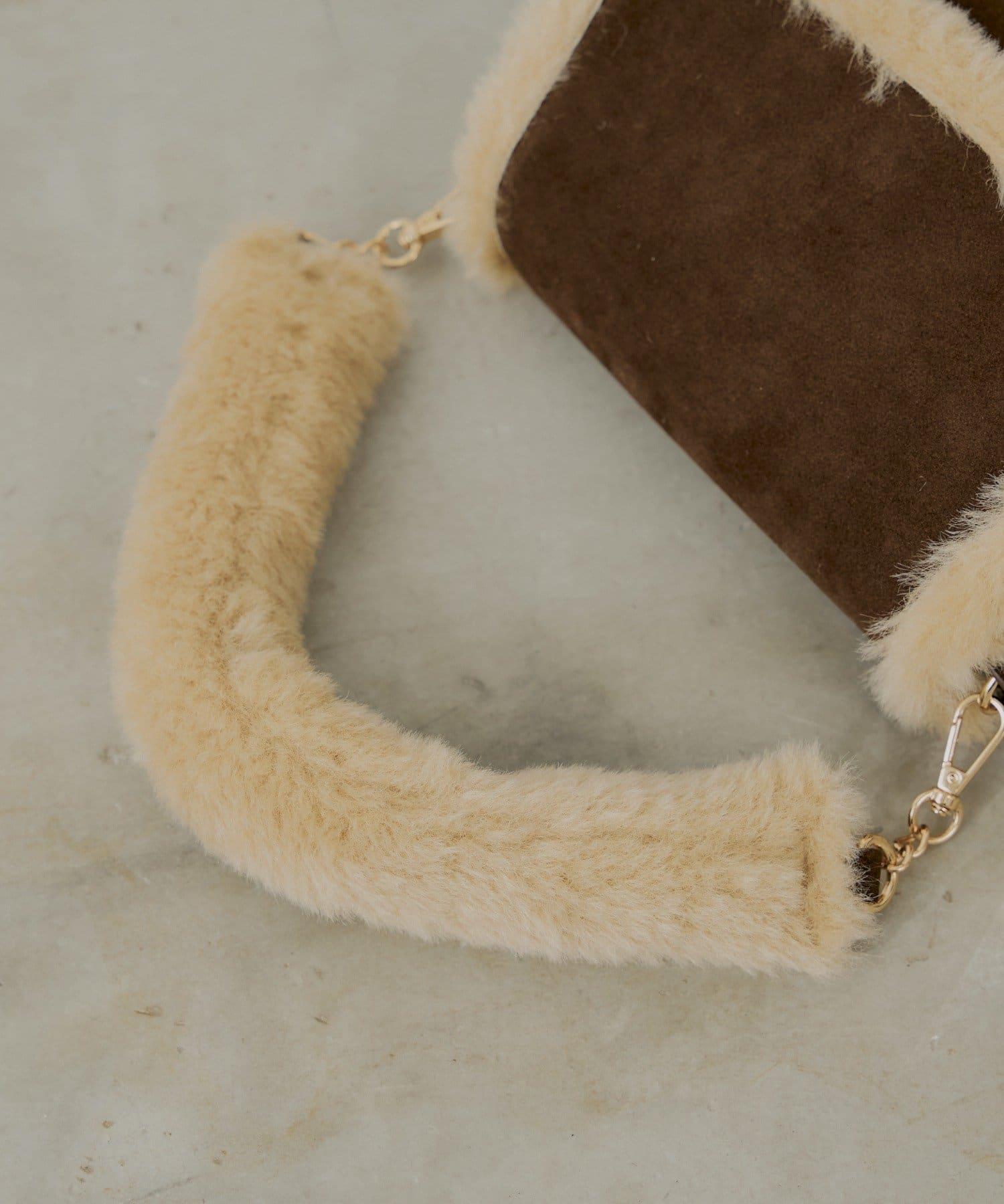 蓬鬆的毛皮手柄和翻蓋為這款手袋增添了協調的亮點。