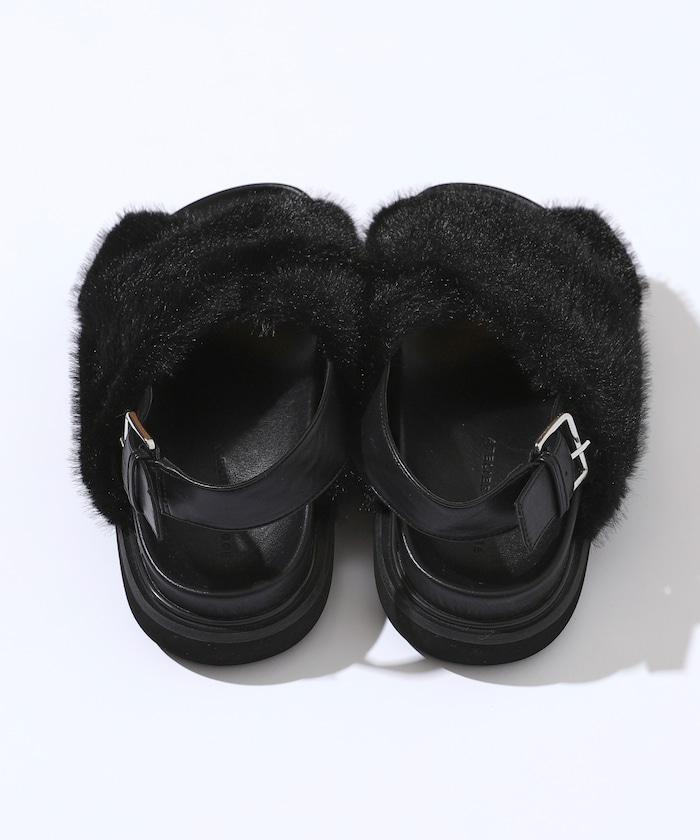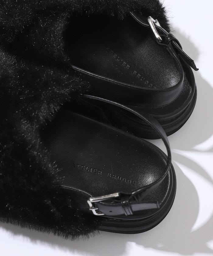 這款腳墊涼鞋的蓬鬆毛皮十分搶眼。