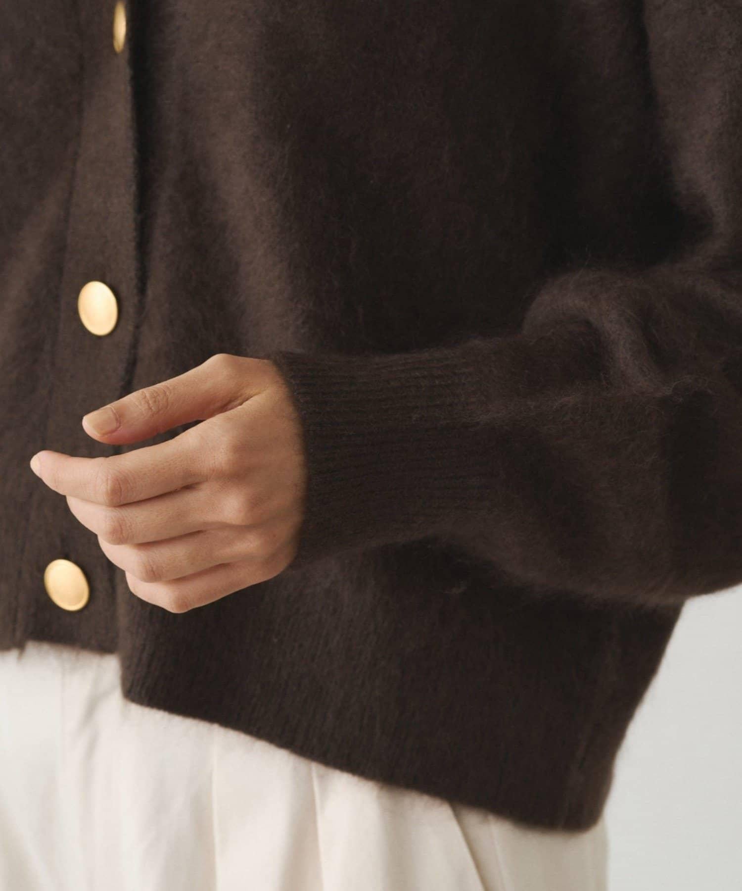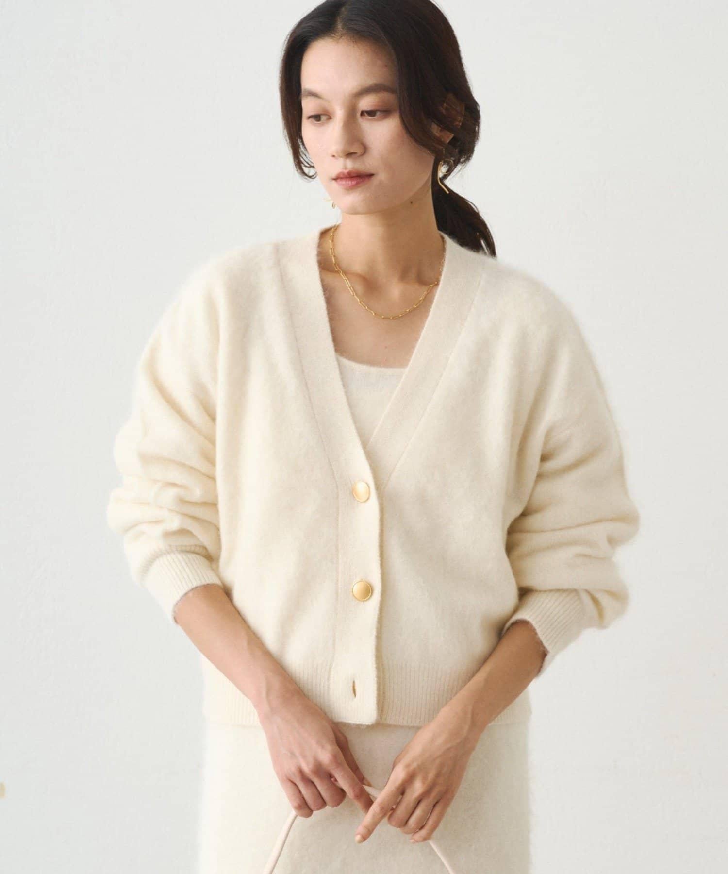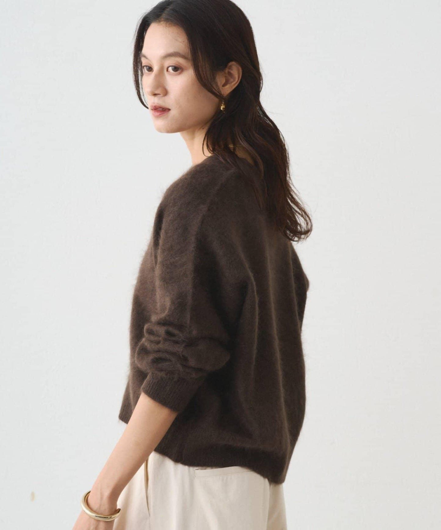 短款開衫,毛茸茸的針織面料,水貂毛處理。