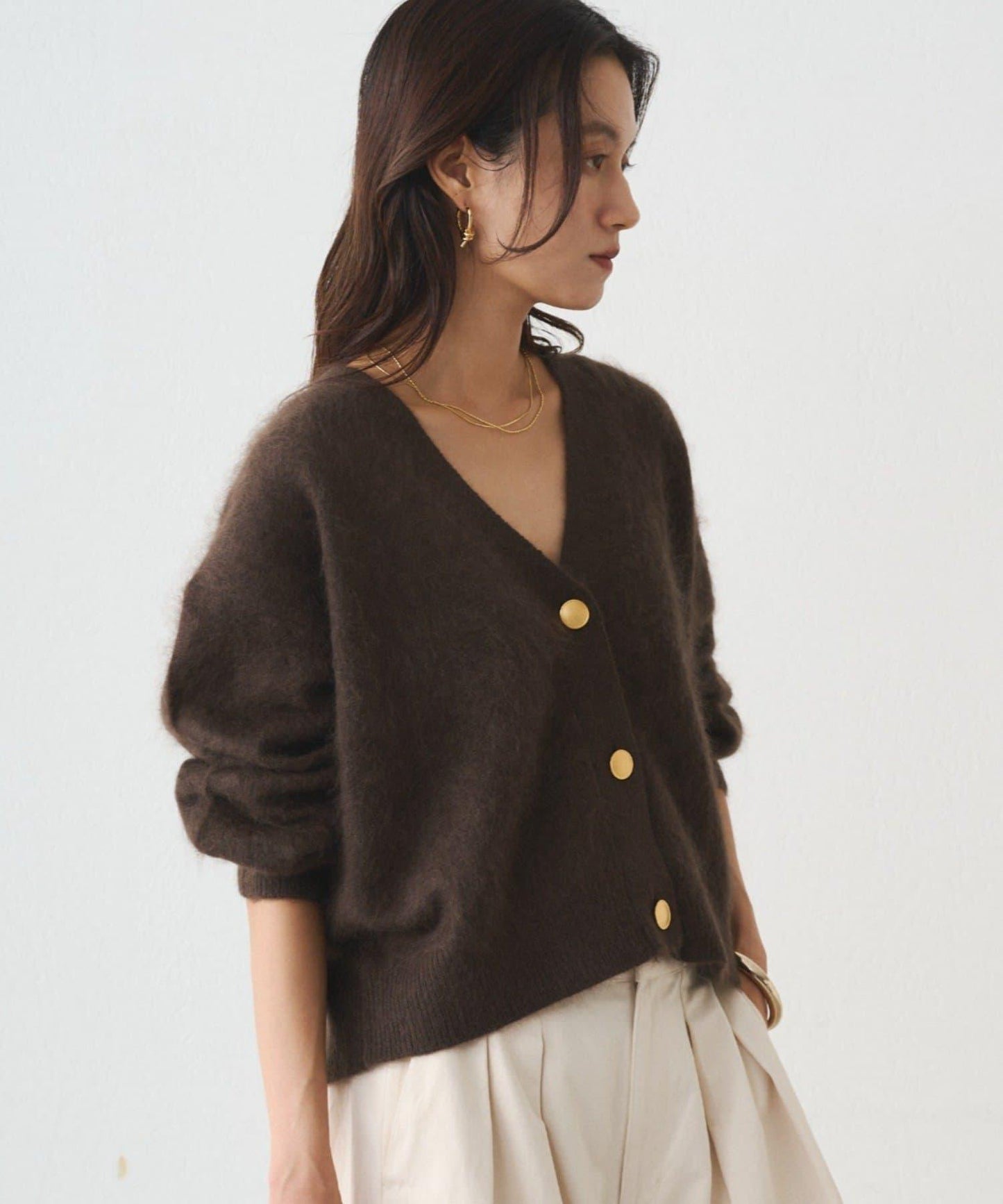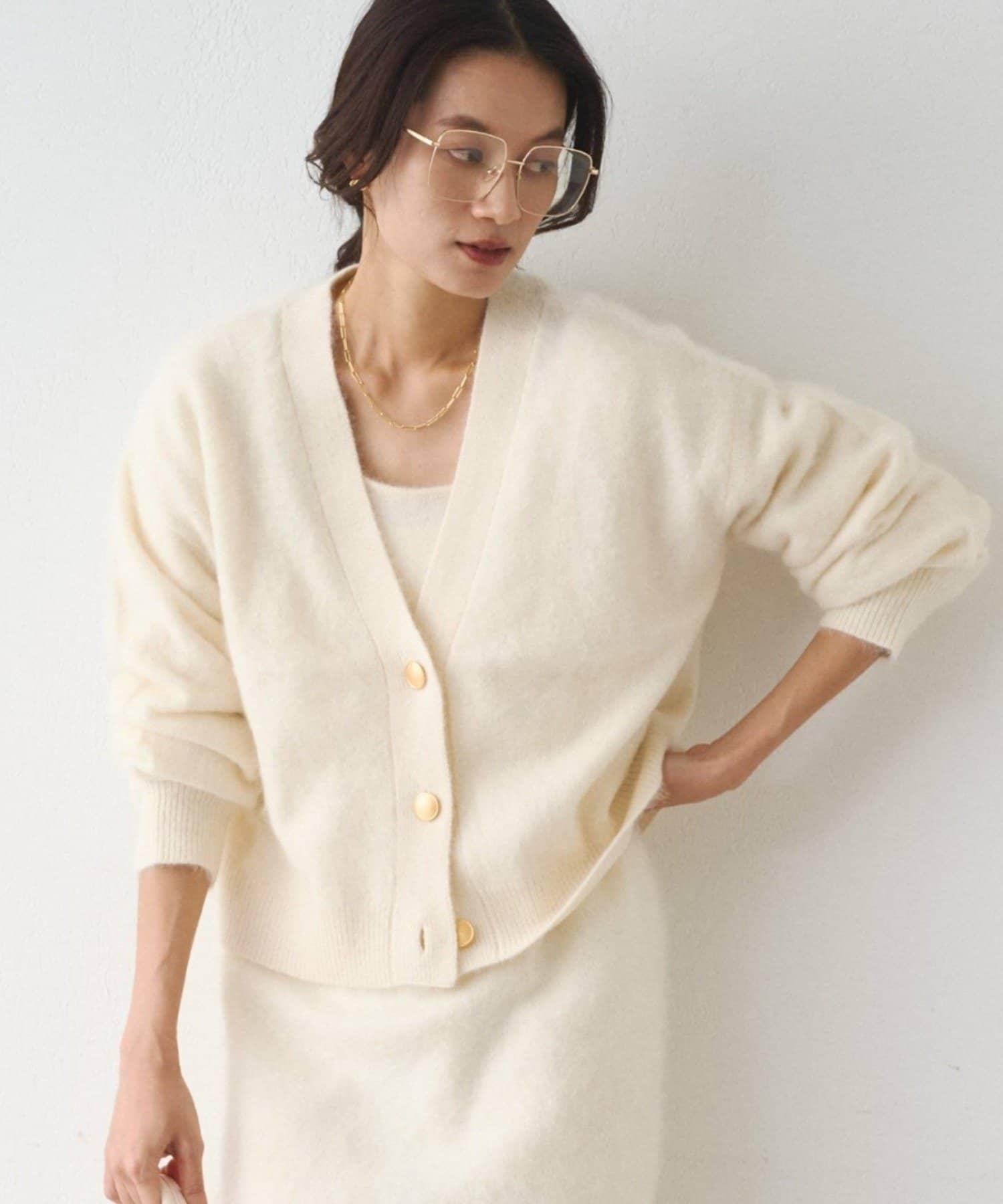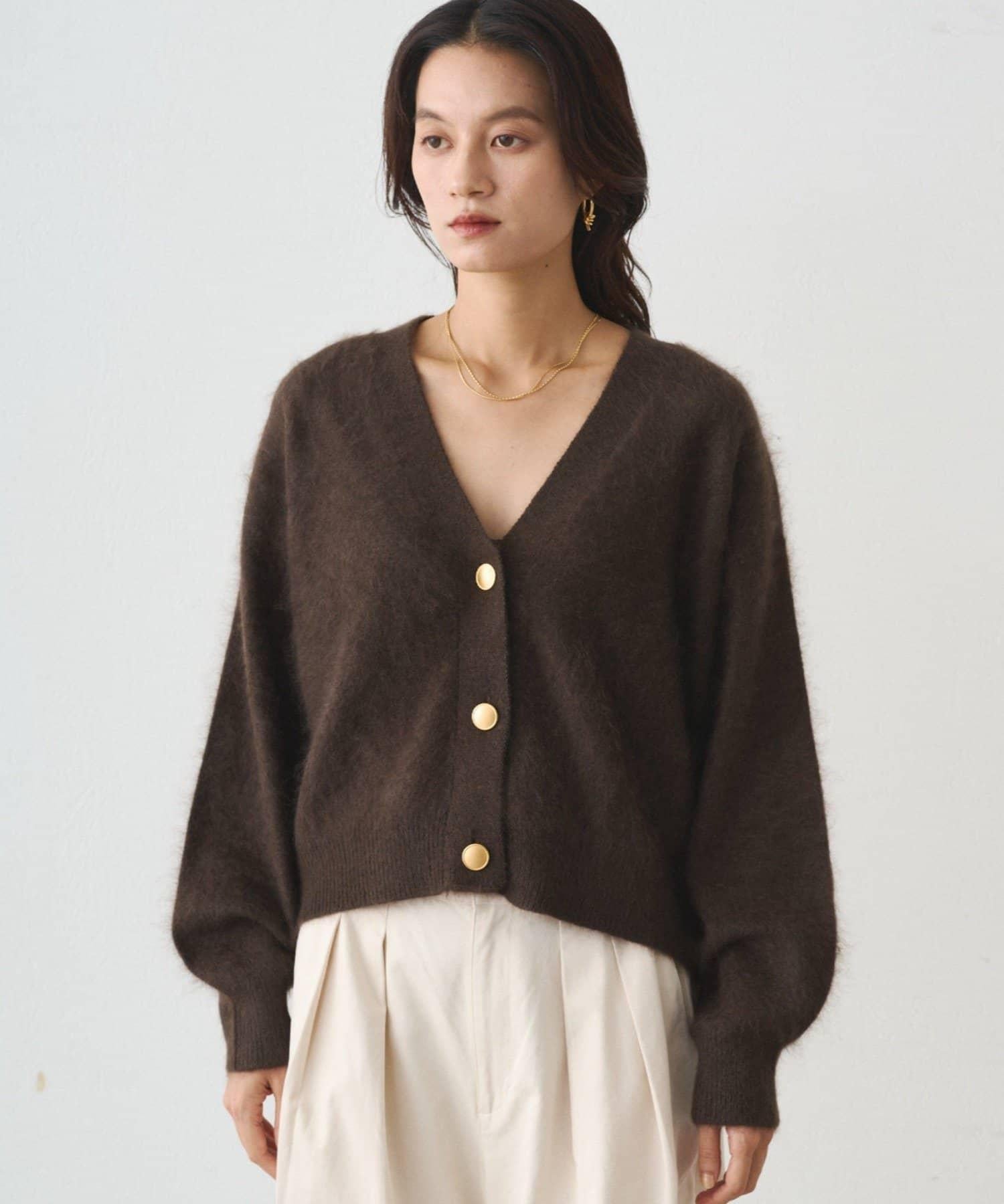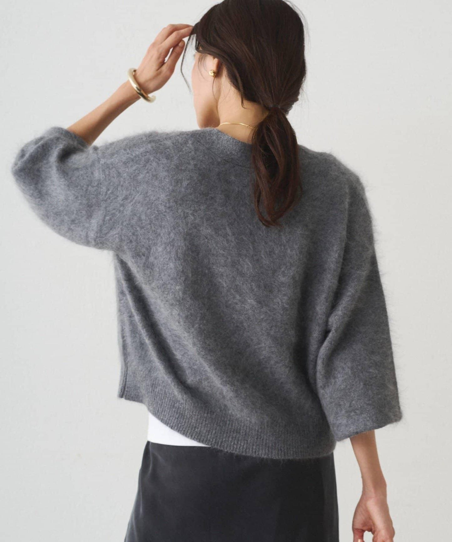 短款開衫,毛茸茸的針織面料,水貂毛處理。