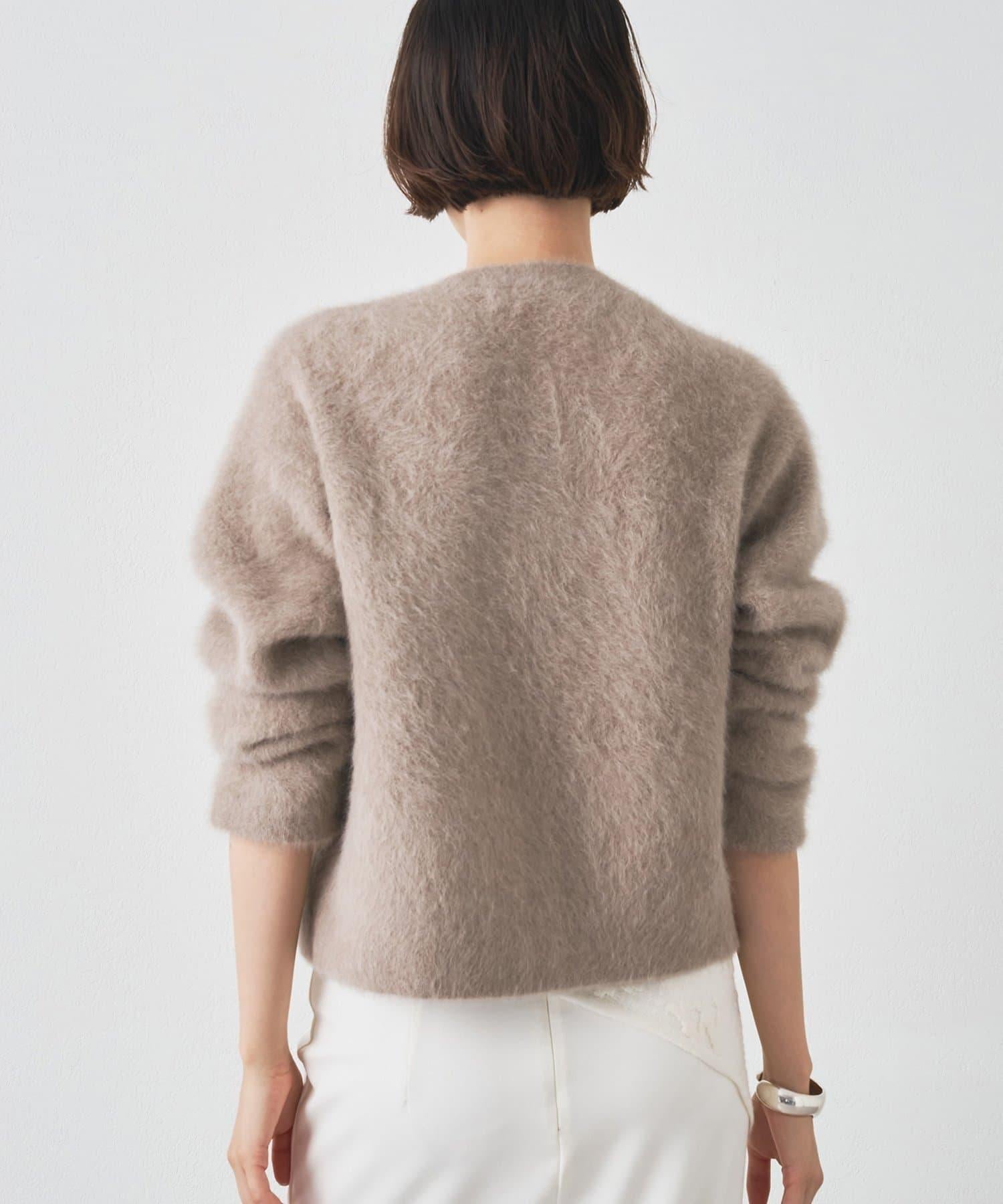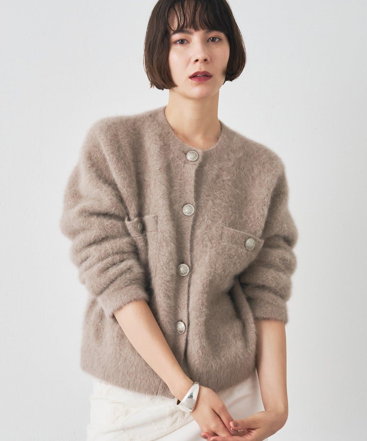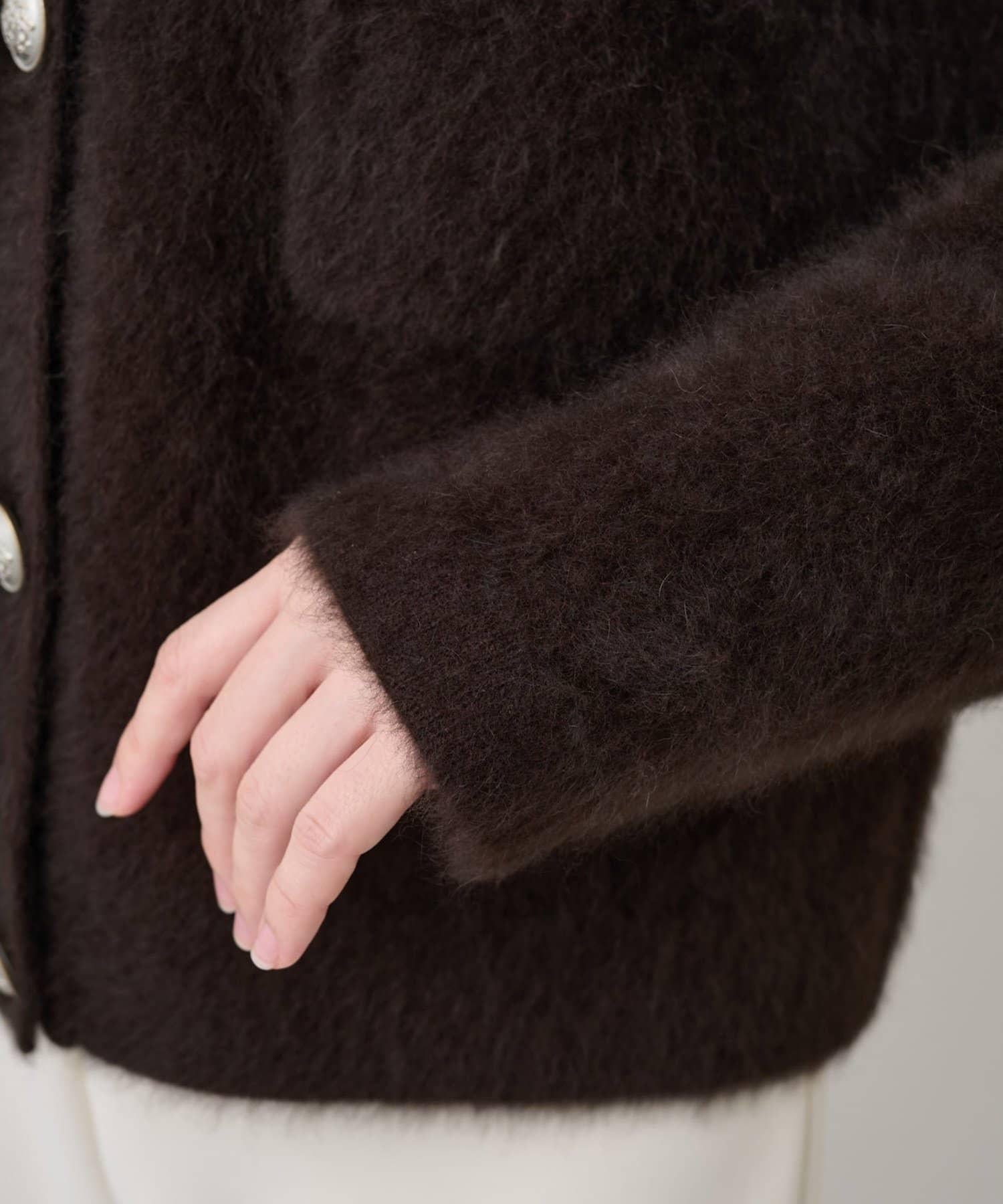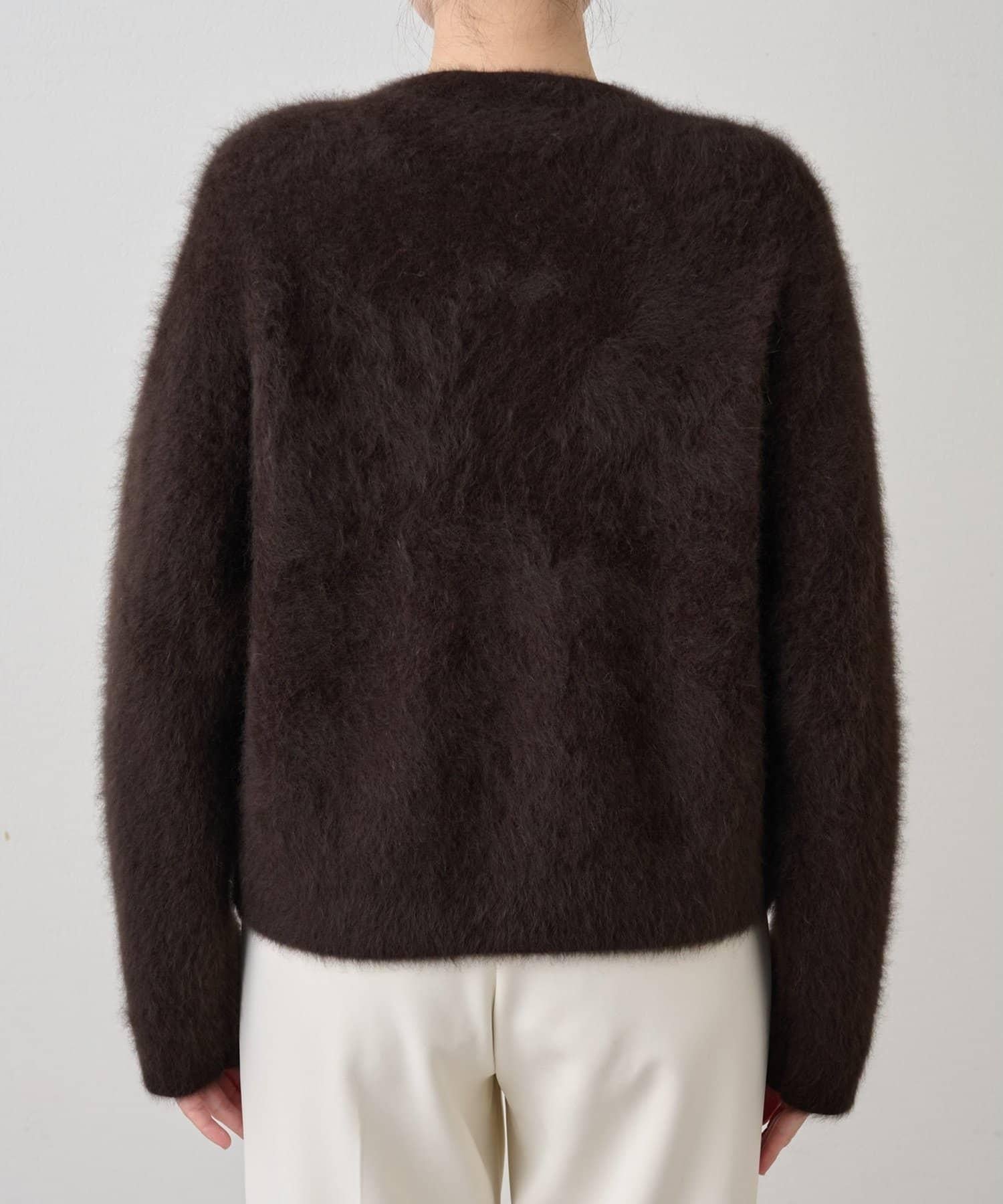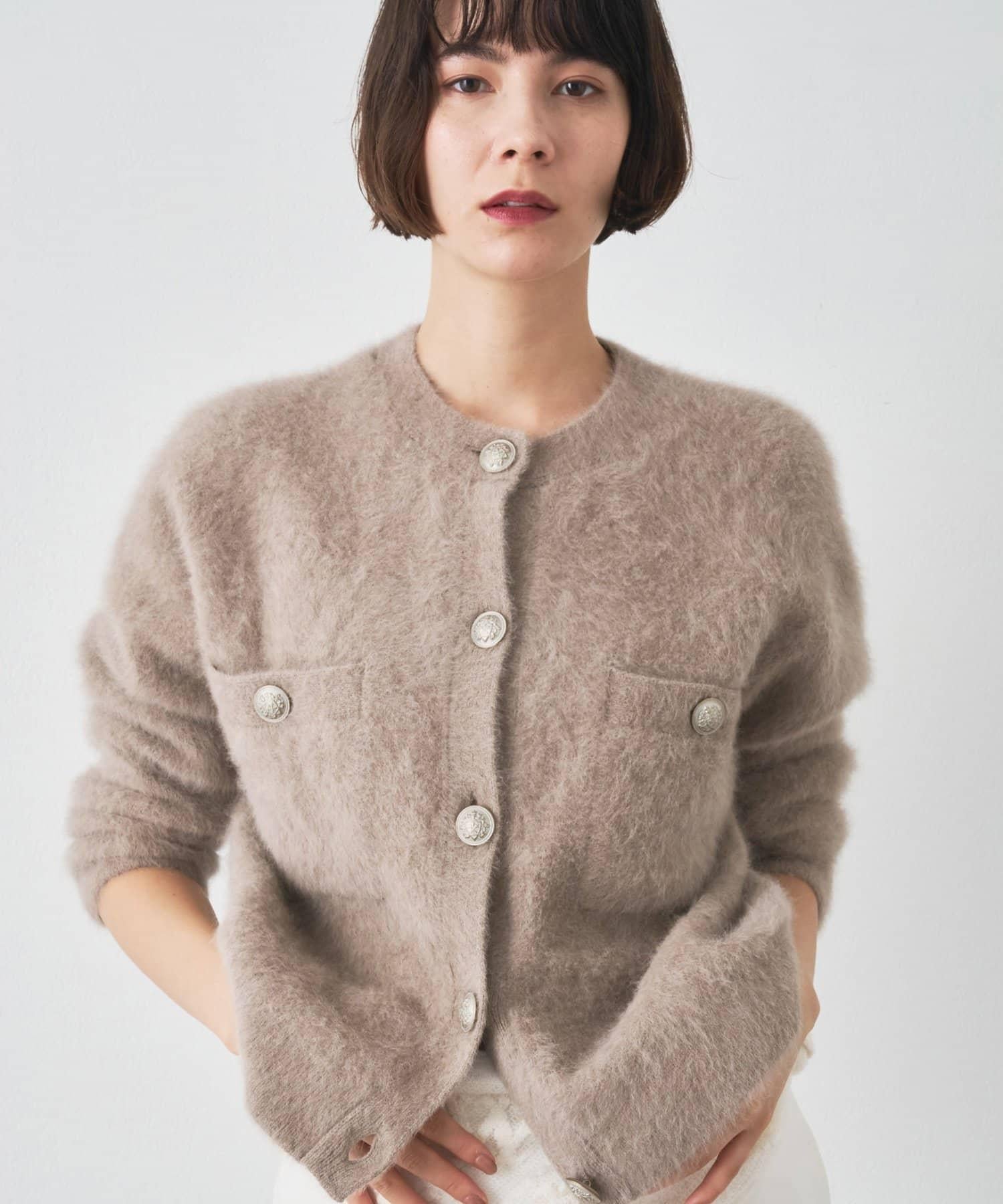 這款針織開衫具有蓬鬆的毛皮質感。