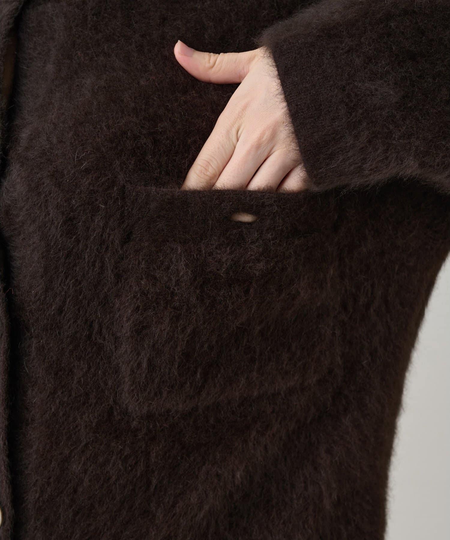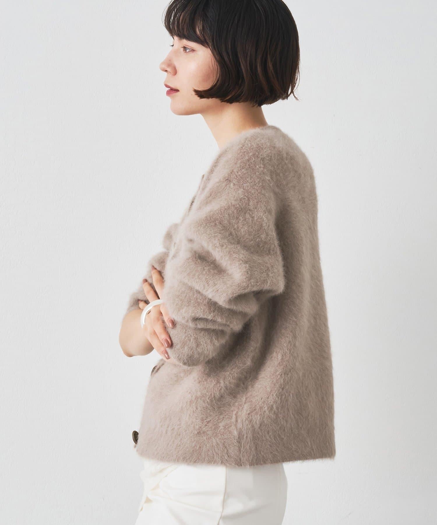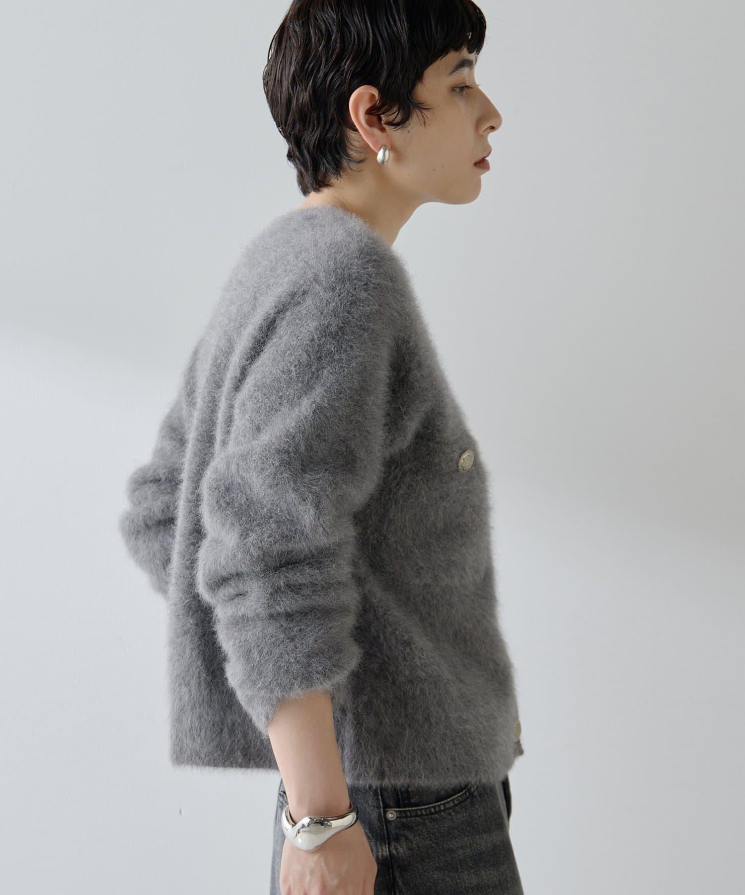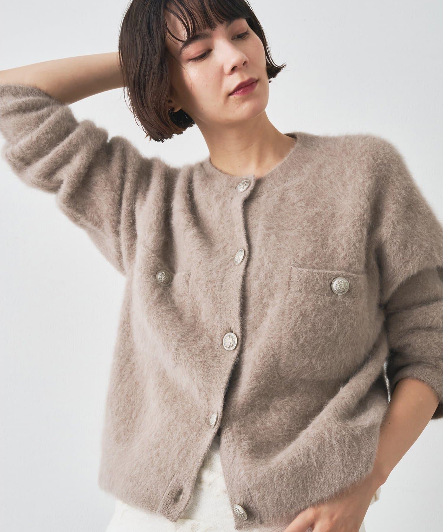這款針織開衫具有蓬鬆的毛皮質感。