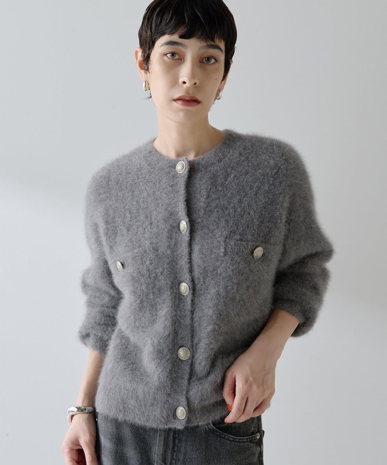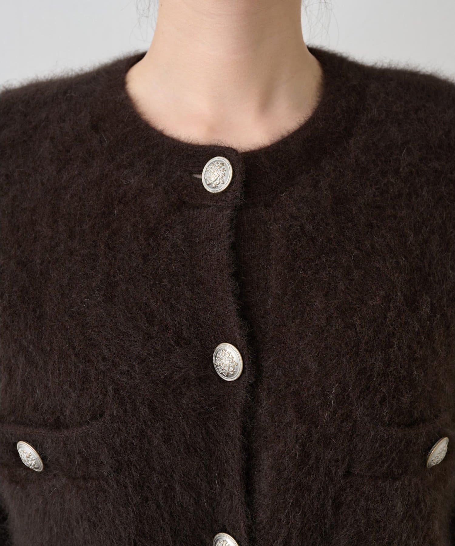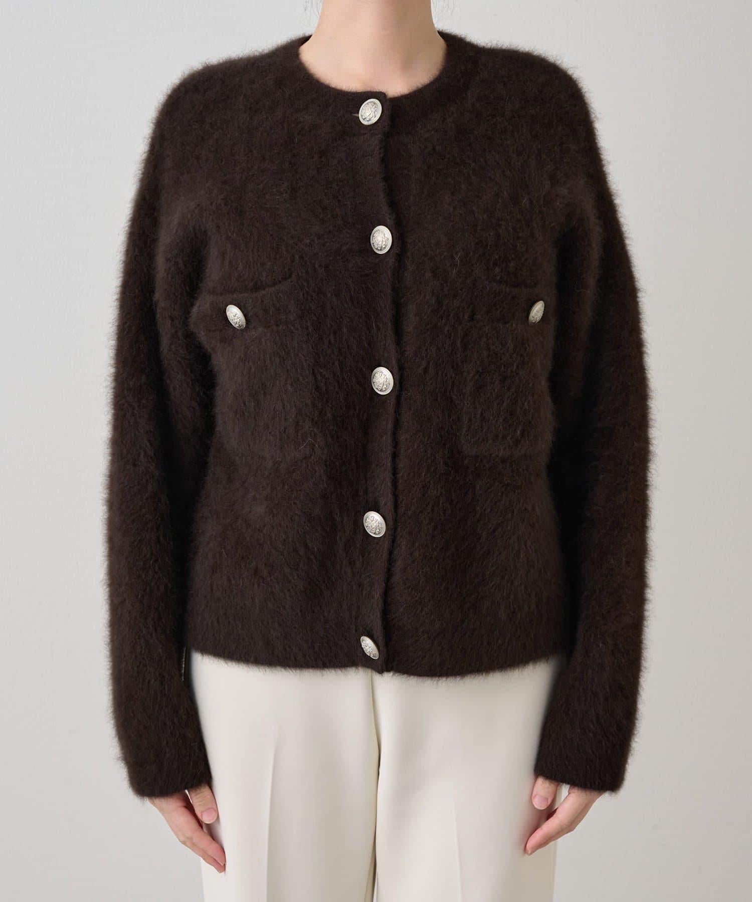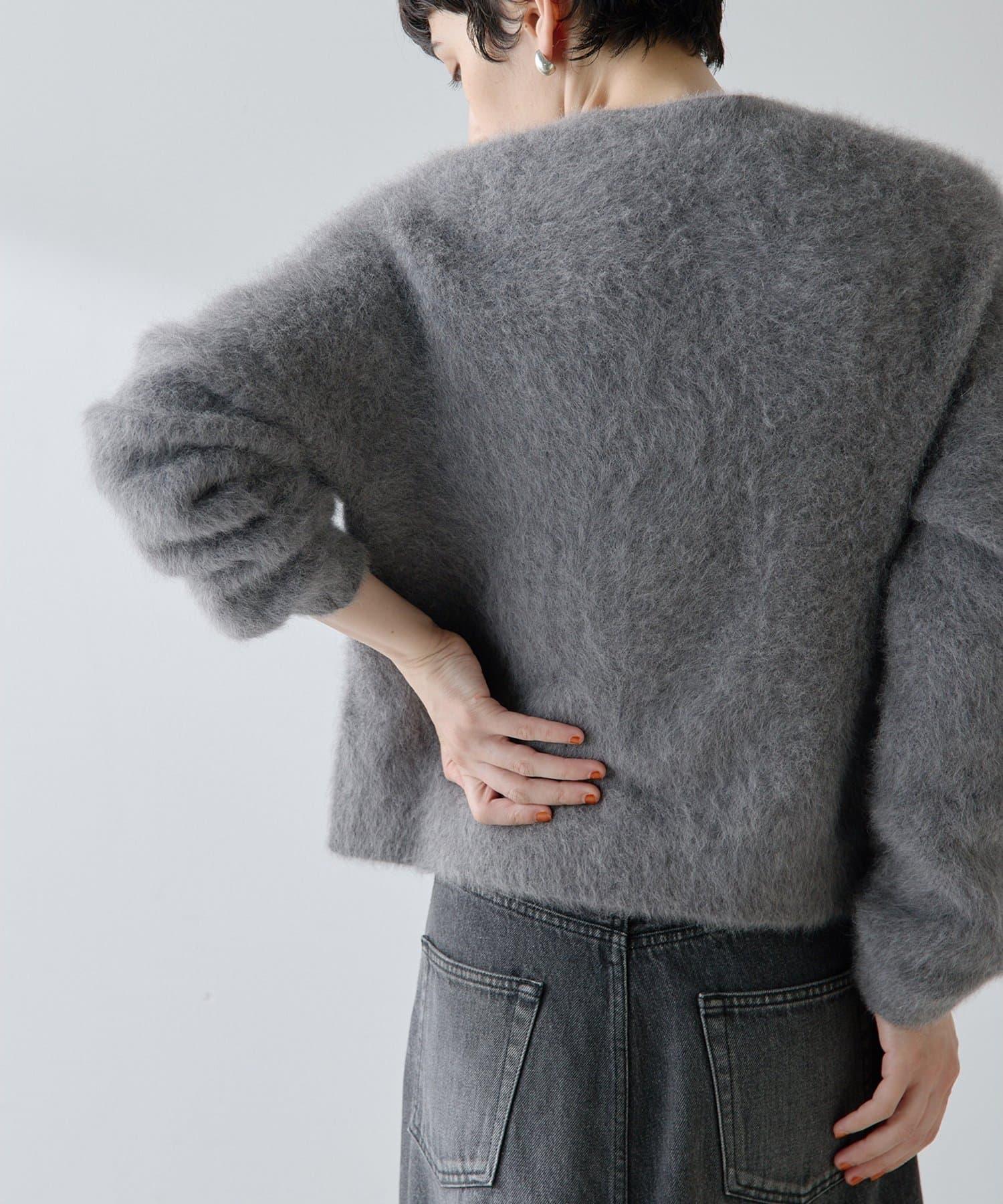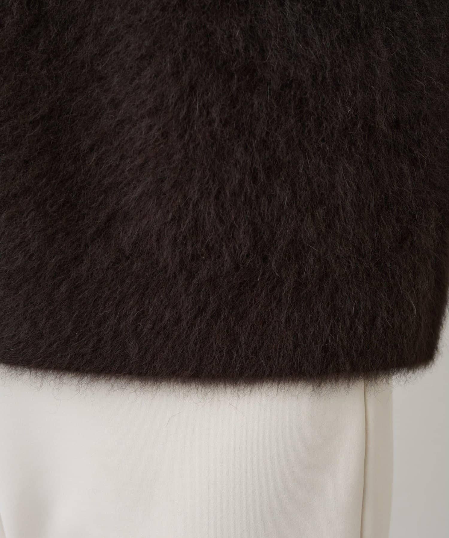 這款針織開衫具有蓬鬆的毛皮質感。
