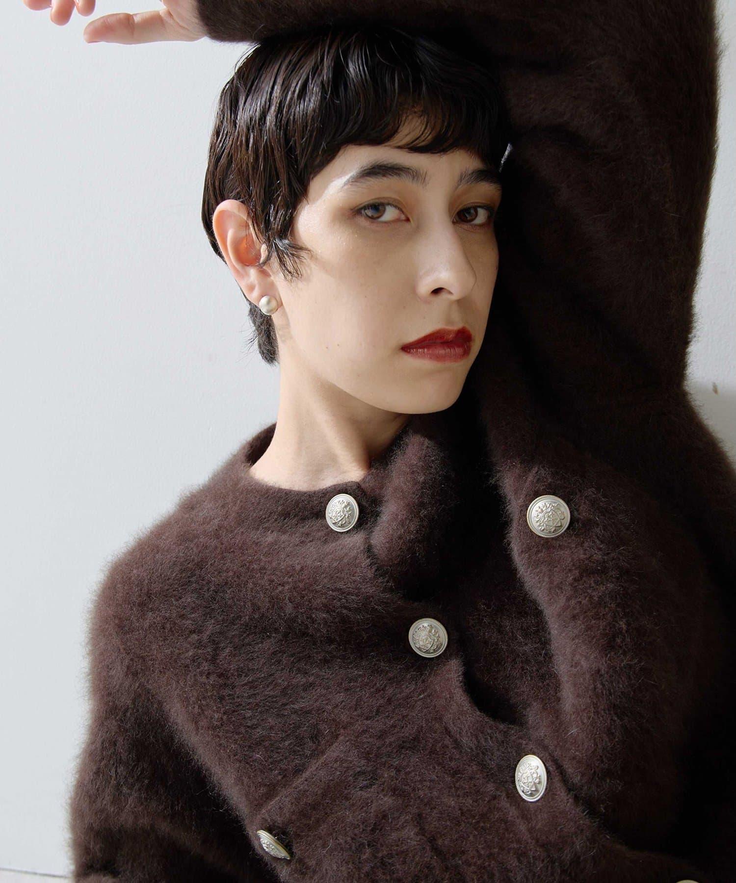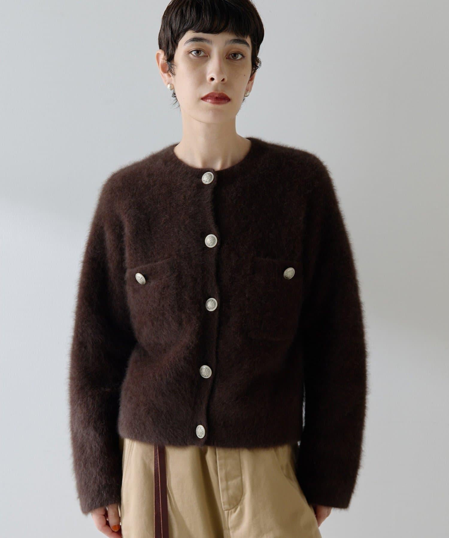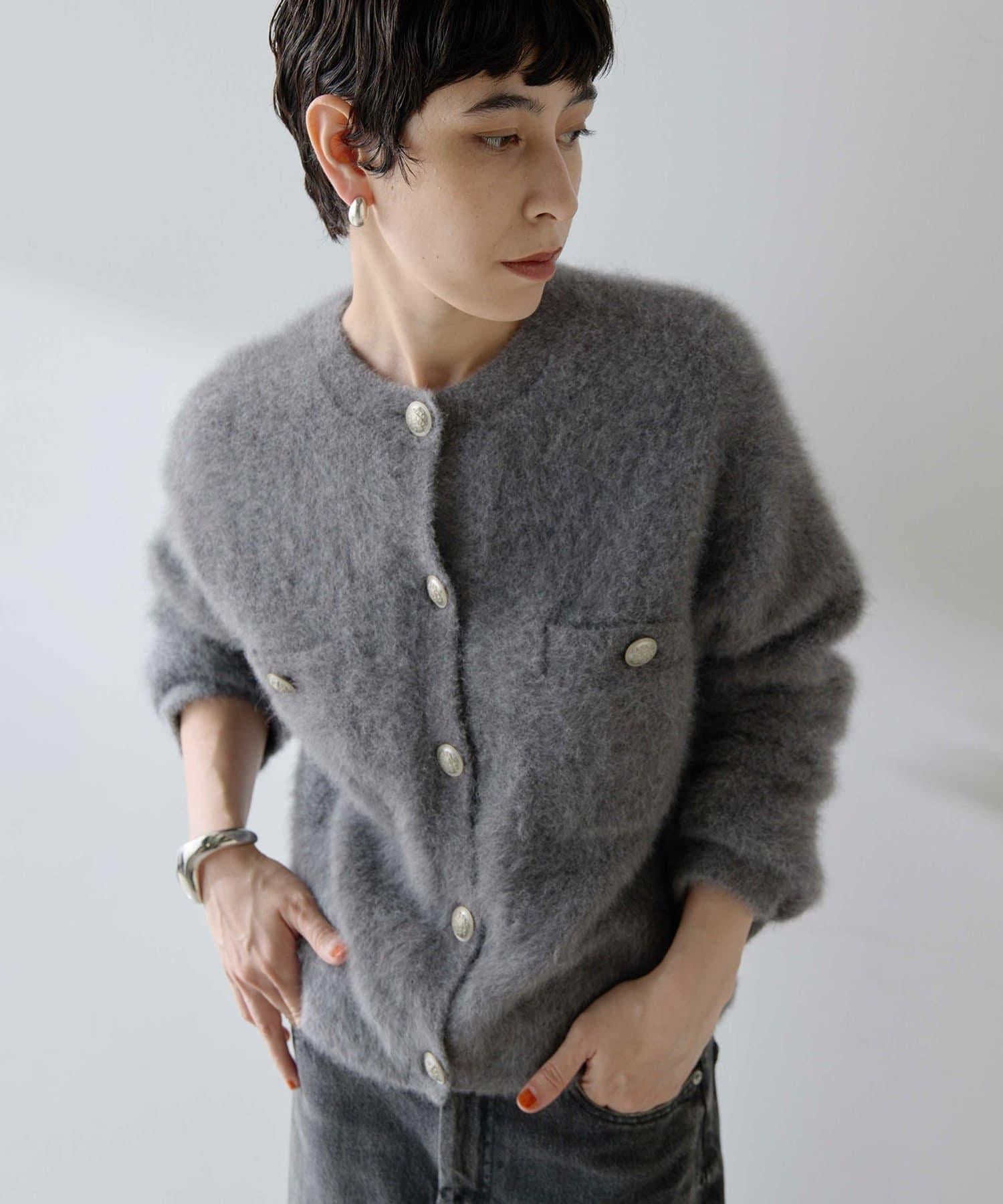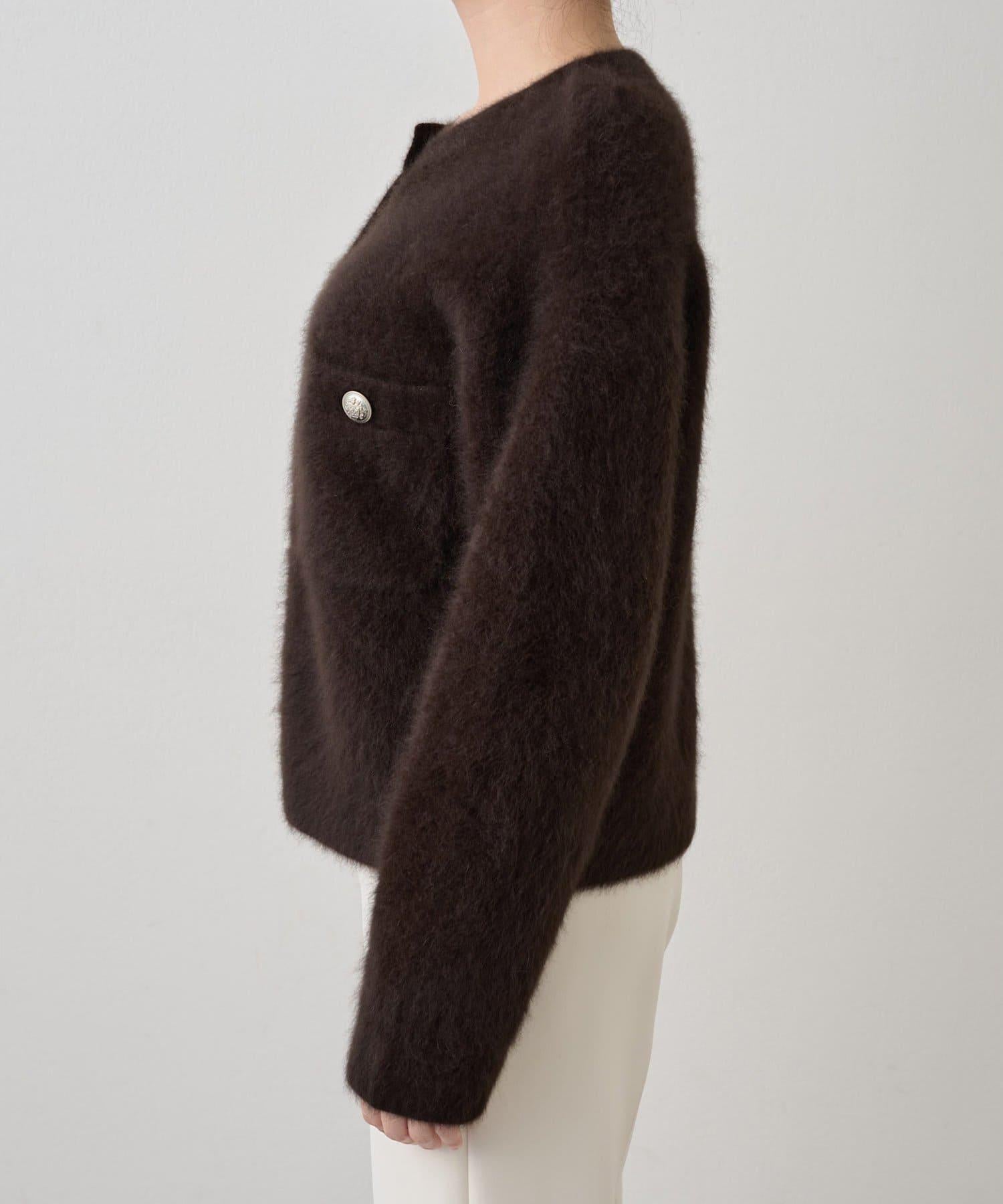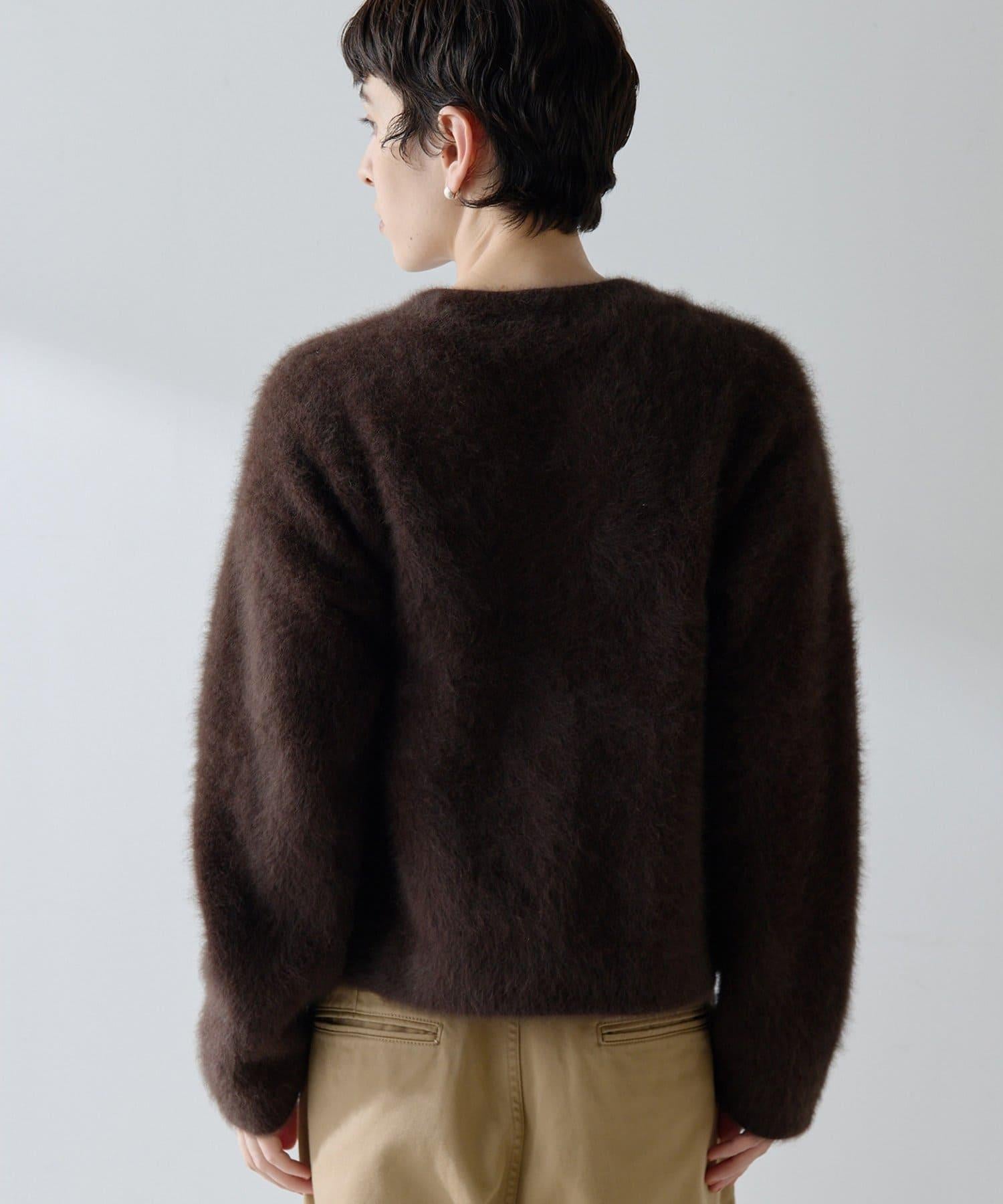 這款針織開衫具有蓬鬆的毛皮質感。