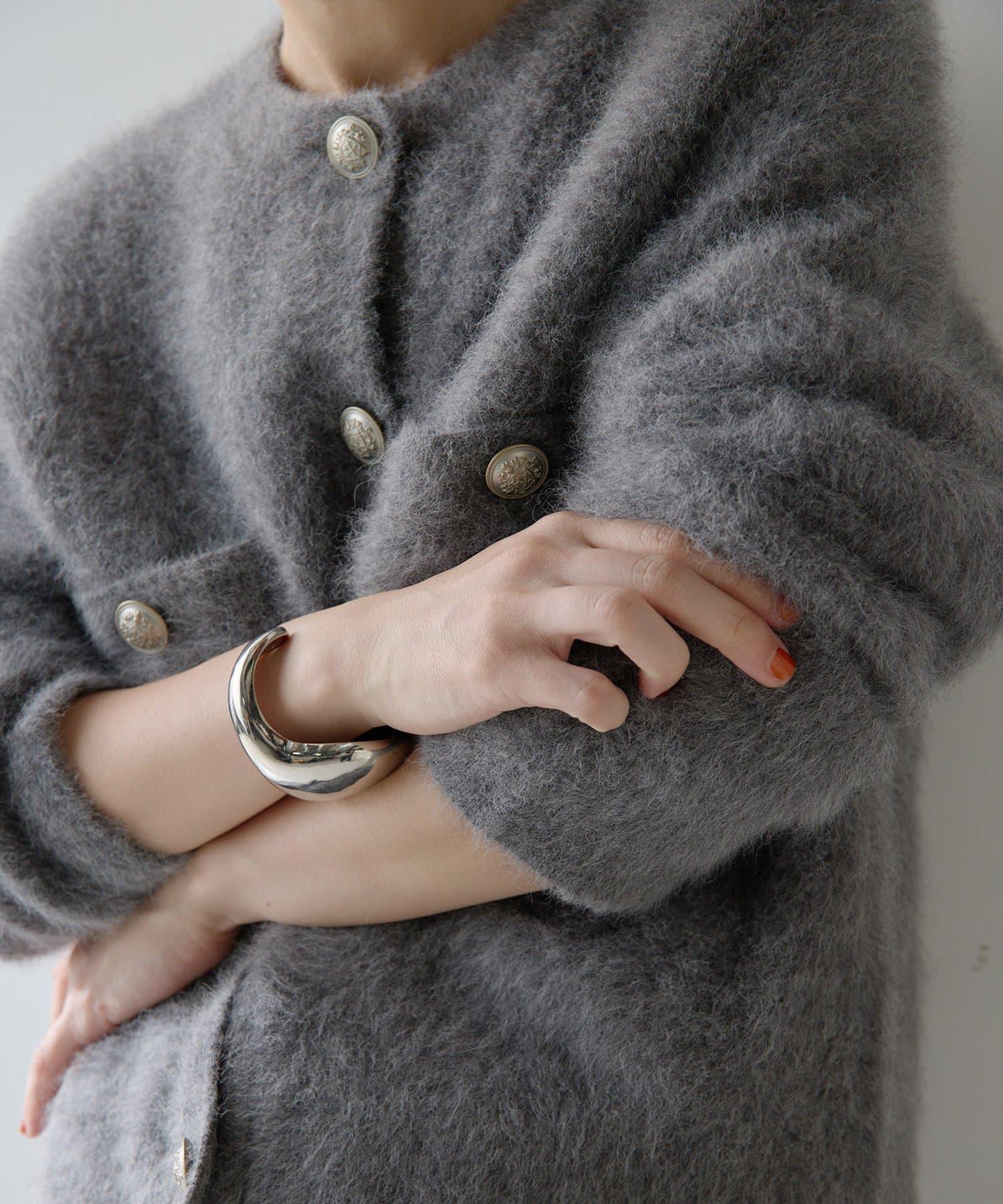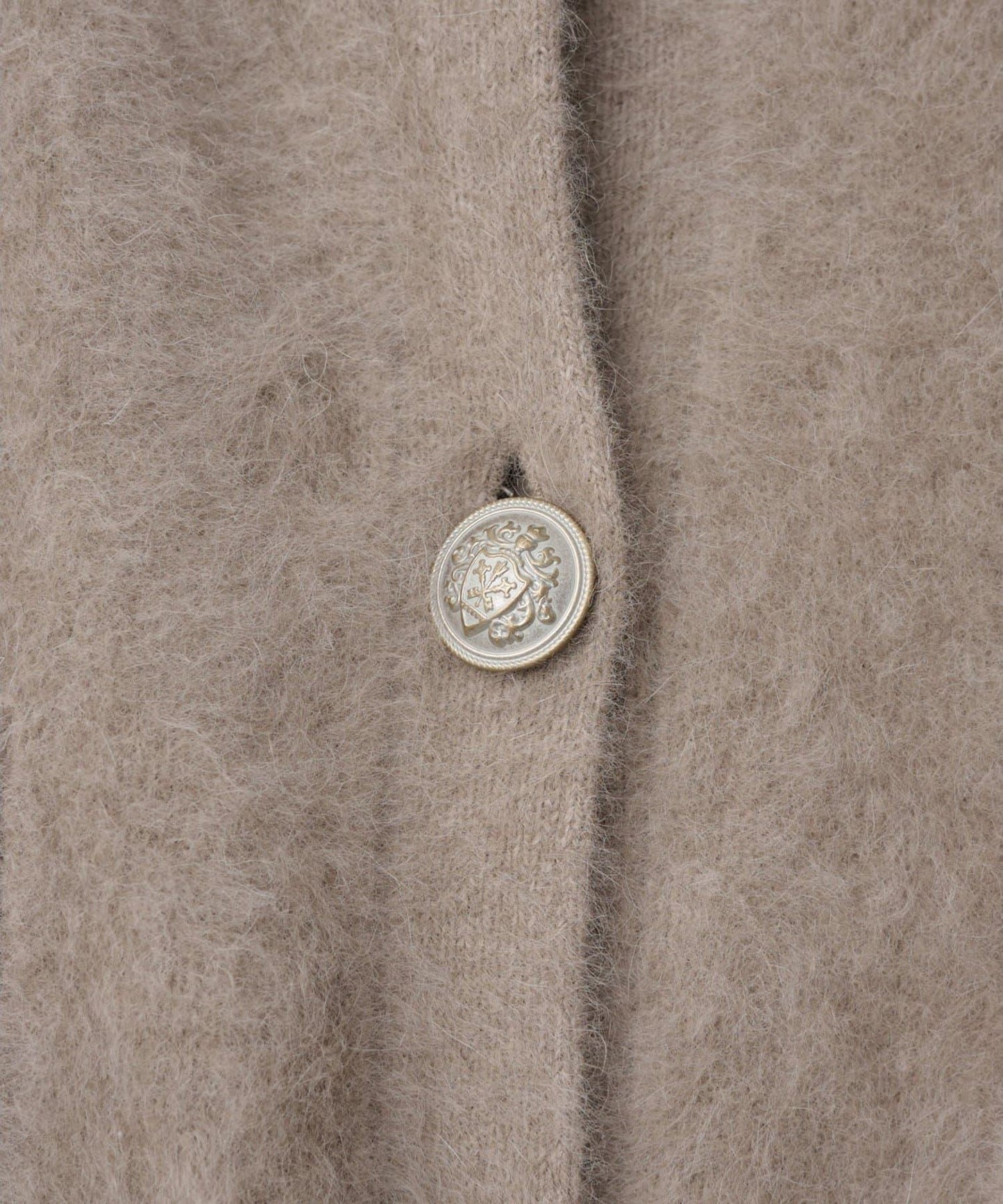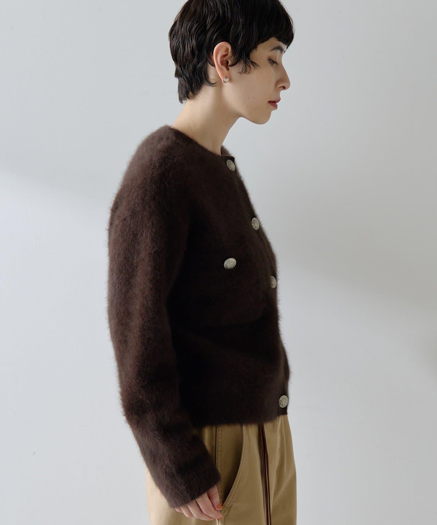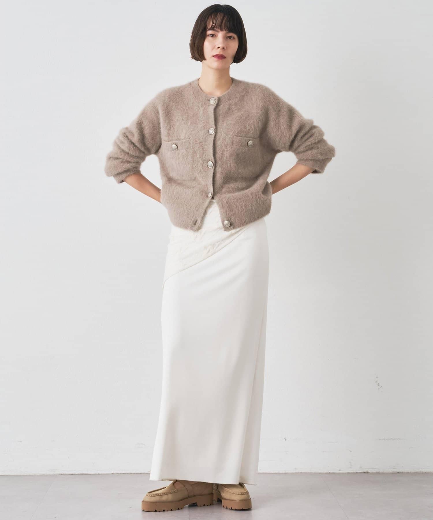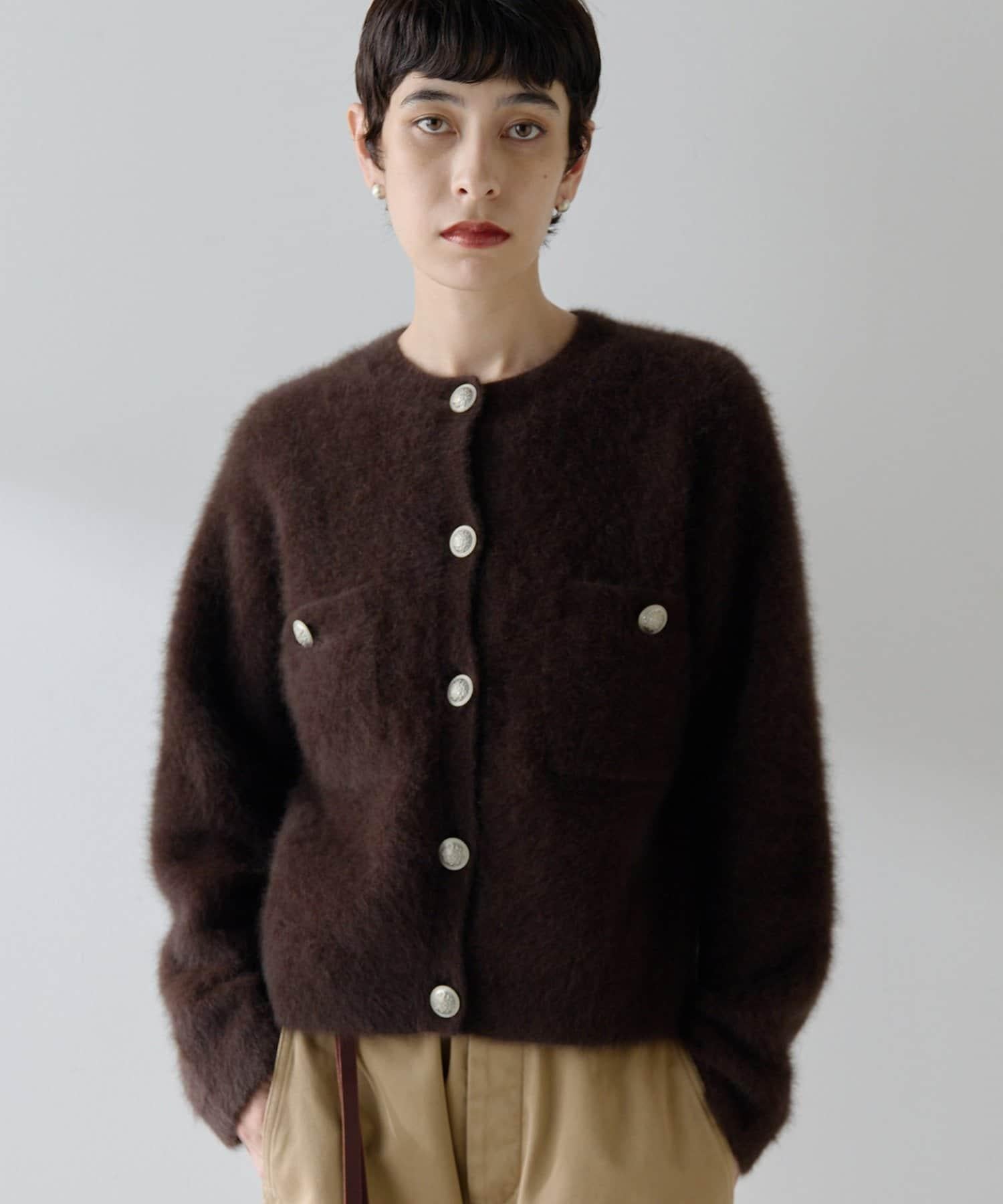 這款針織開衫具有蓬鬆的毛皮質感。