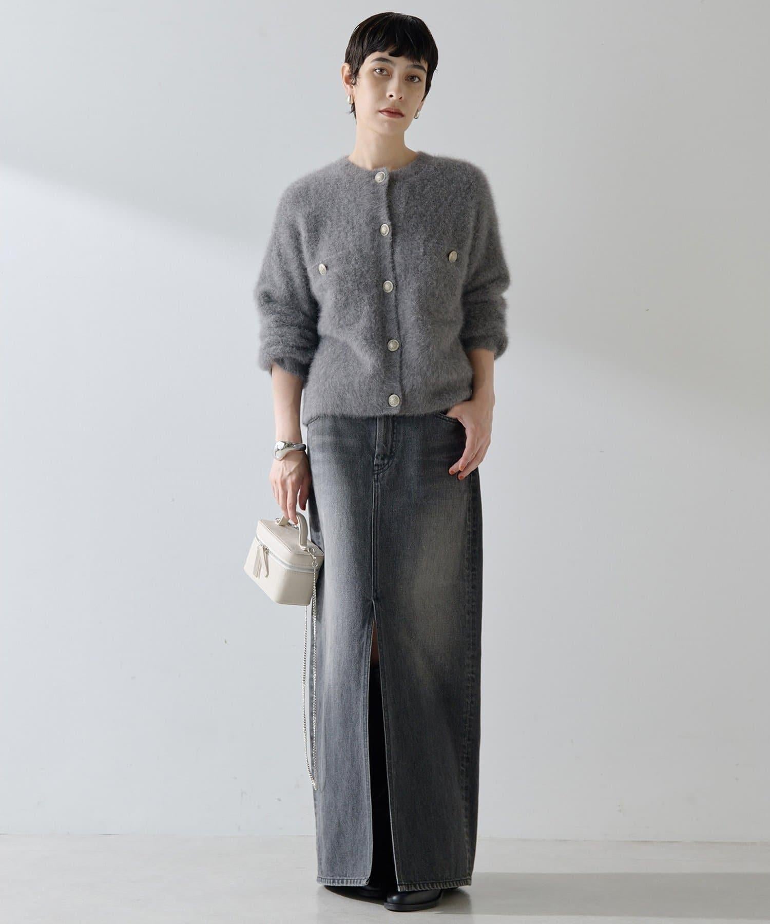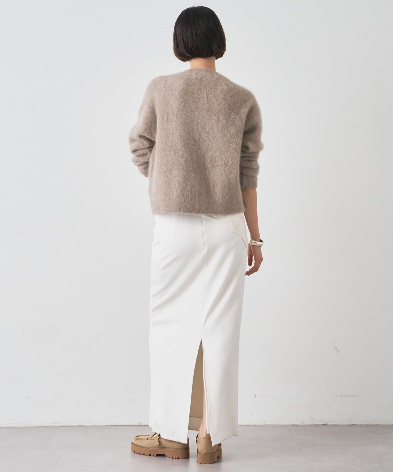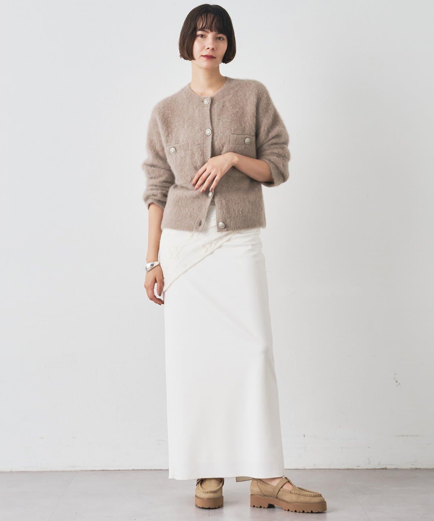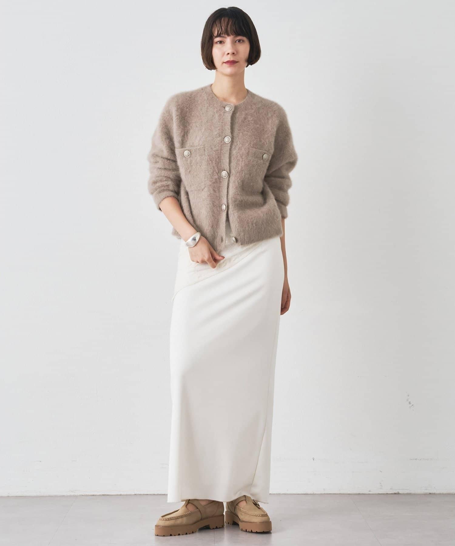 這款針織開衫具有蓬鬆的毛皮質感。