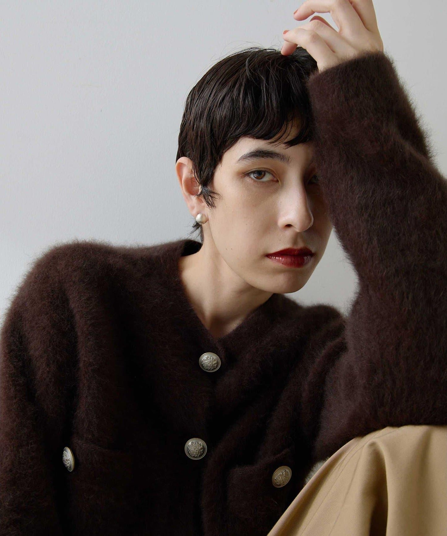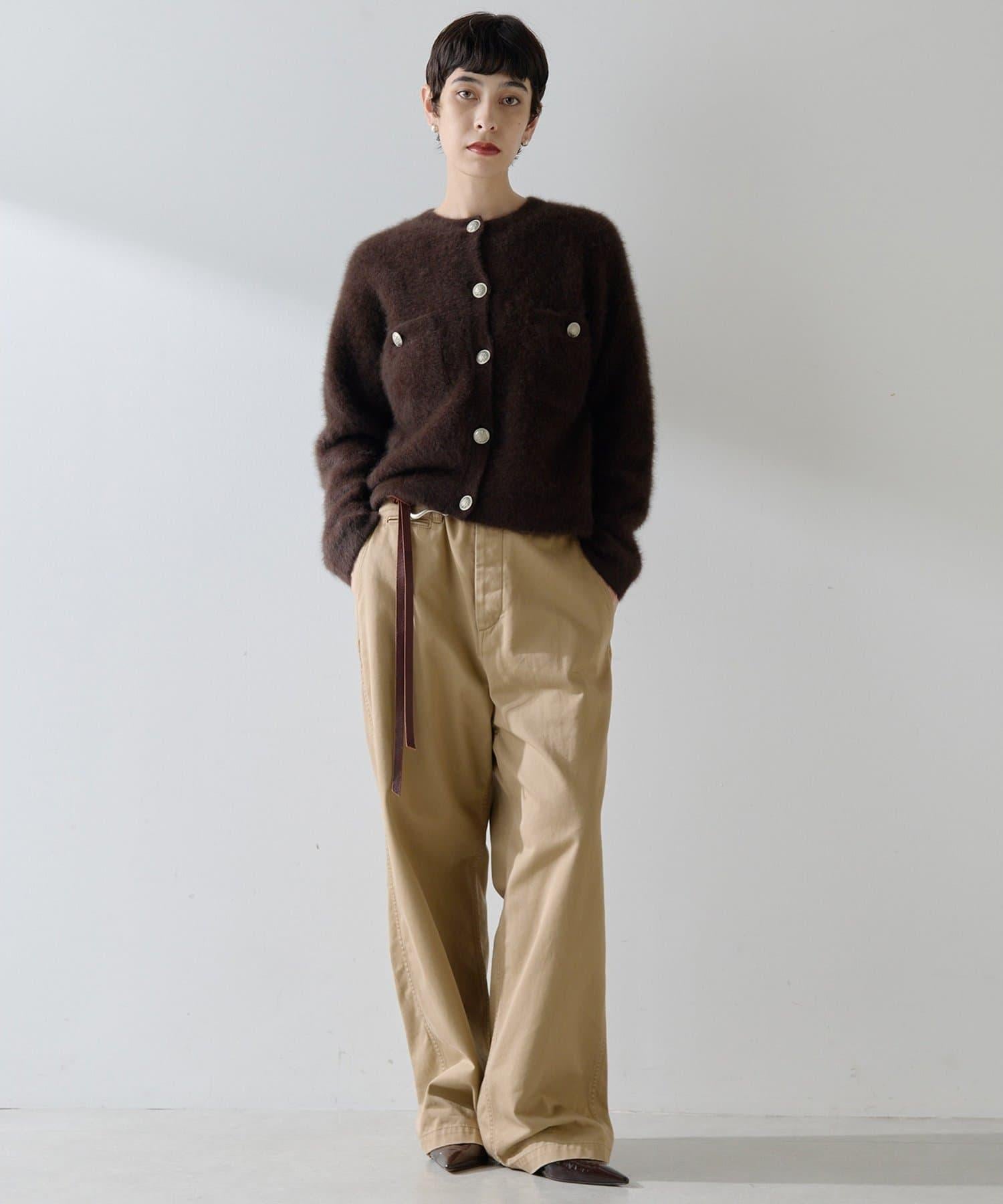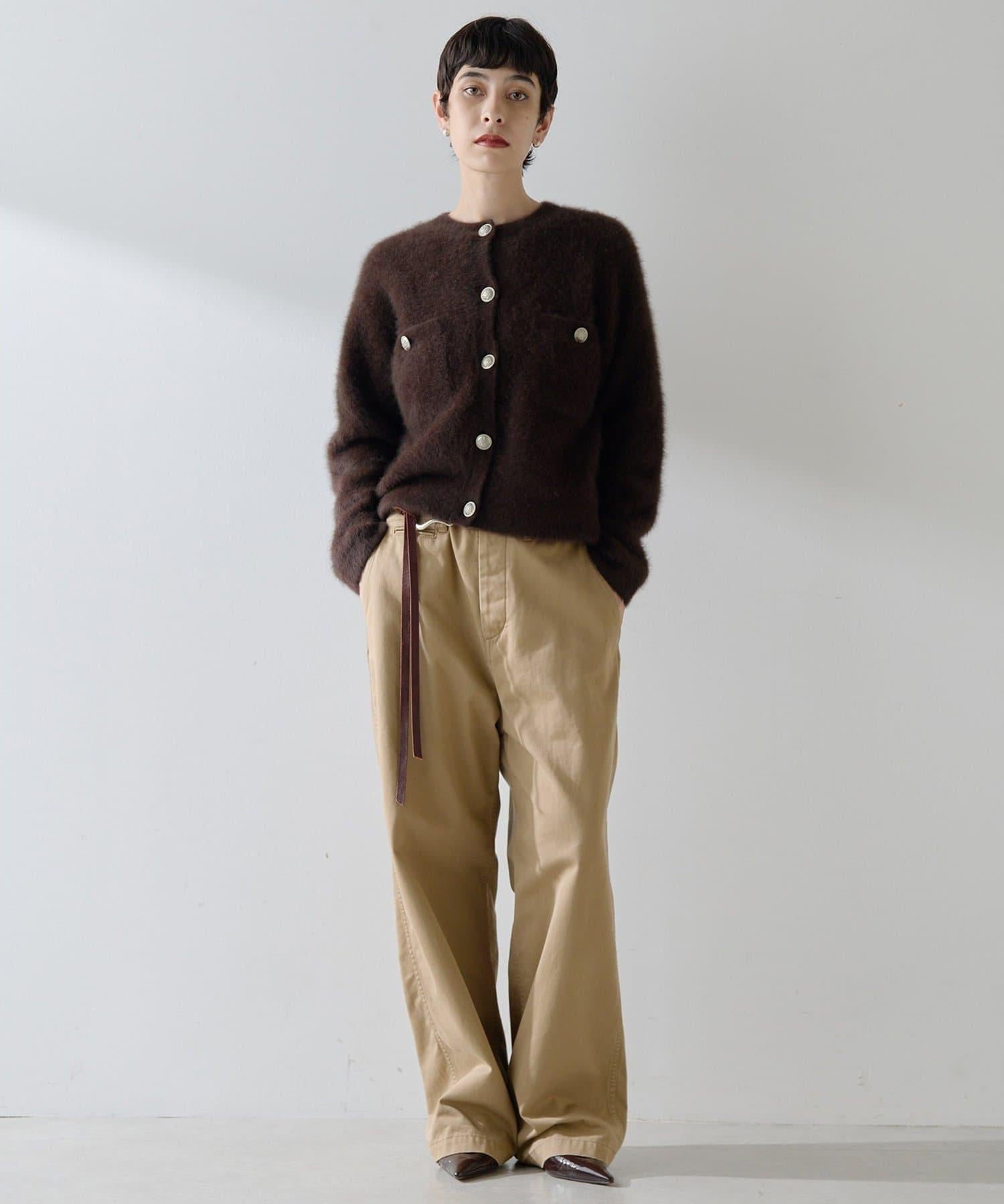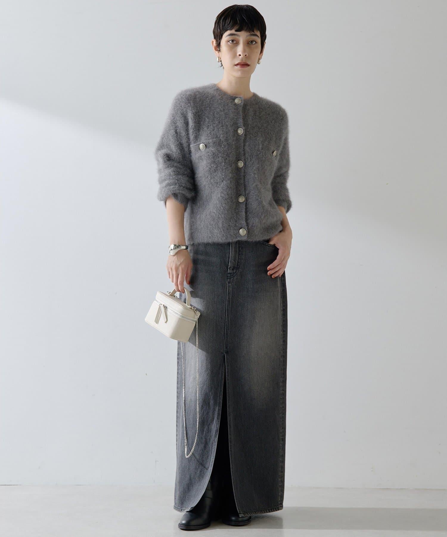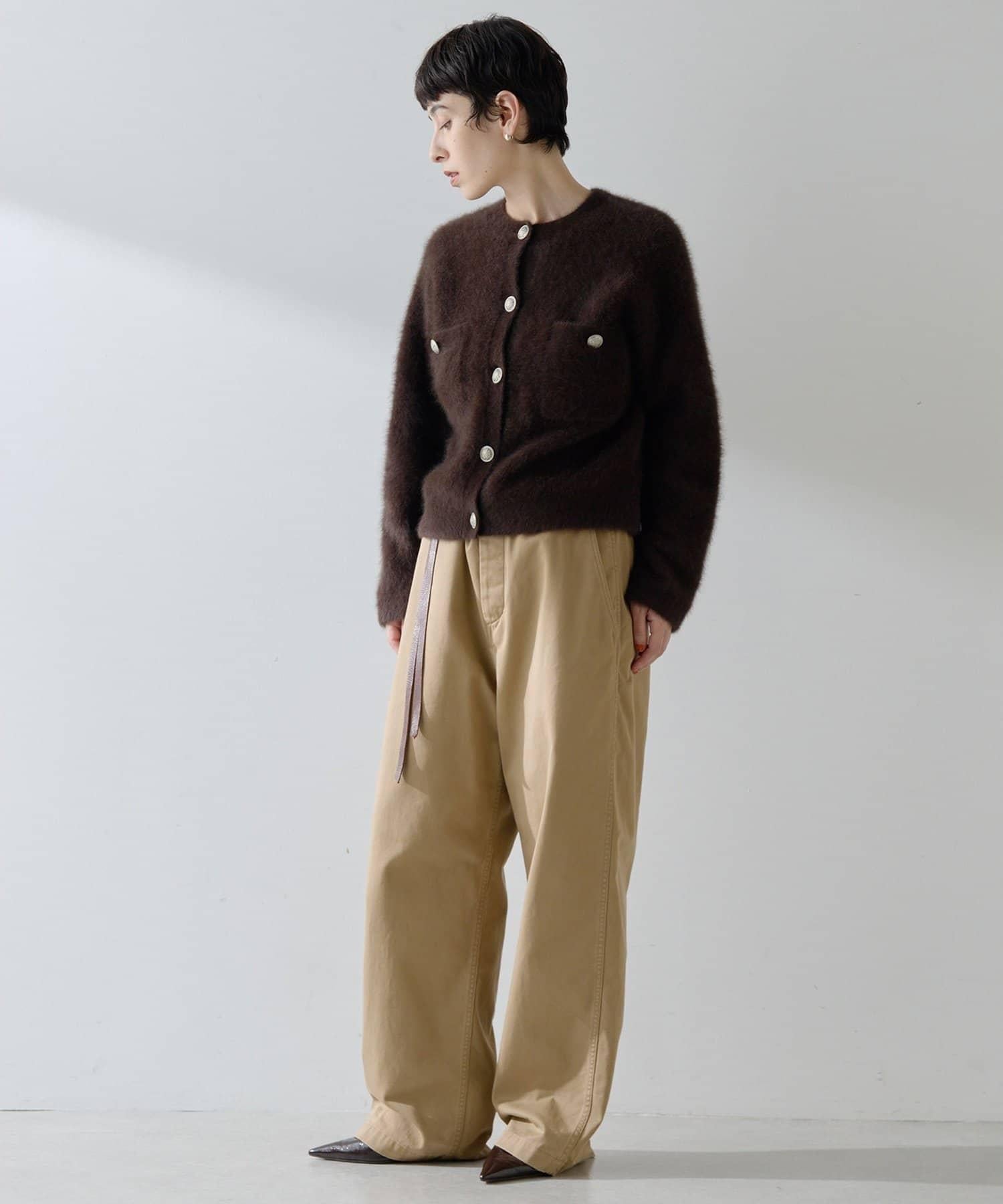 這款針織開衫具有蓬鬆的毛皮質感。