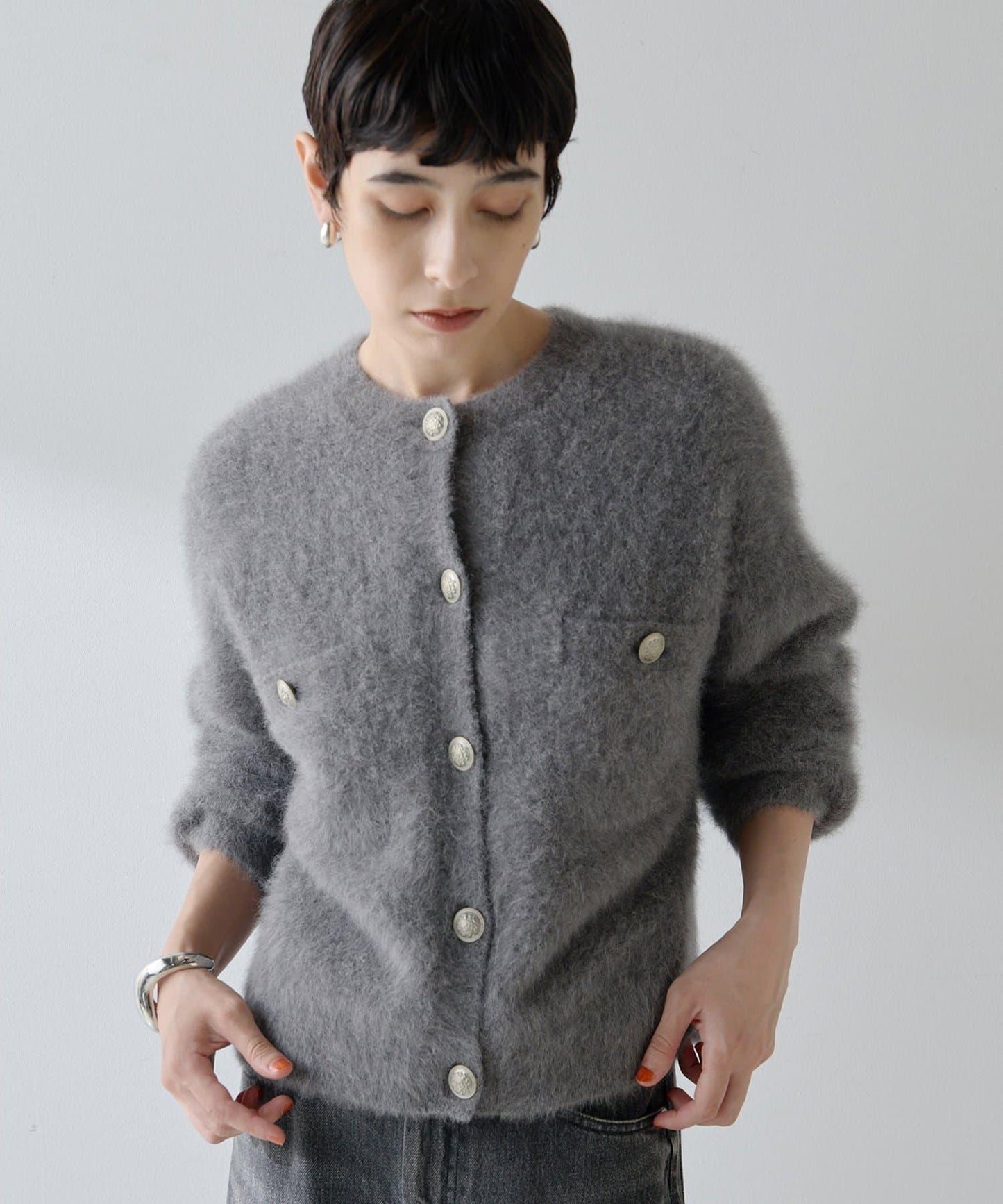 小巧的長度可以搭配任何下裝設計,扣上紐扣後還可以作為套頭衫穿著。