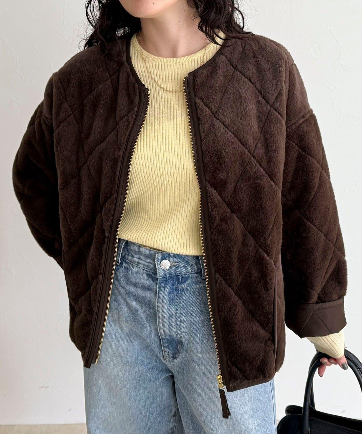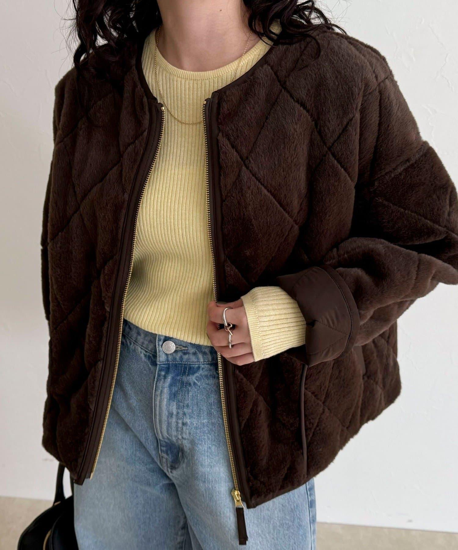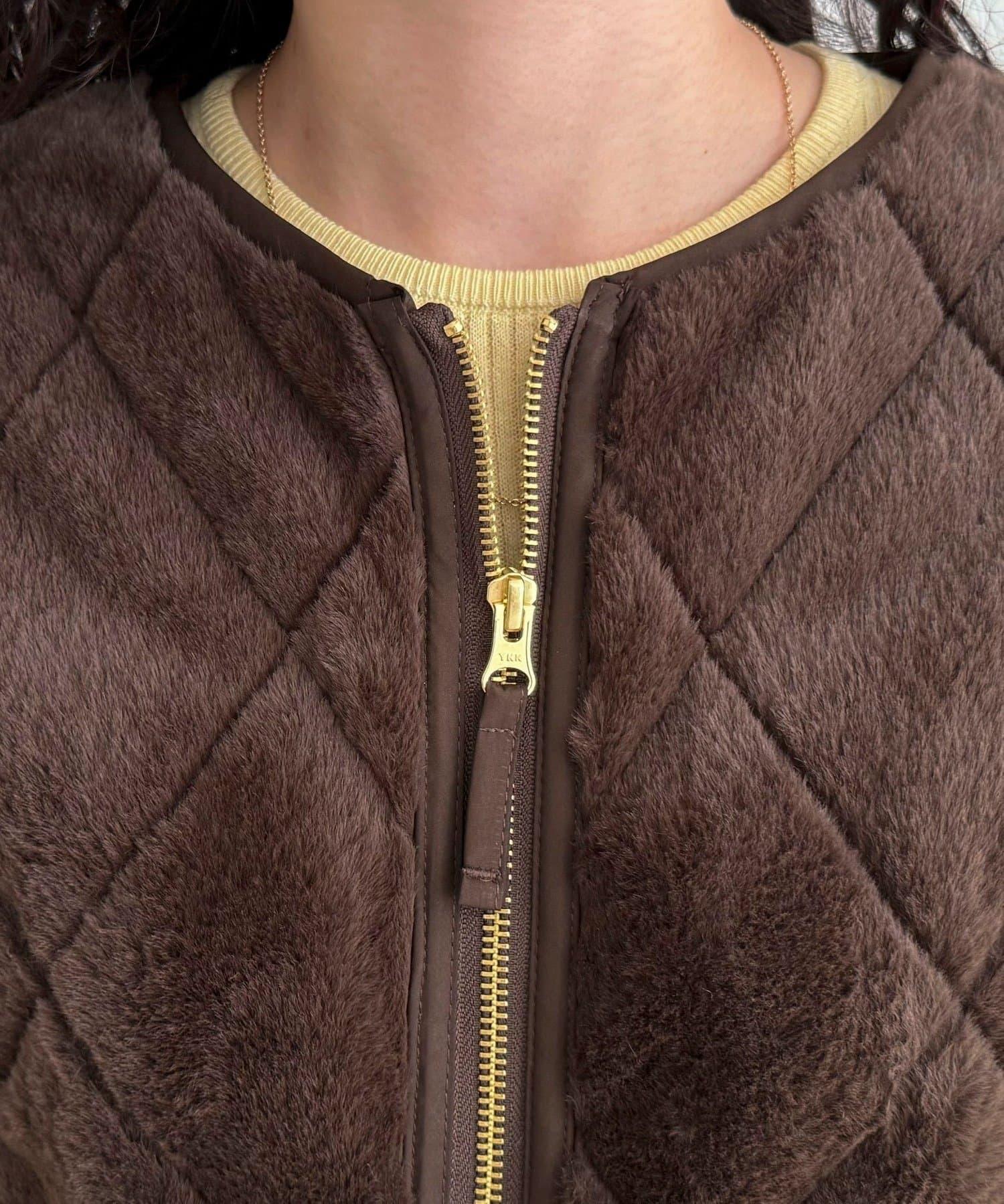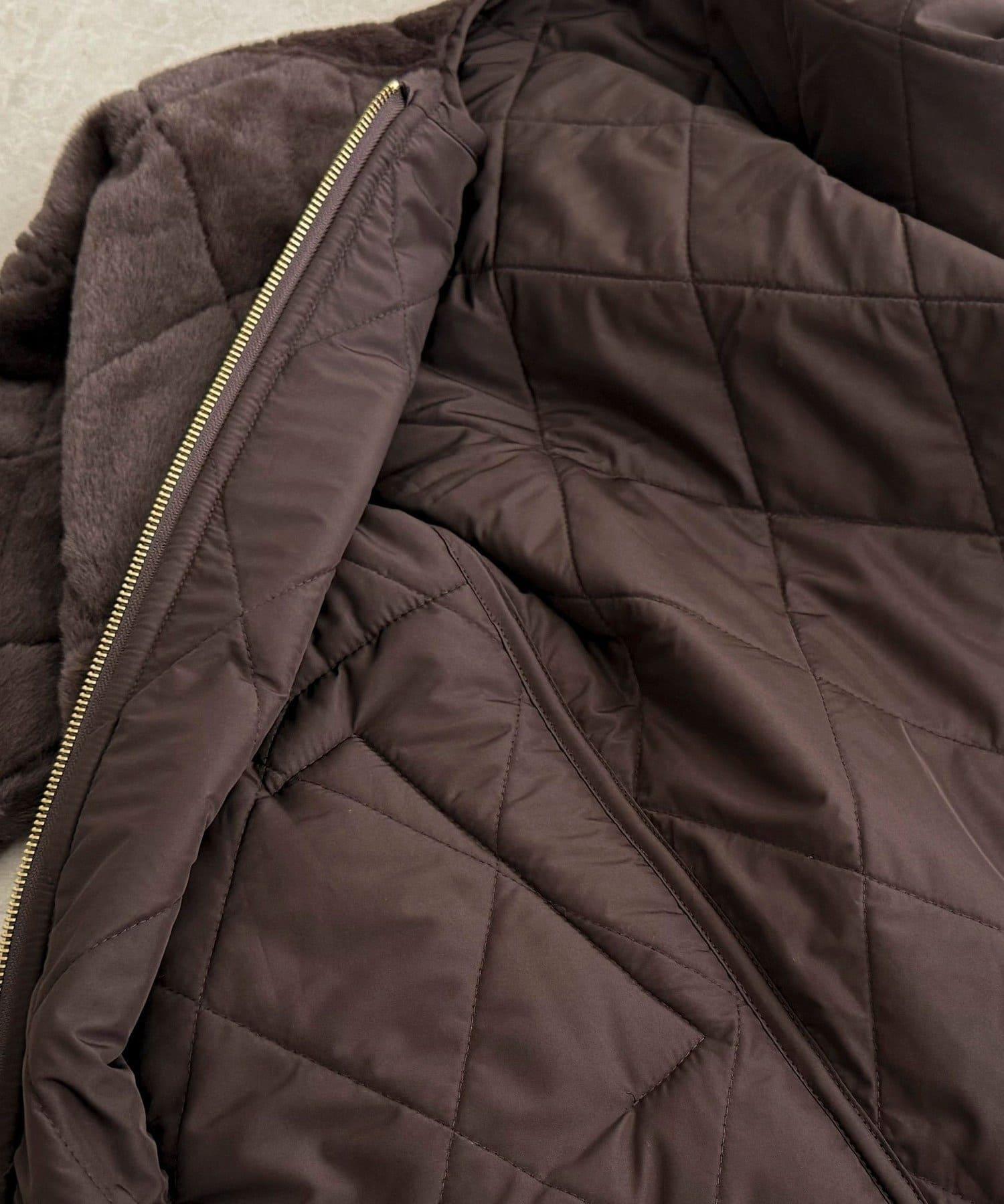 絎縫拉鍊大衣,配以奢華柔軟的蓬鬆皮草。