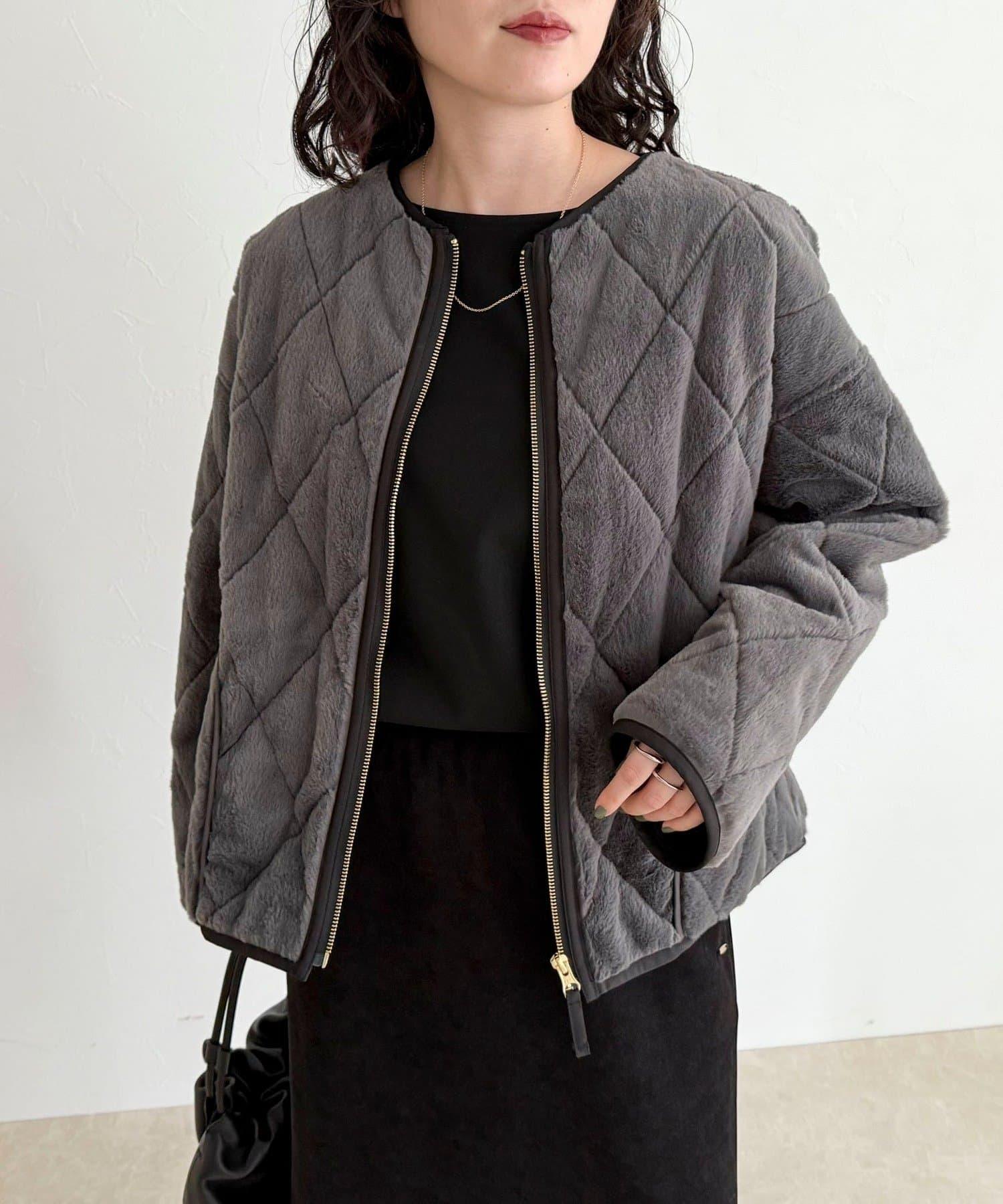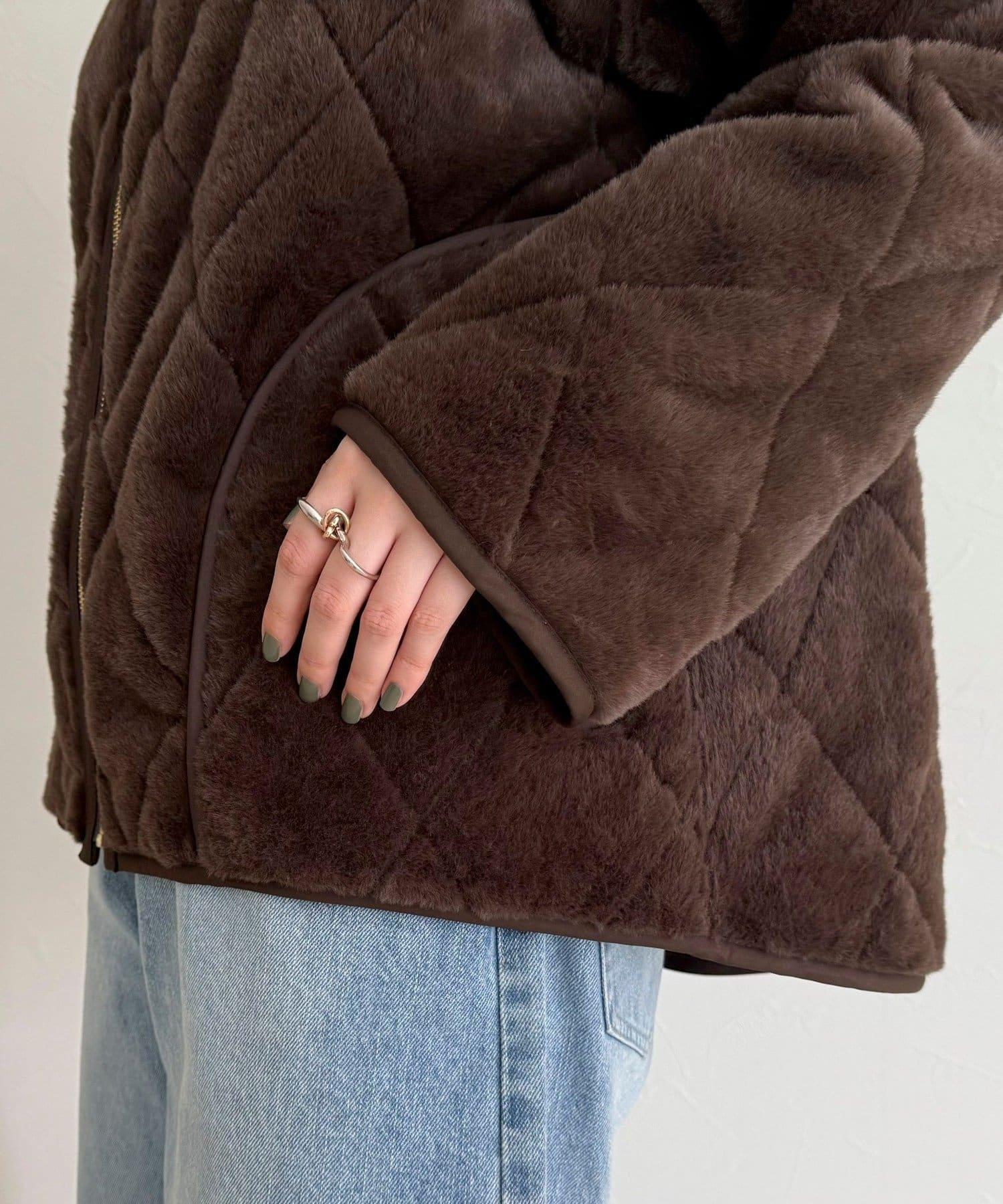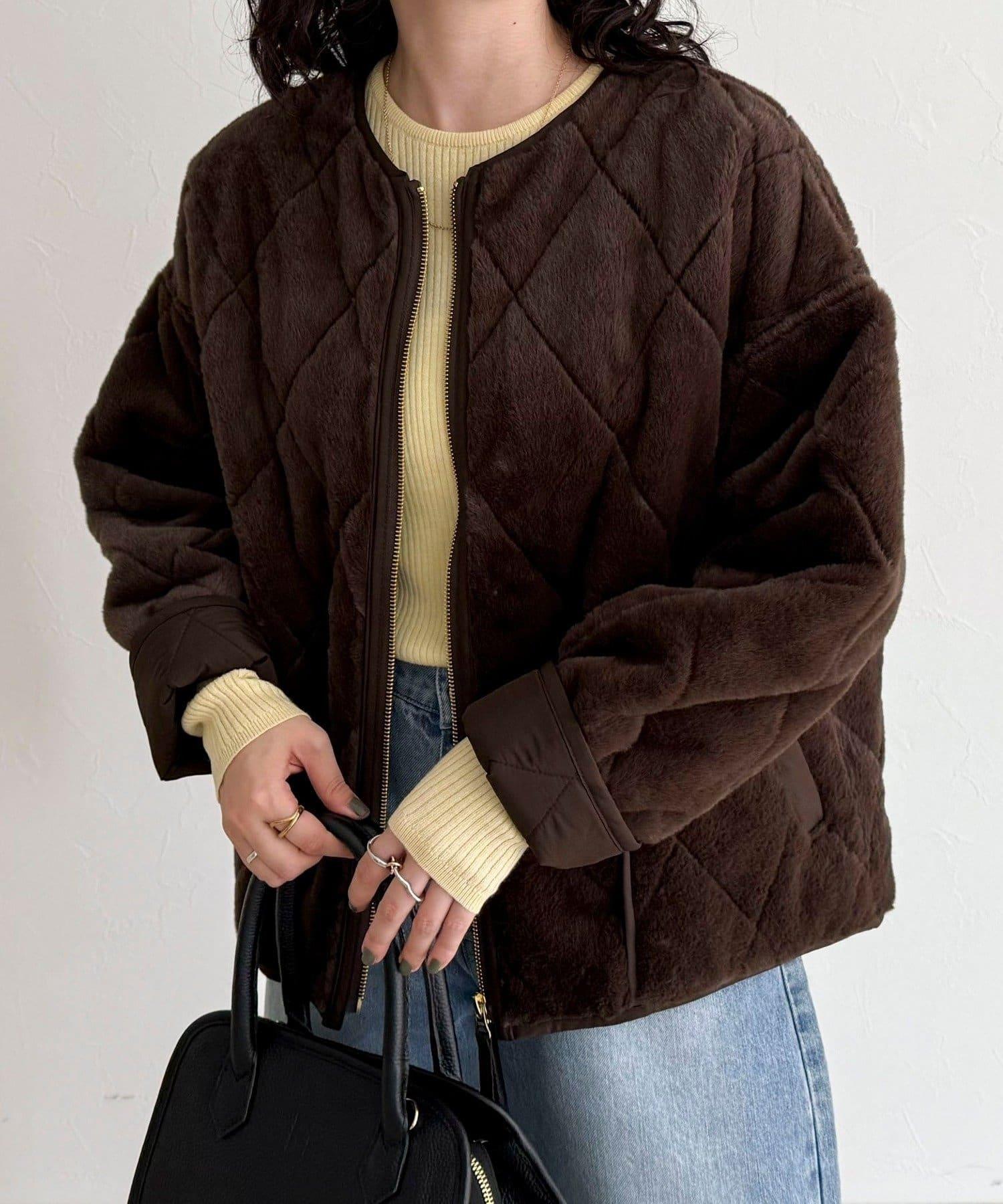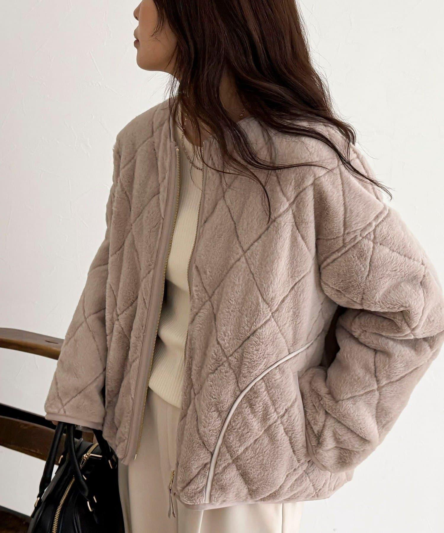 絎縫拉鍊大衣,配以奢華柔軟的蓬鬆皮草。