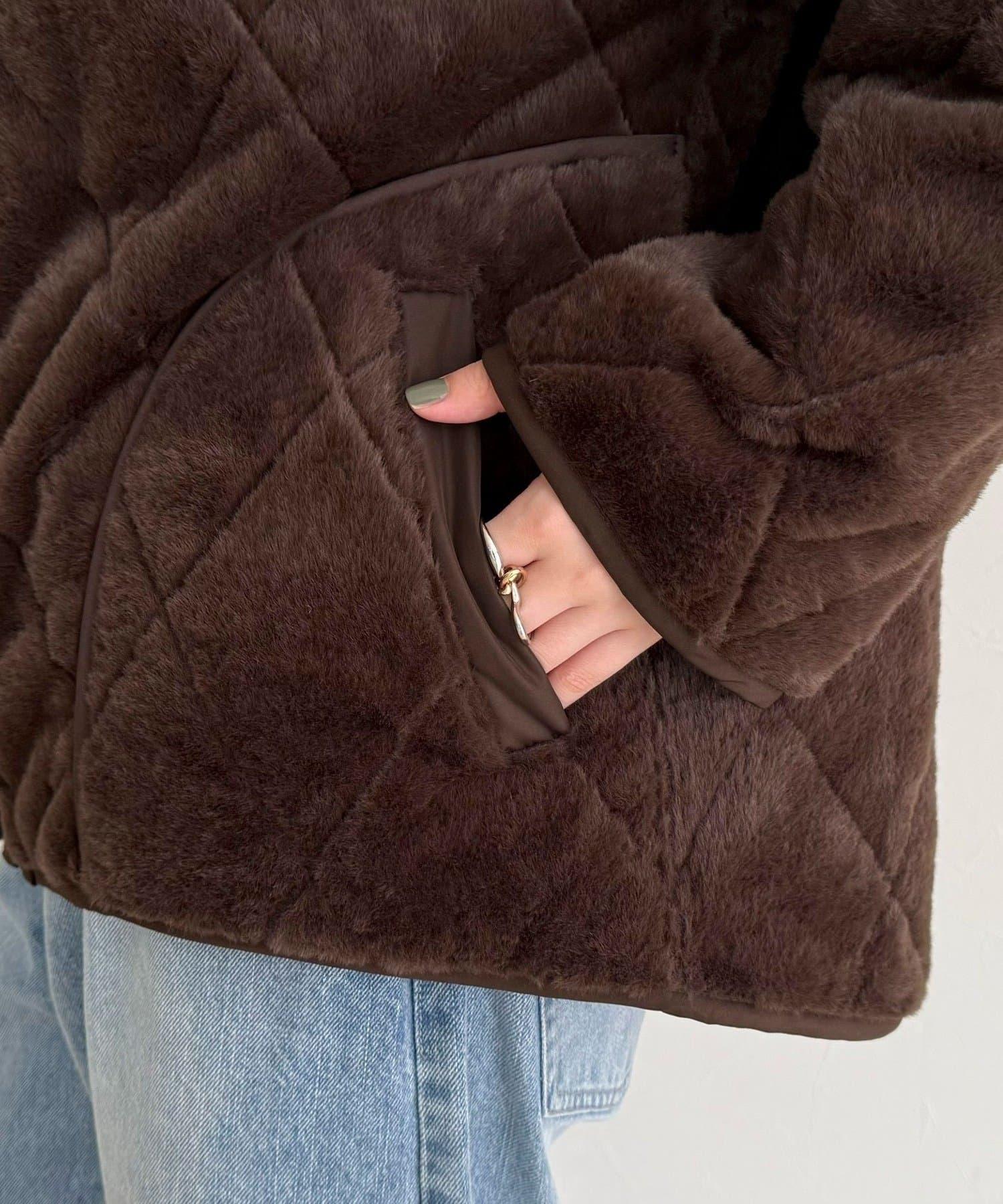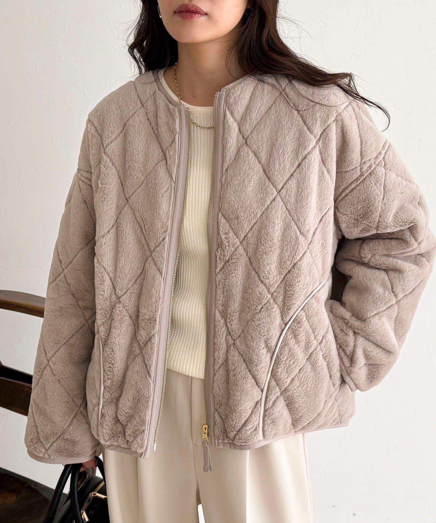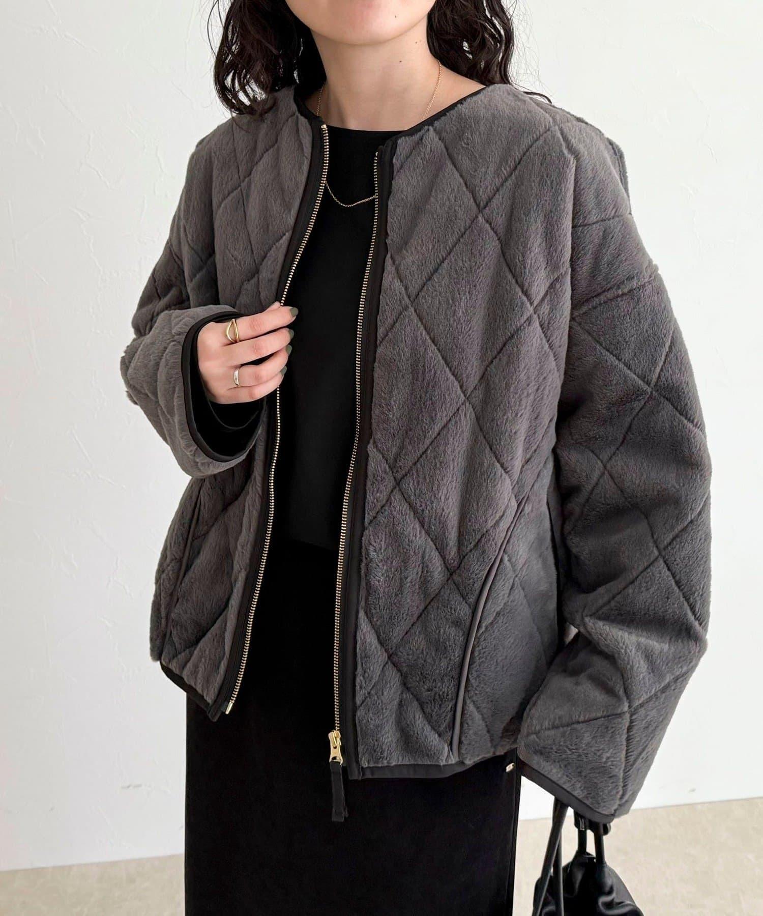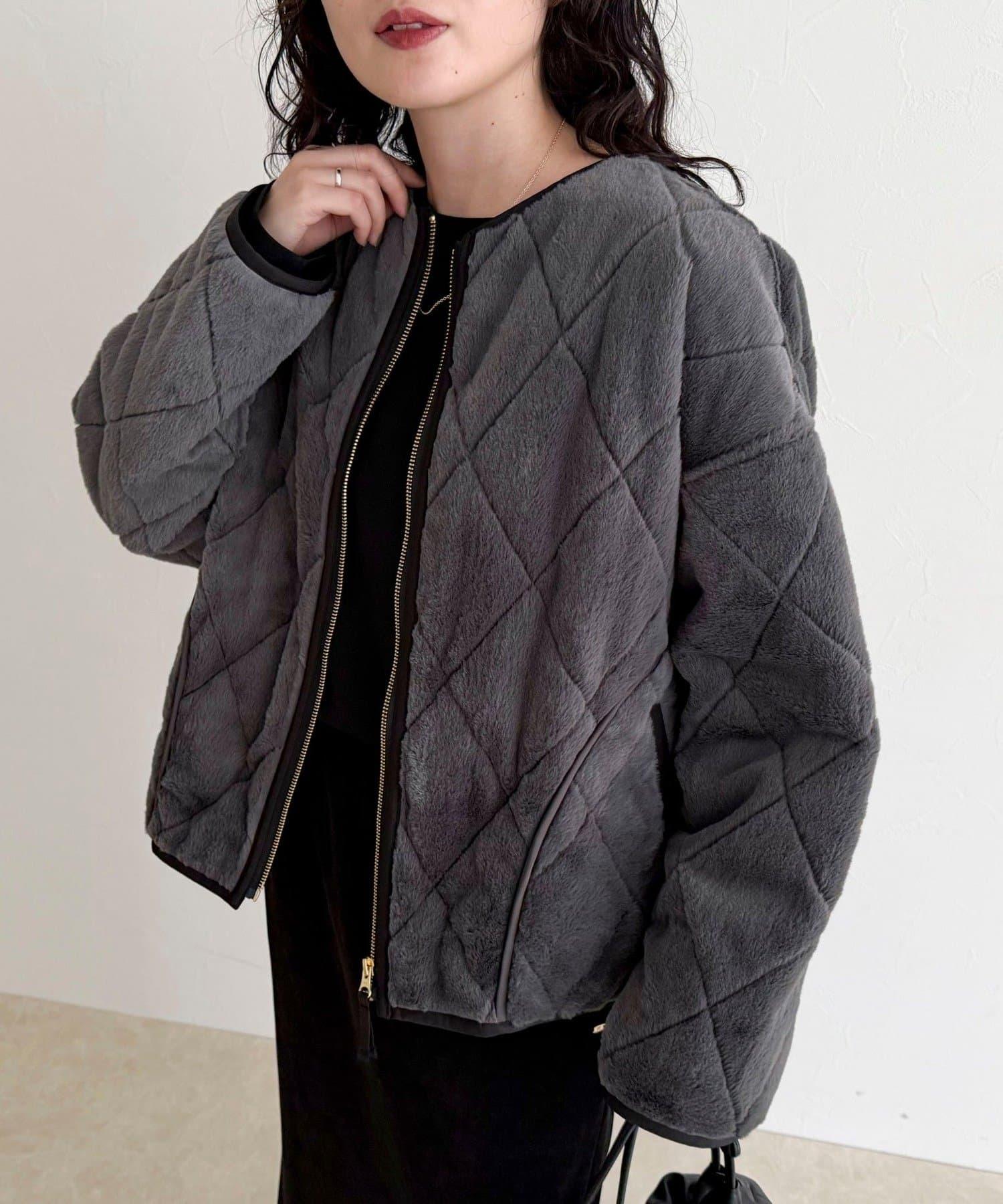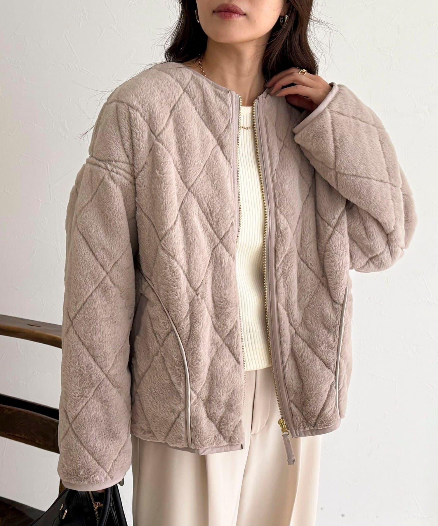 絎縫拉鍊大衣,配以奢華柔軟的蓬鬆皮草。