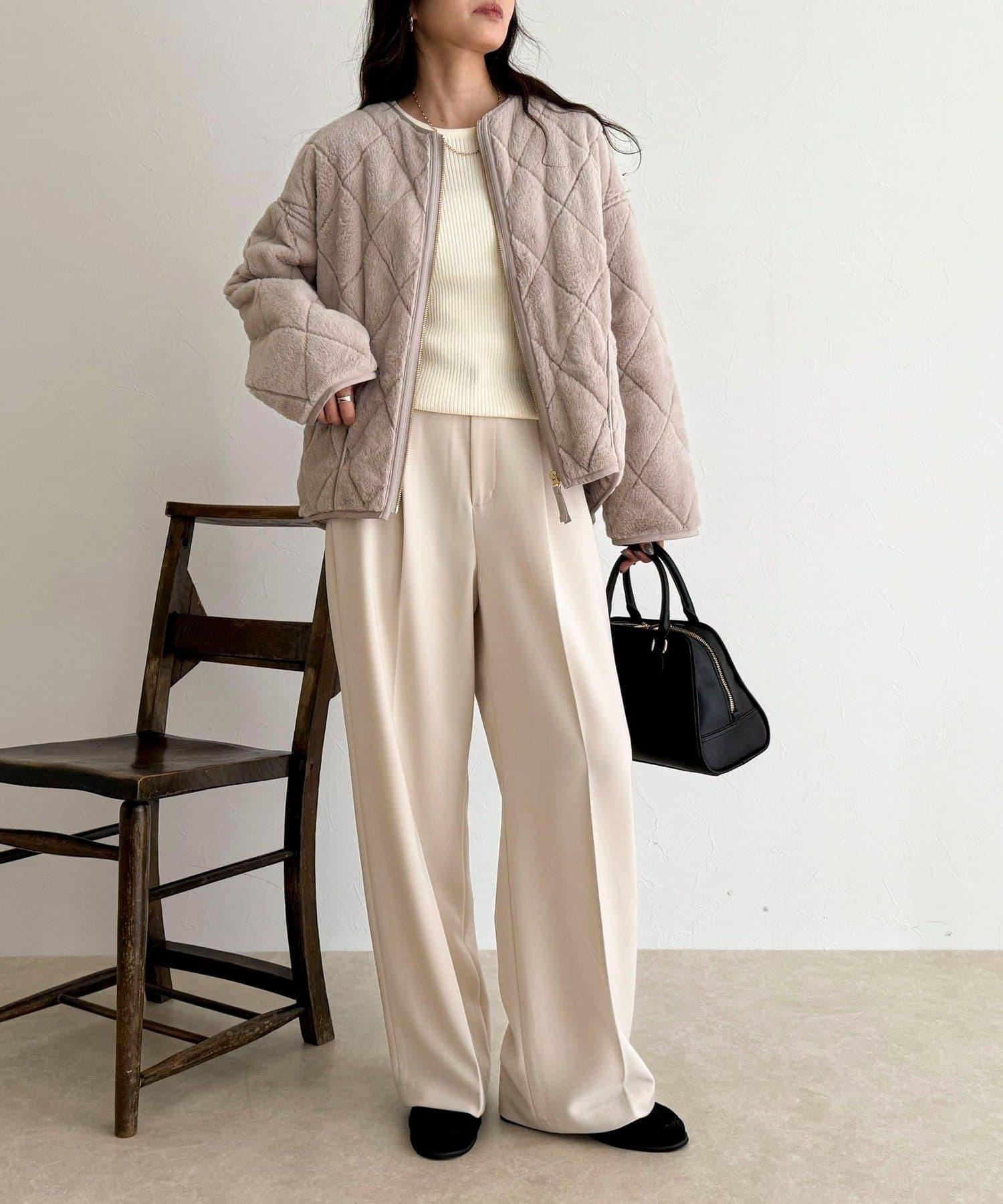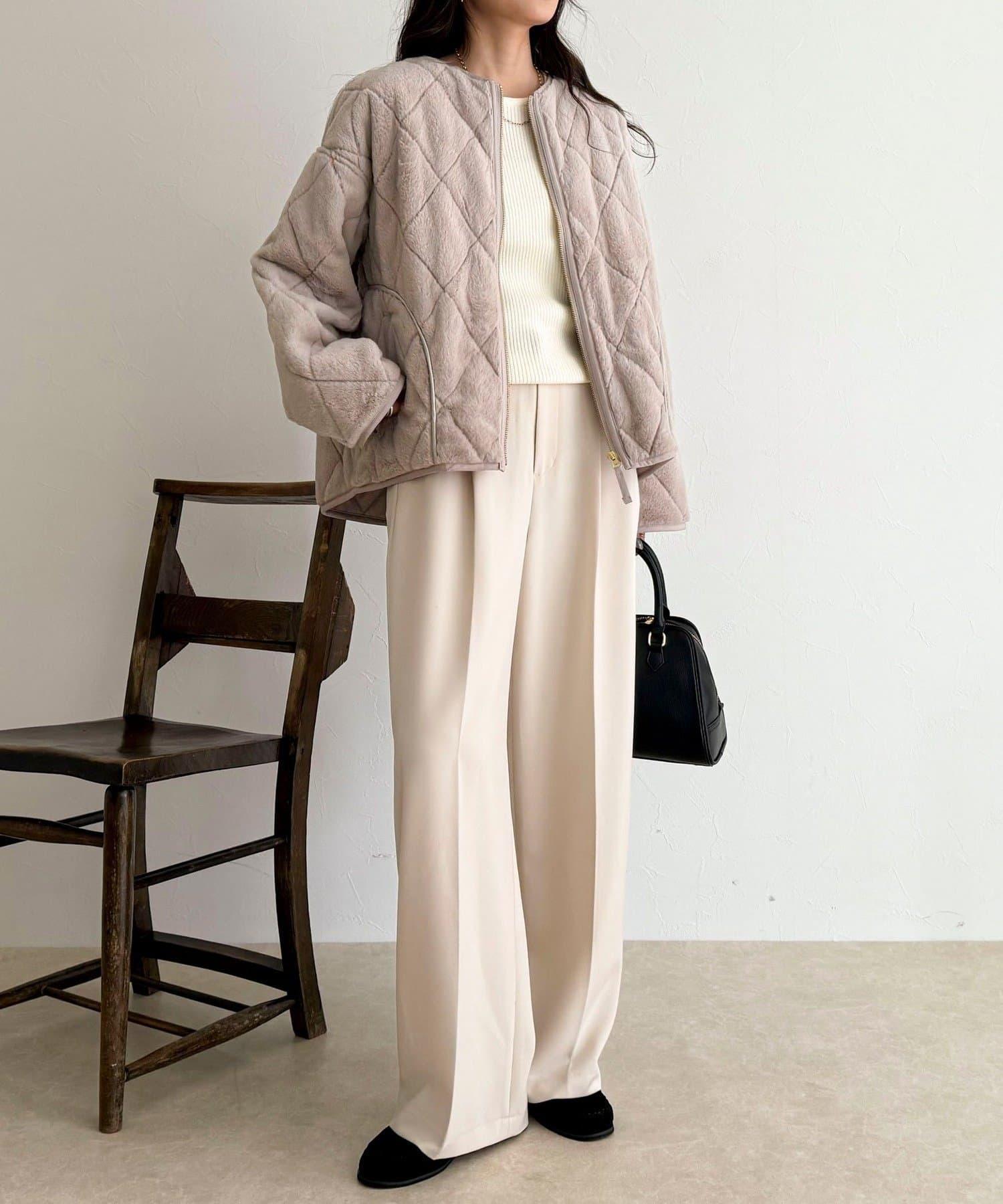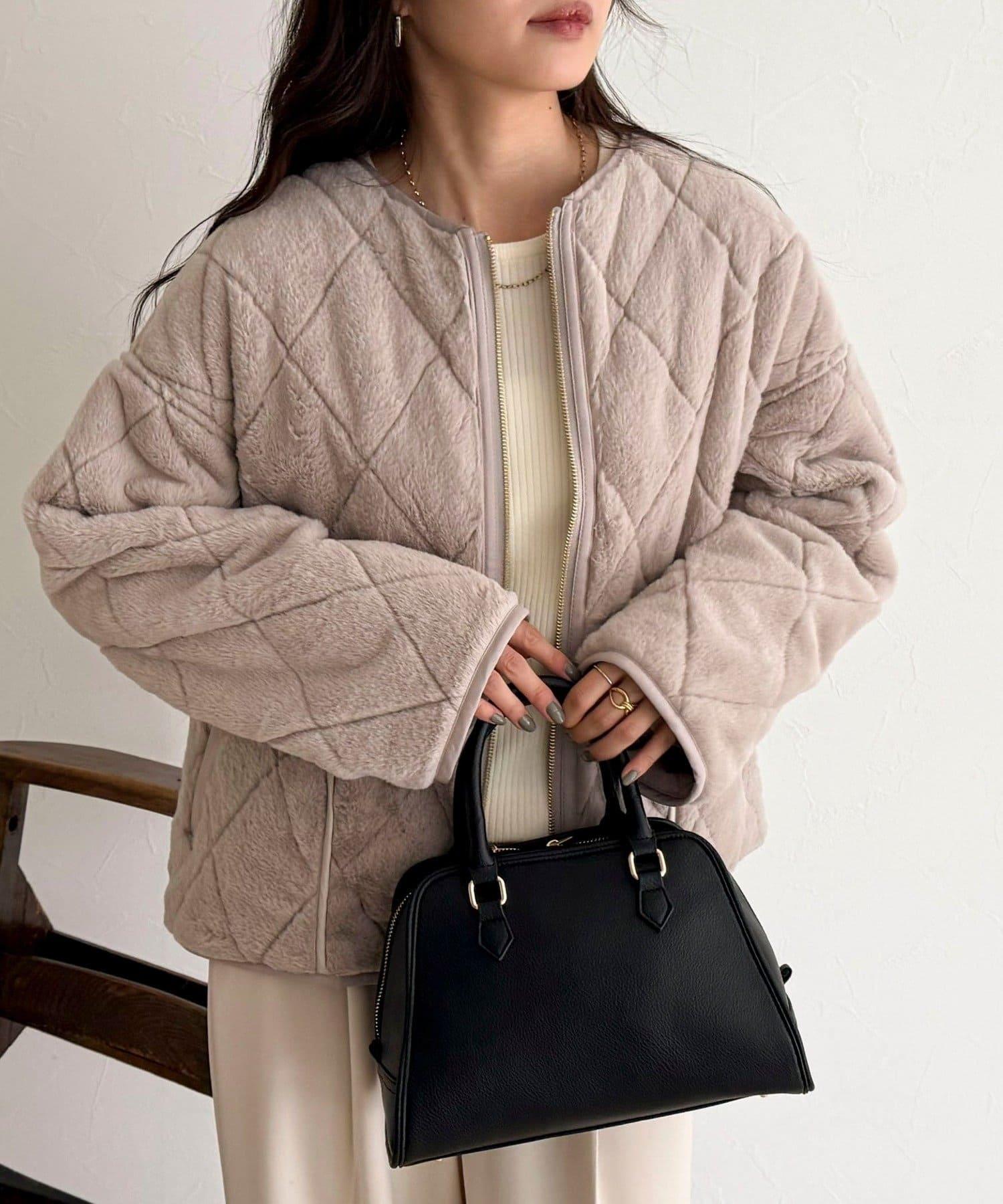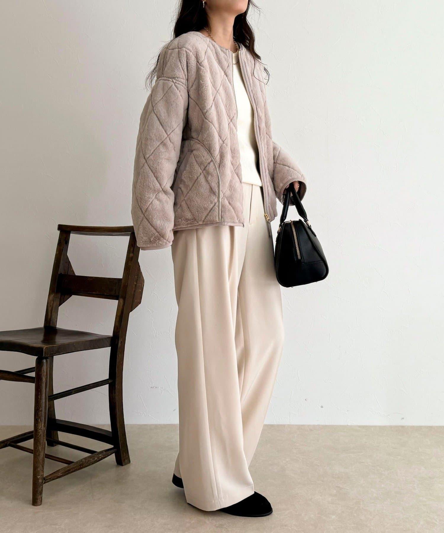 絎縫拉鍊大衣,配以奢華柔軟的蓬鬆皮草。