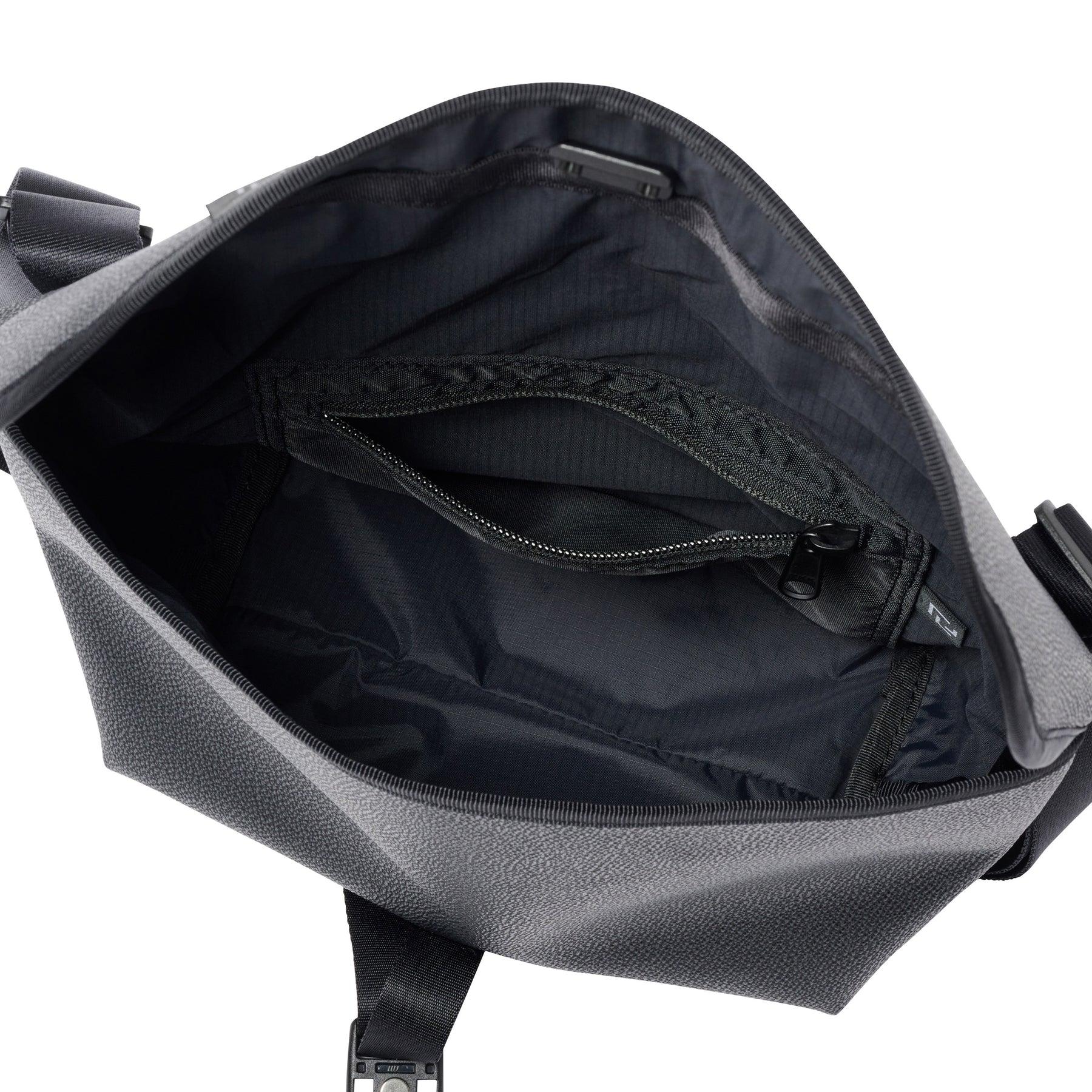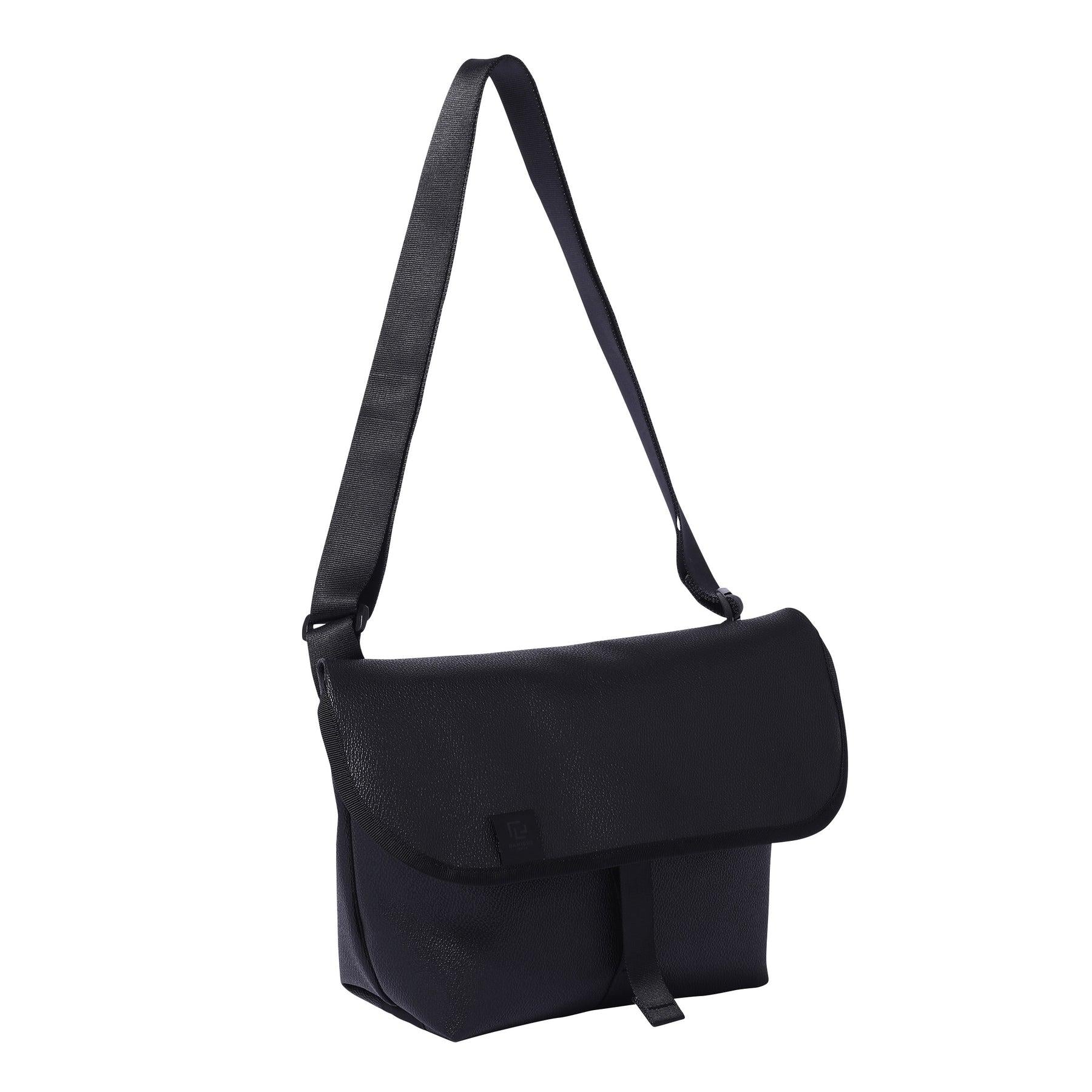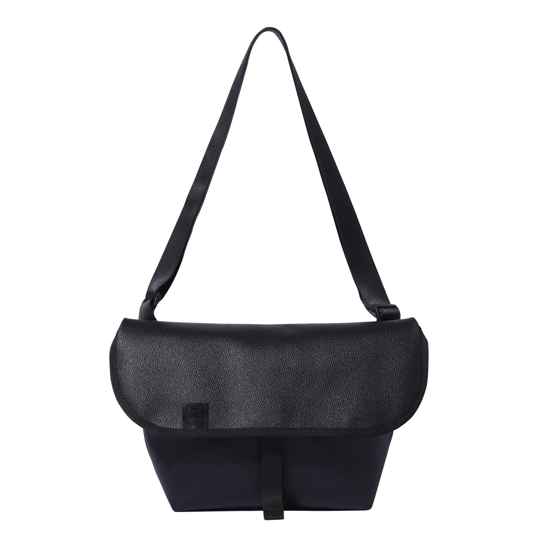 斜挎包肩部後側緊貼包身,設有手機和平裝書大小的口袋,除主隔層外還提供了儲物空間。前部的揹帶調節部件隱藏在包蓋下,不顯眼,追求簡潔的設計。主體由 PVC 織物製成,表面有粒麵皮革風格的壓紋。該系列雖然外觀奢華,但重量輕,易於攜帶。