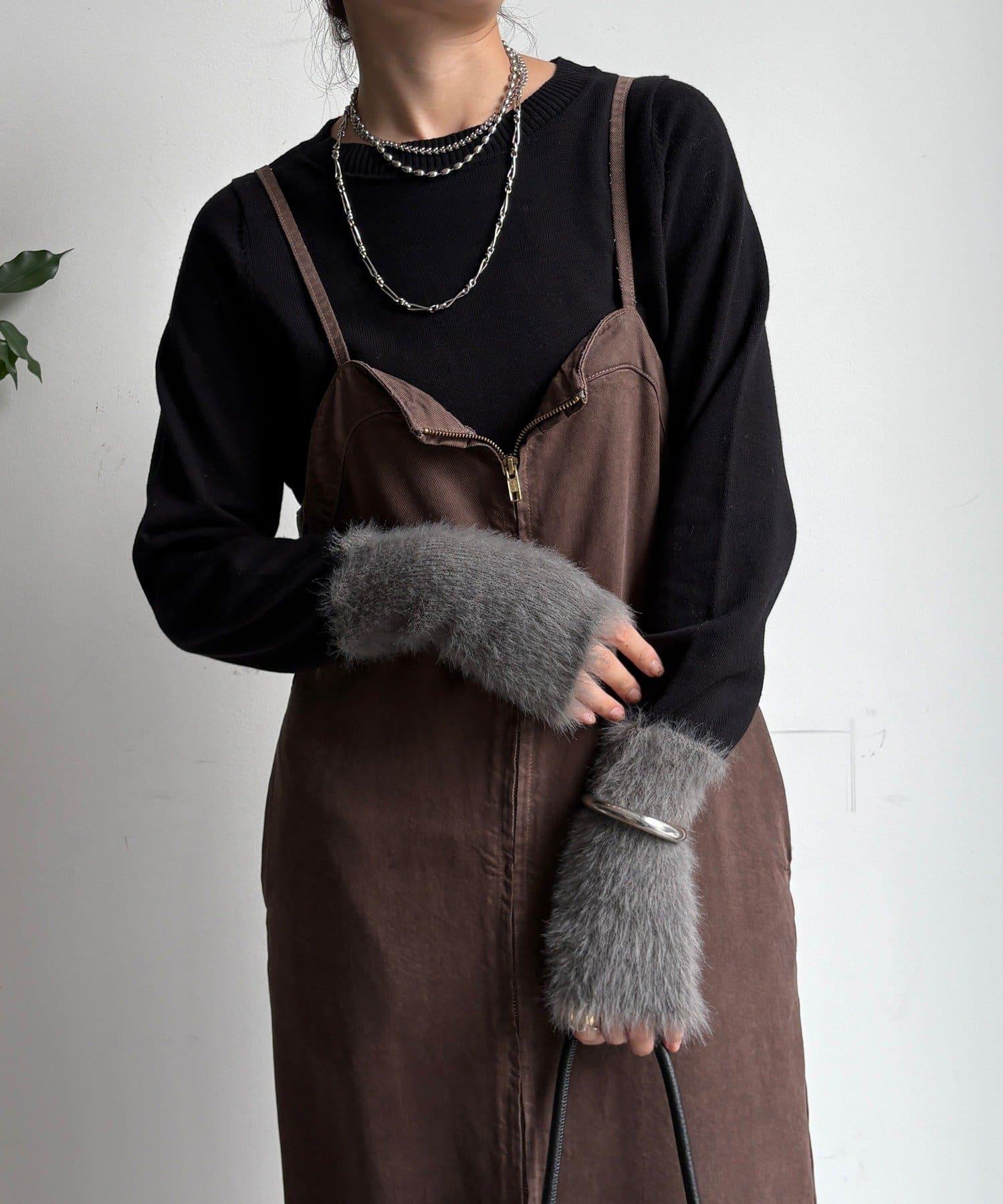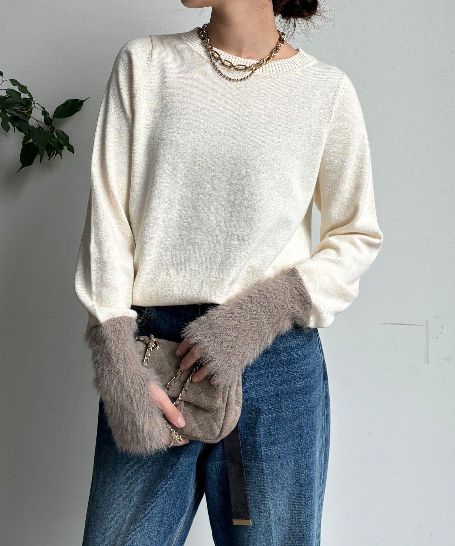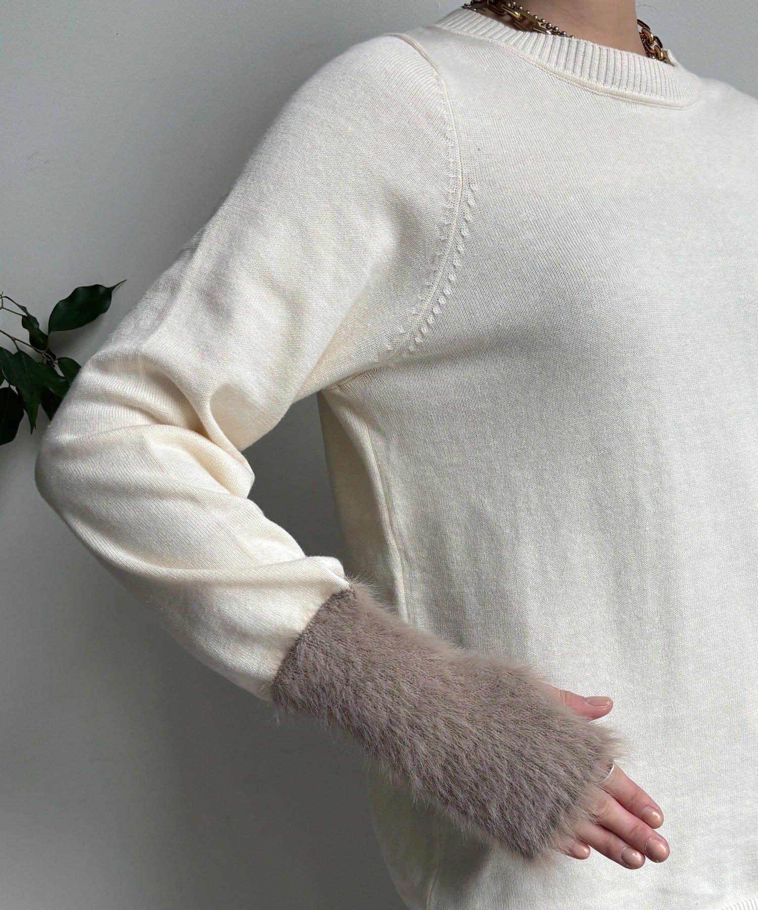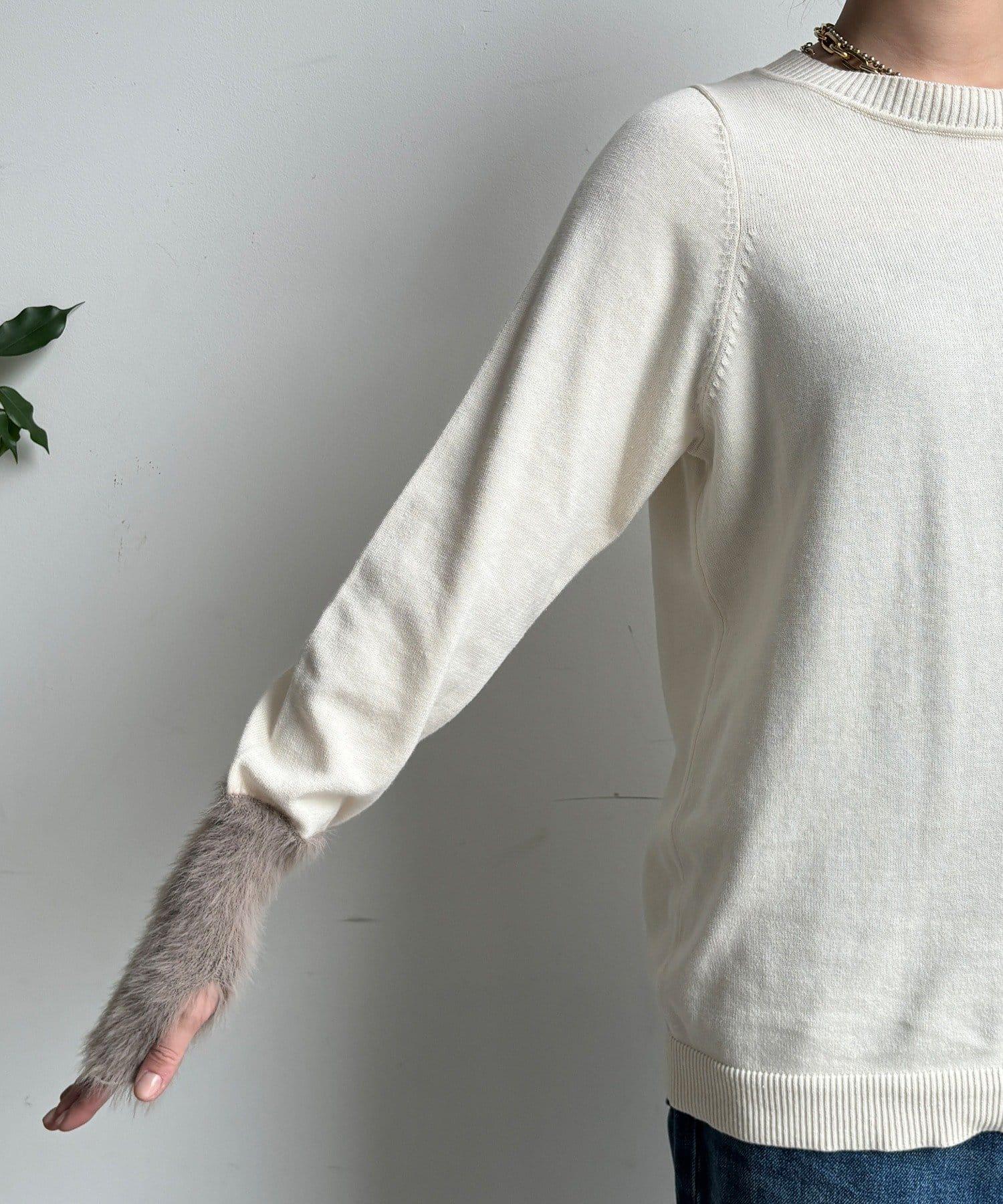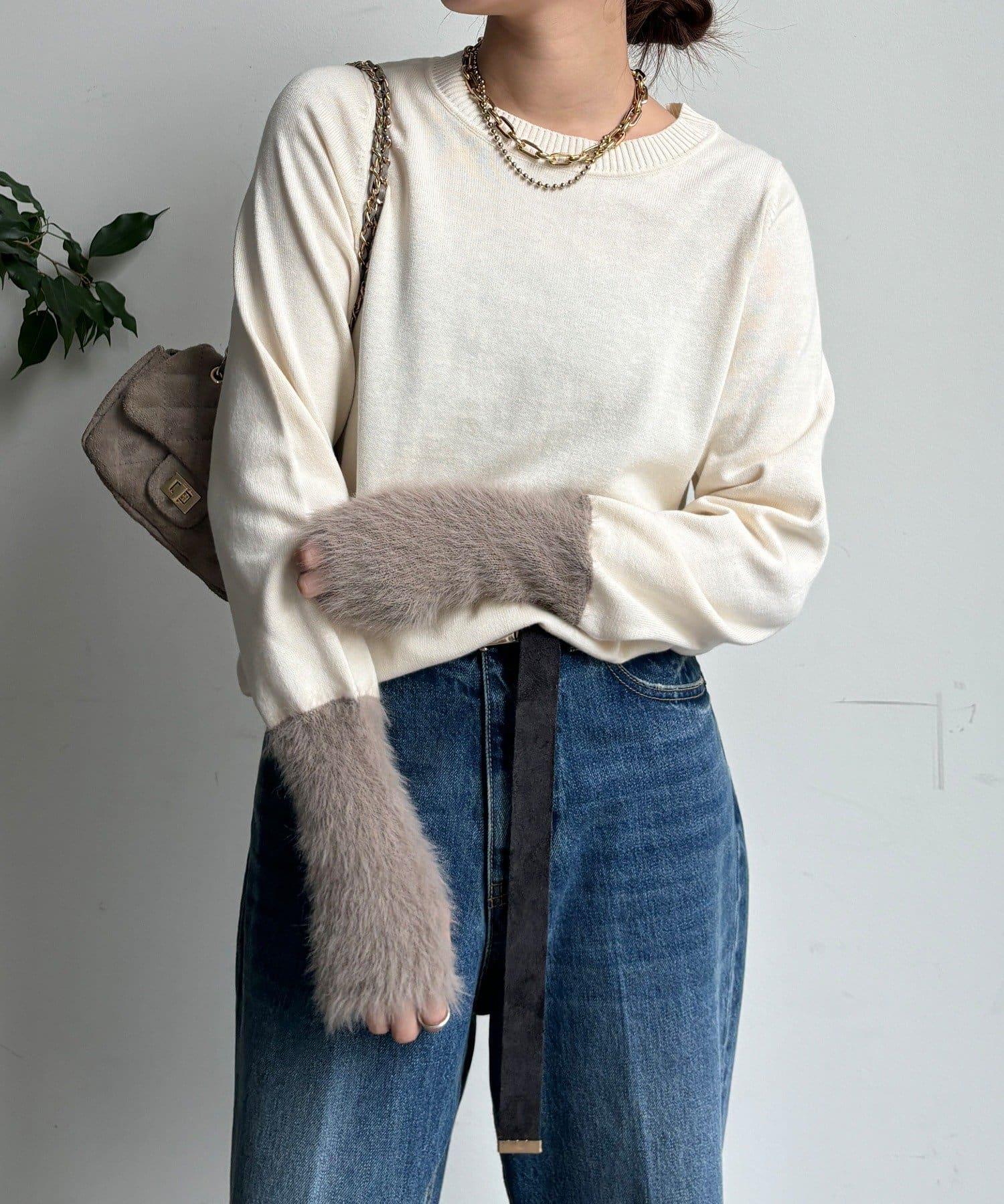 蓬鬆的絨毛材質袖子為簡約而不古怪的設計錦上添花,給人以優雅的印象。袖口有一個洞的設計,可以把大拇指穿過去,這樣就可以一直溫暖到手,看起來也很可愛◎。