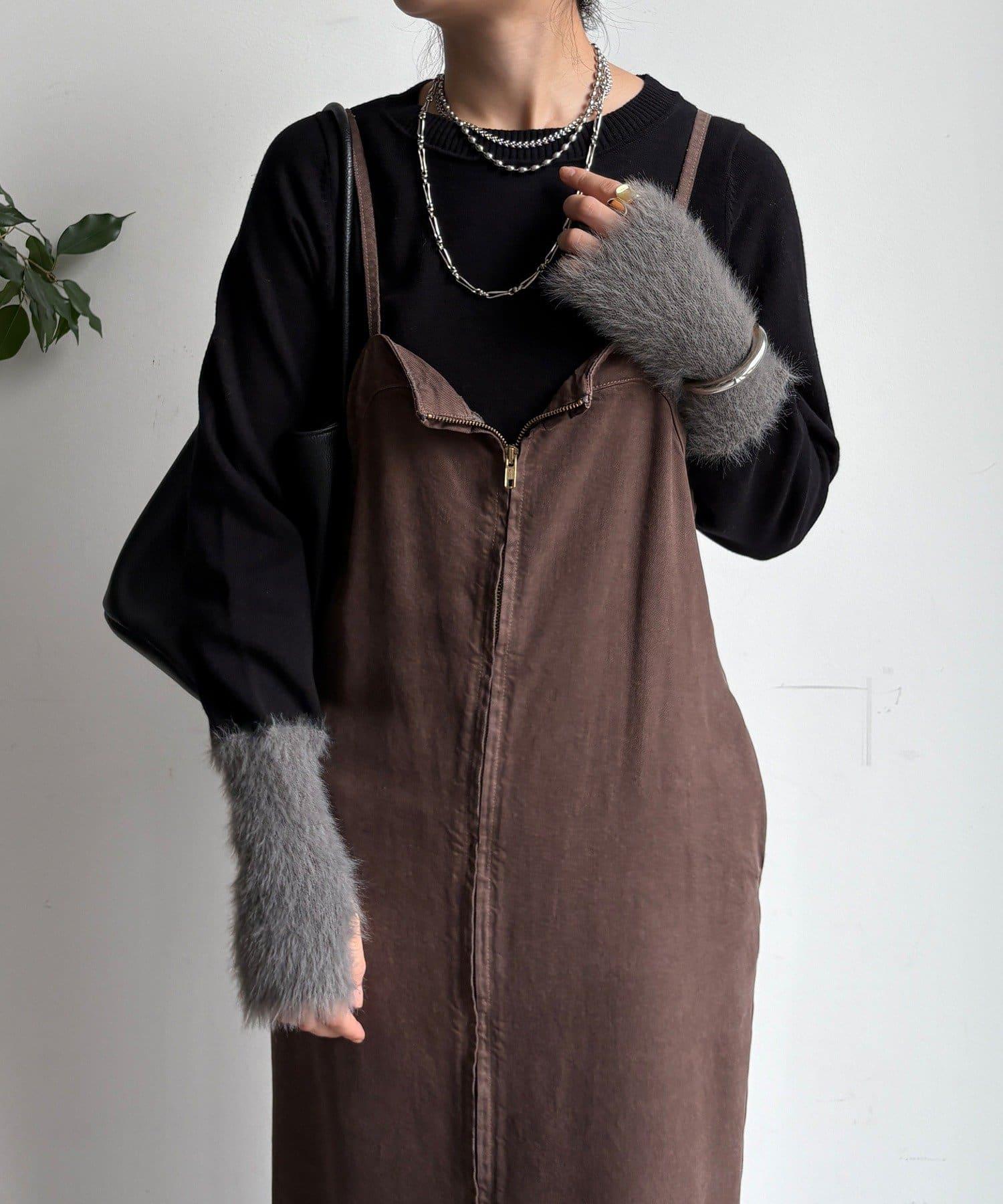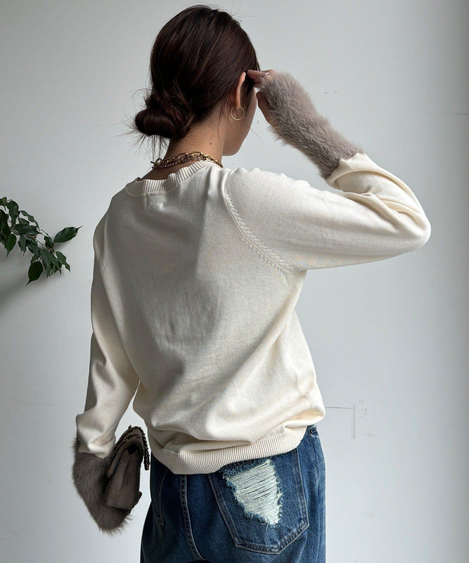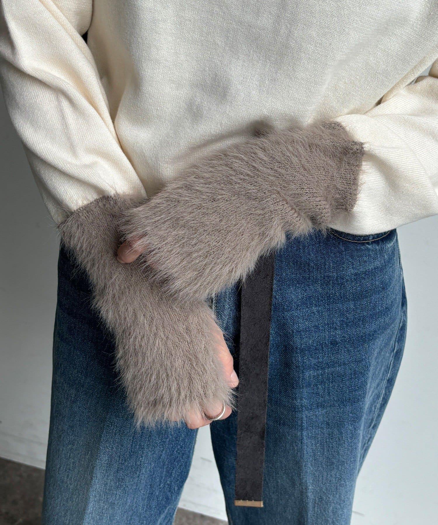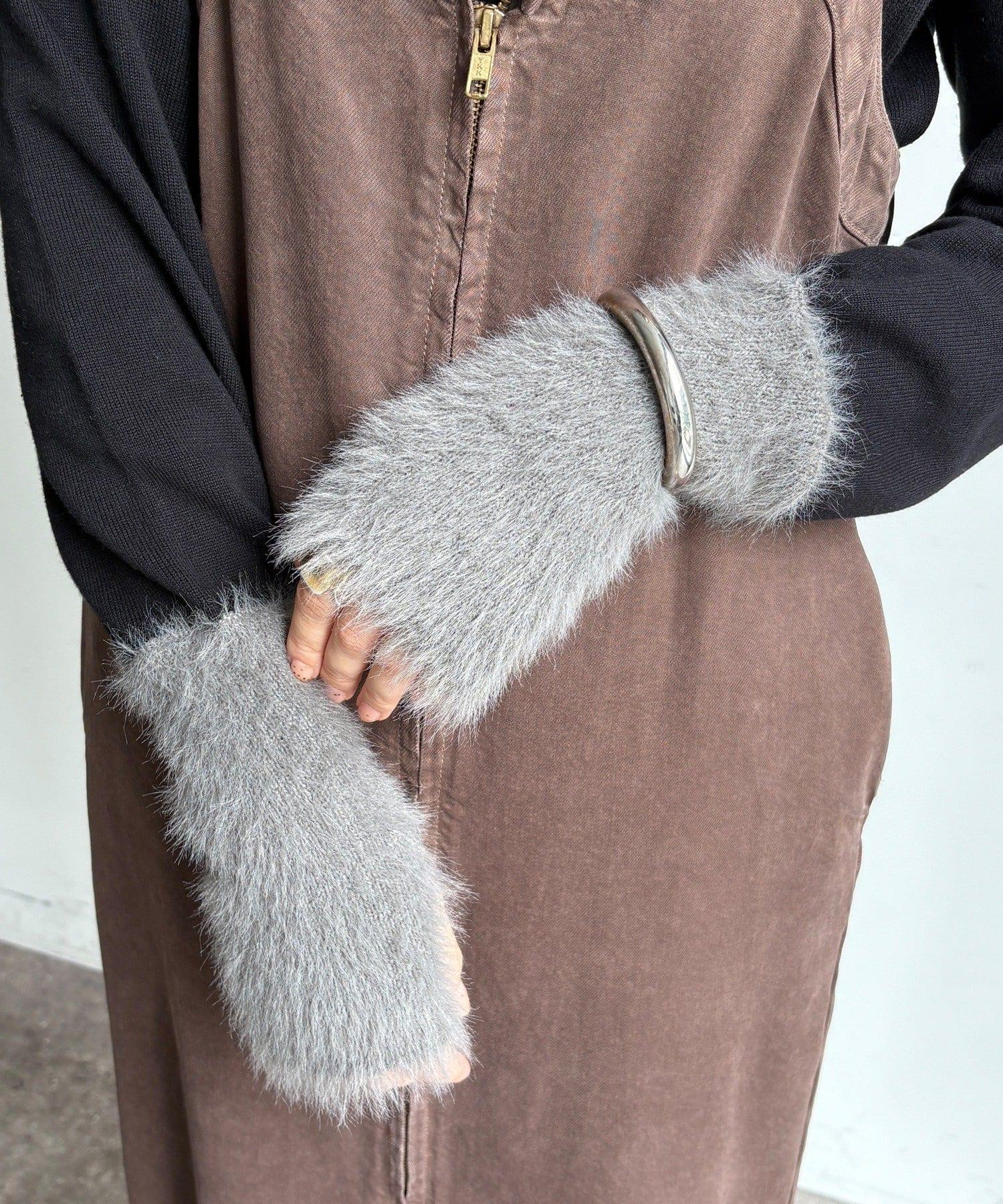 蓬鬆的絨毛材質袖子為簡約而不古怪的設計錦上添花,給人以優雅的印象。袖口有一個洞的設計,可以把大拇指穿過去,這樣就可以一直溫暖到手,看起來也很可愛◎。